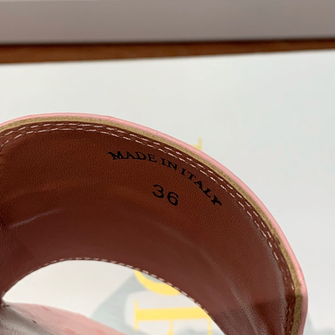 Summer Charms Sandals Mule Pink Ostrich Brown Lambskin