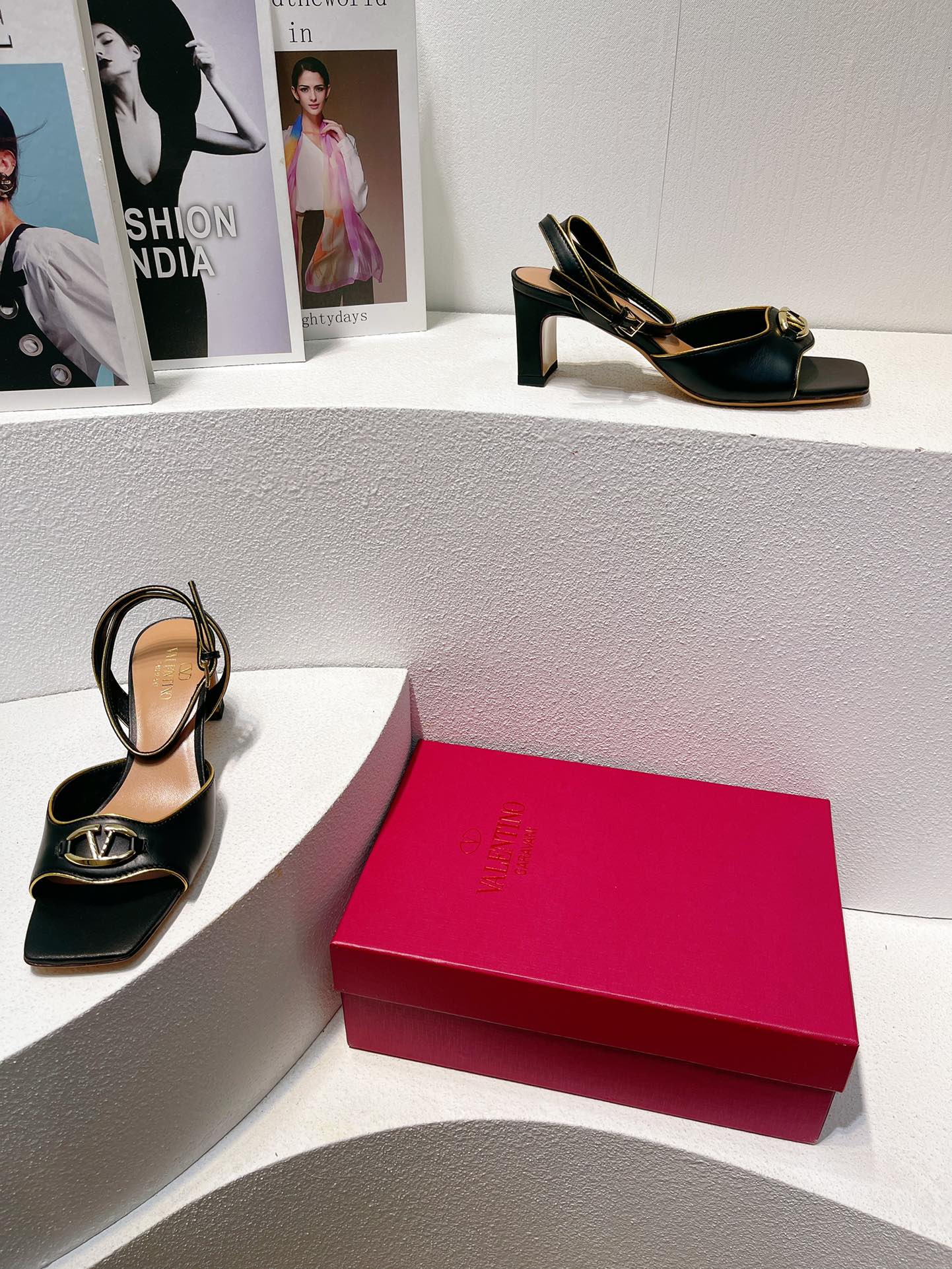 VT Sandals Heels 50mm Black Cowhide 292767