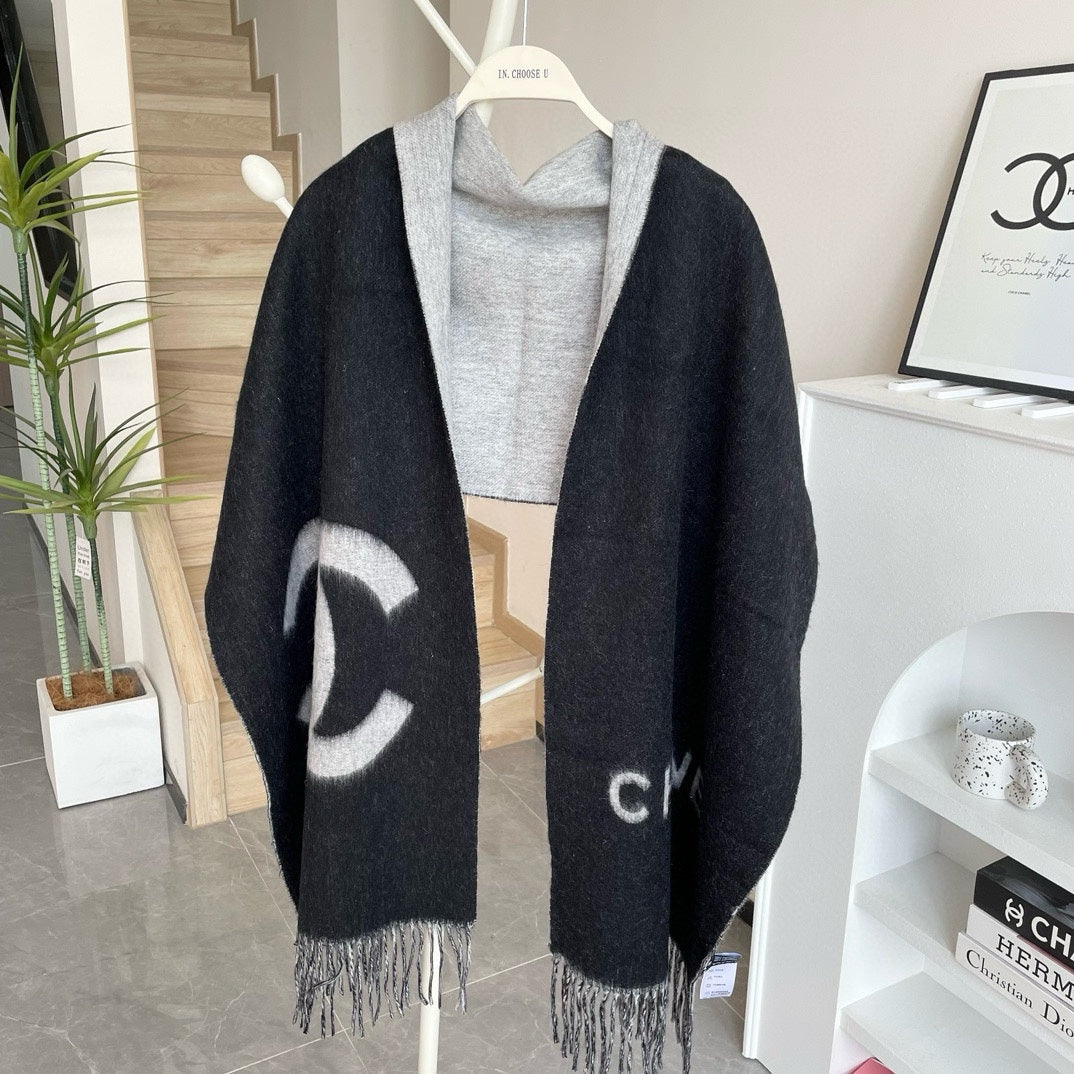 CC Long Scarf 200 CM In BLack Mix White Cashmere 425111