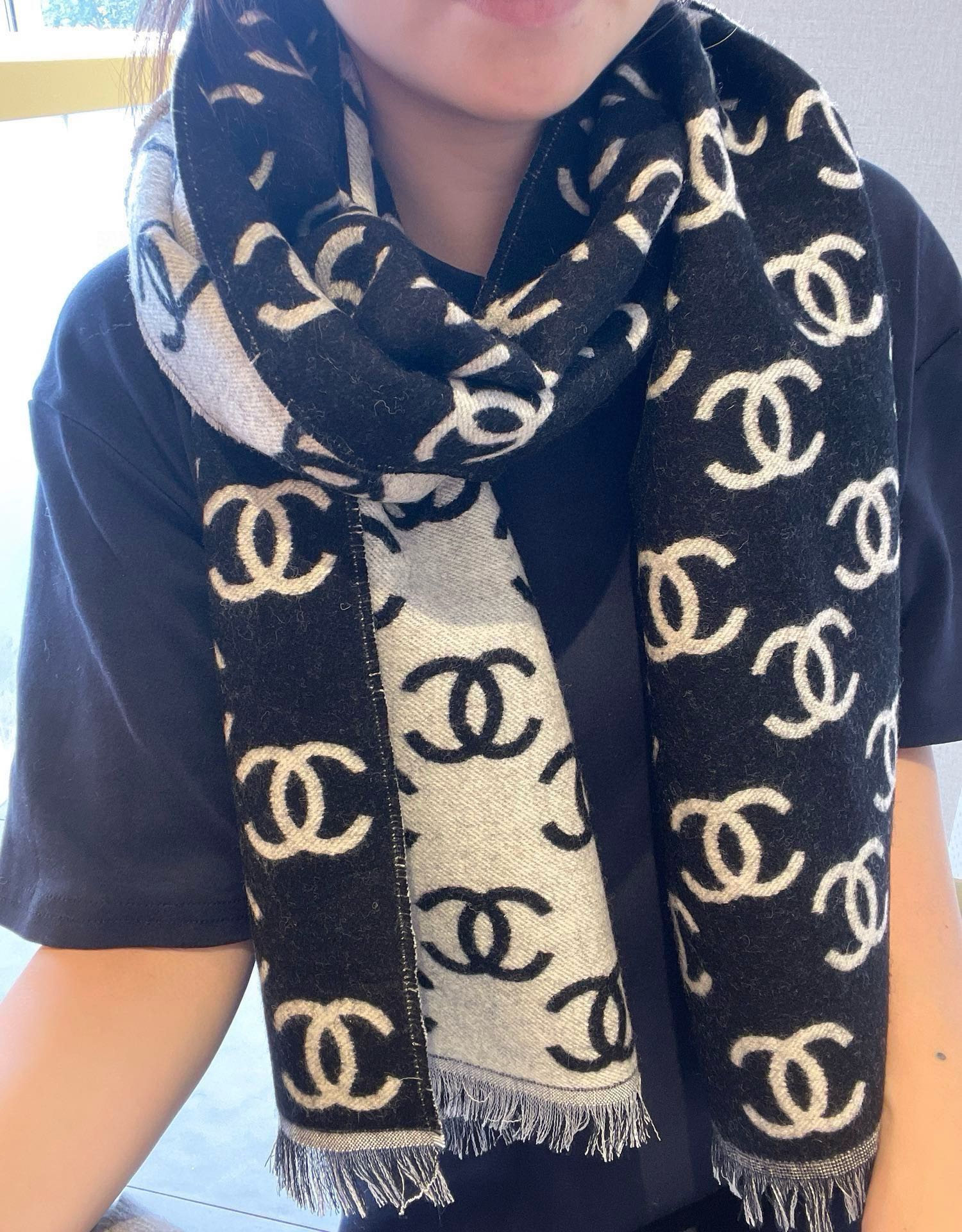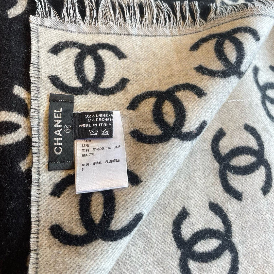 CC Scarf 180 CM In Black Mix Light Grey Print Logo Cashmere And Wool 413631