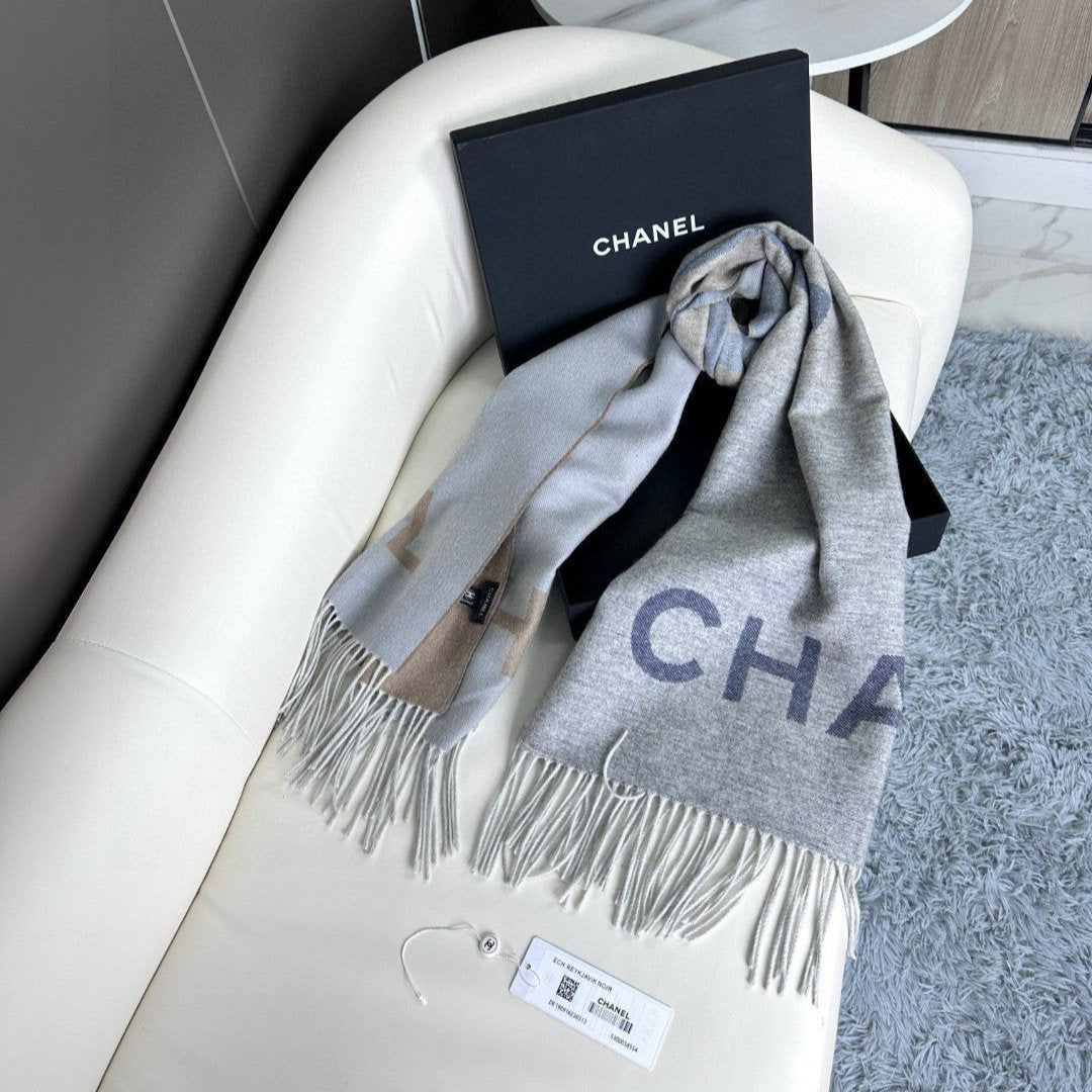 CC Scarf 180 CM In Grey Blue Mix Brown Cashmere Wool 368879