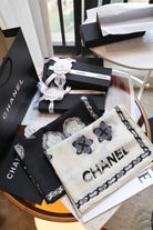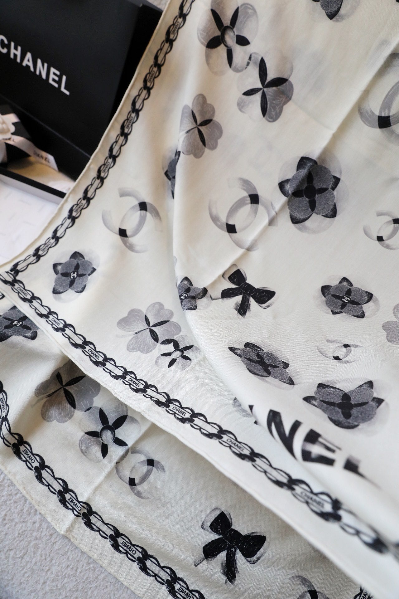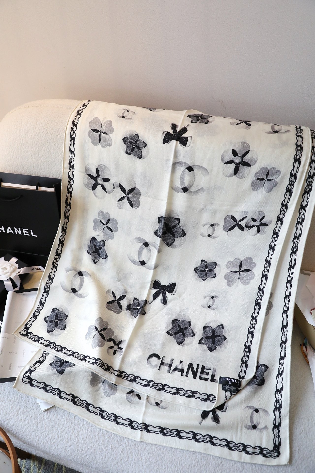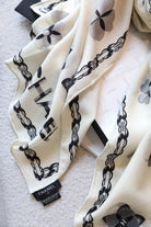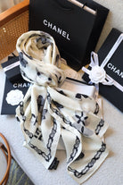 CC Scarf 180 CM In White Black Cashmere Silk 401133