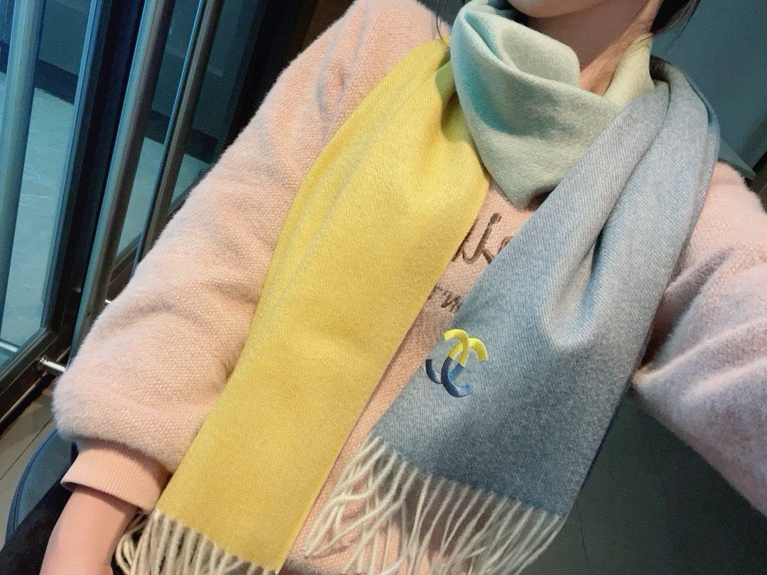 CC Scarf 180 CM In Yellow Mix Grey Light Turquoise Cashmere 387914