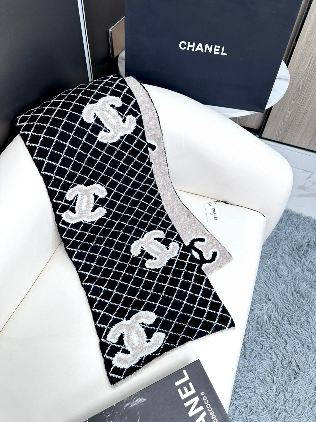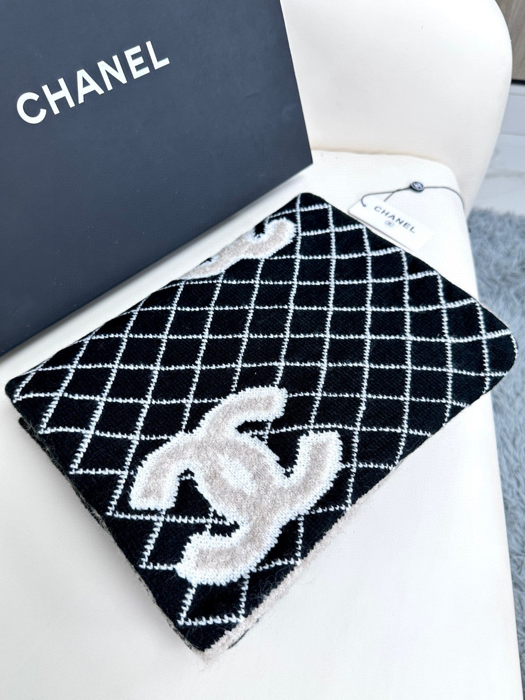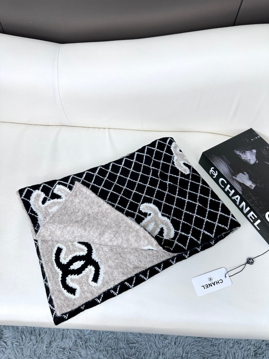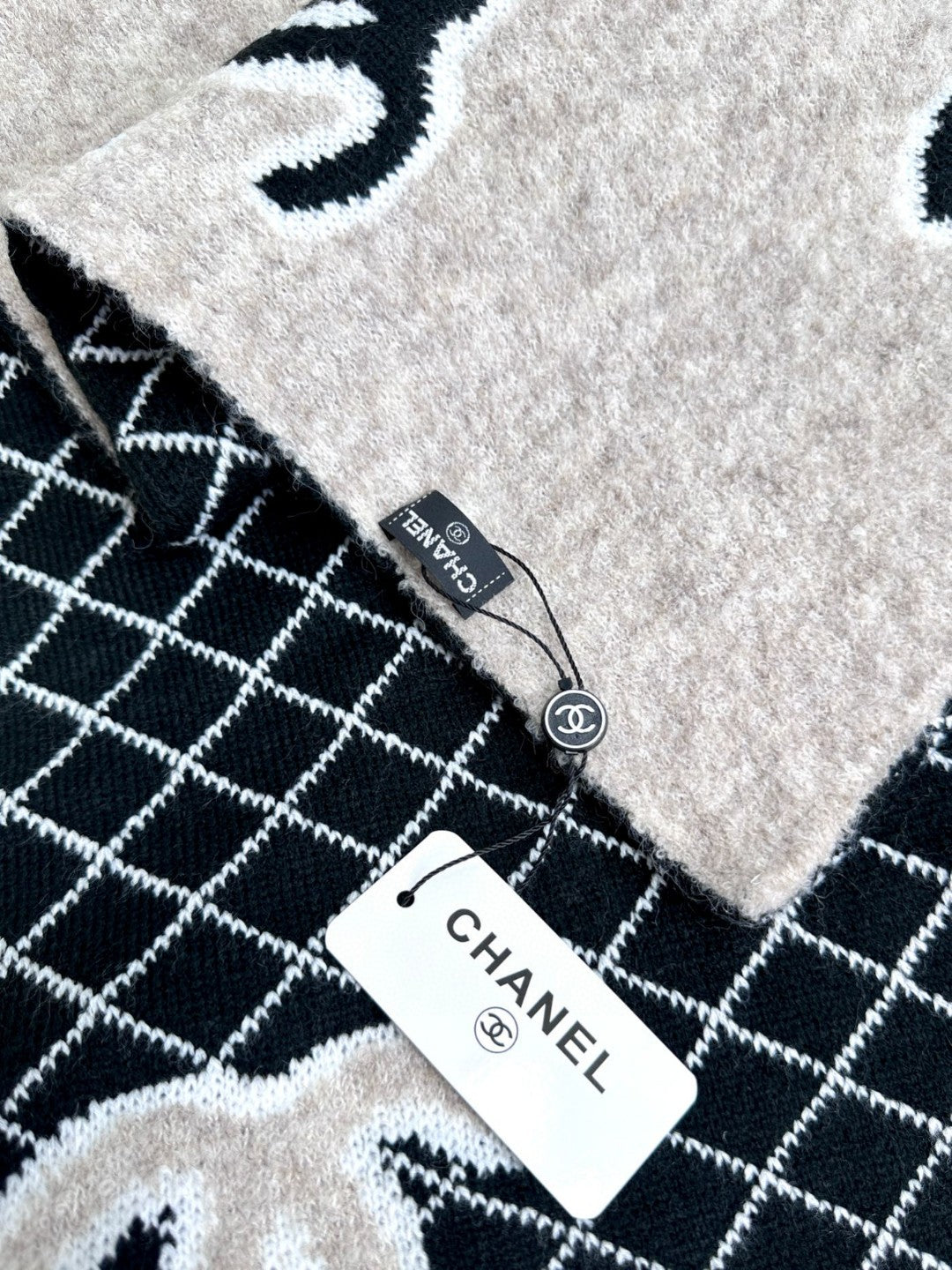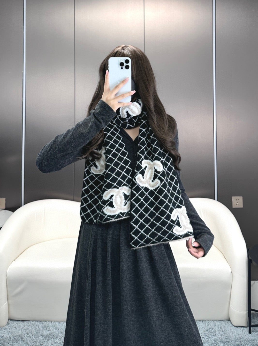 CC Scarf 185 CM In Black Mix Grey Cashmere Wool 370376