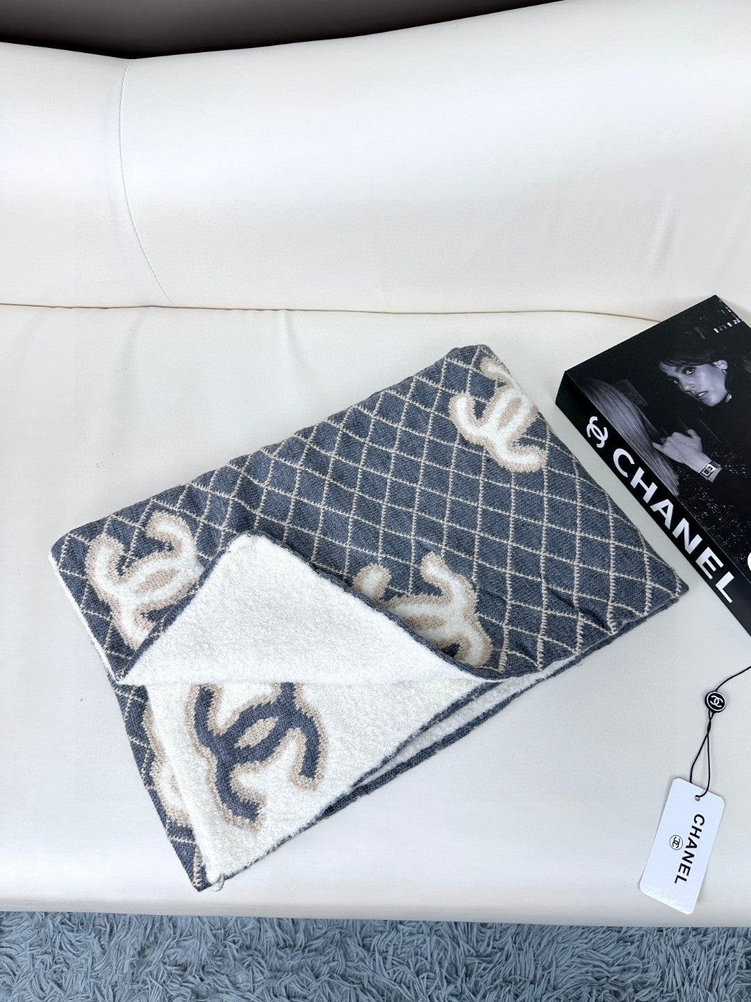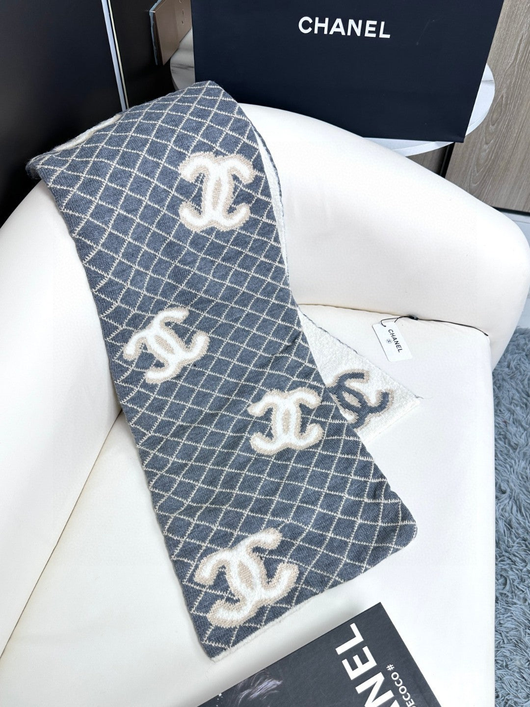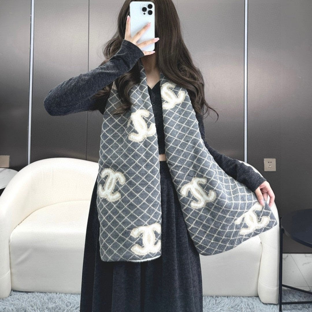 CC Scarf 185 CM In Grey Brown Mix White Cashmere Wool 410148