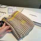 CC Scarf 190 CM In Brown White Mix Yellow Serrated Shape Cashmere 387911