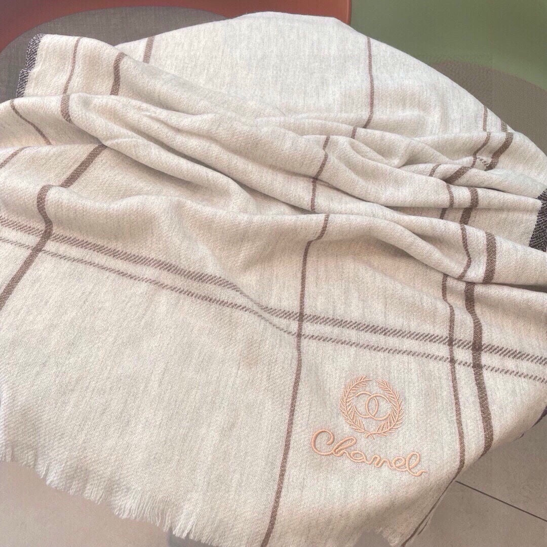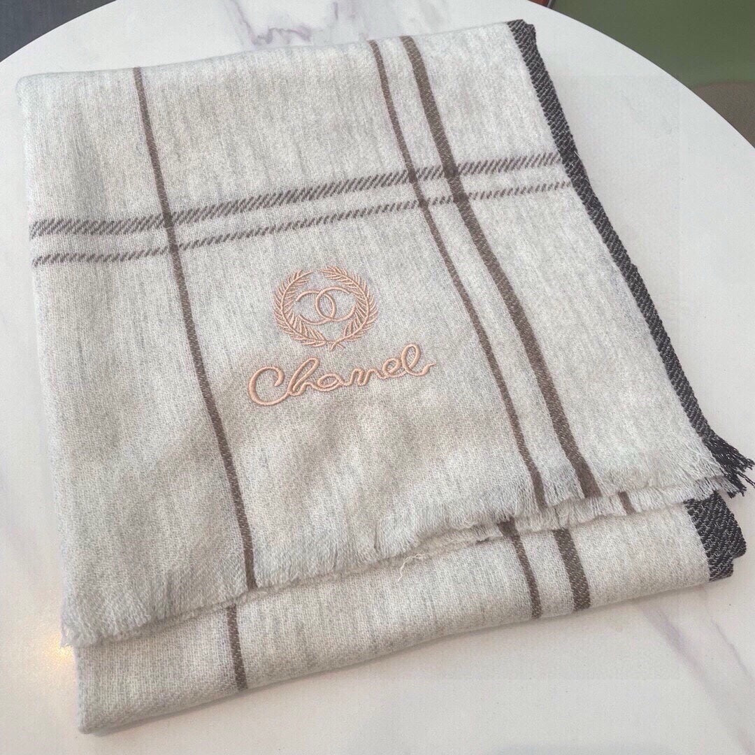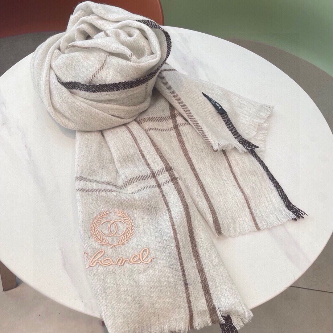 CC Scarf 190 CM In Light Grey With Brown Stripes Cashmere 411650