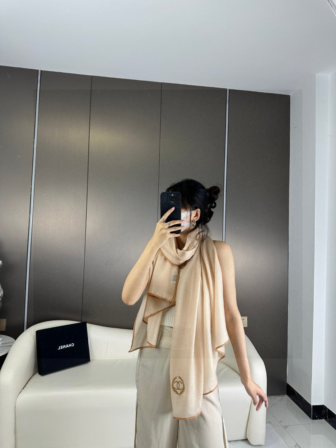 CC Scarf 200 CM In Beige Cashmere Silk 274163