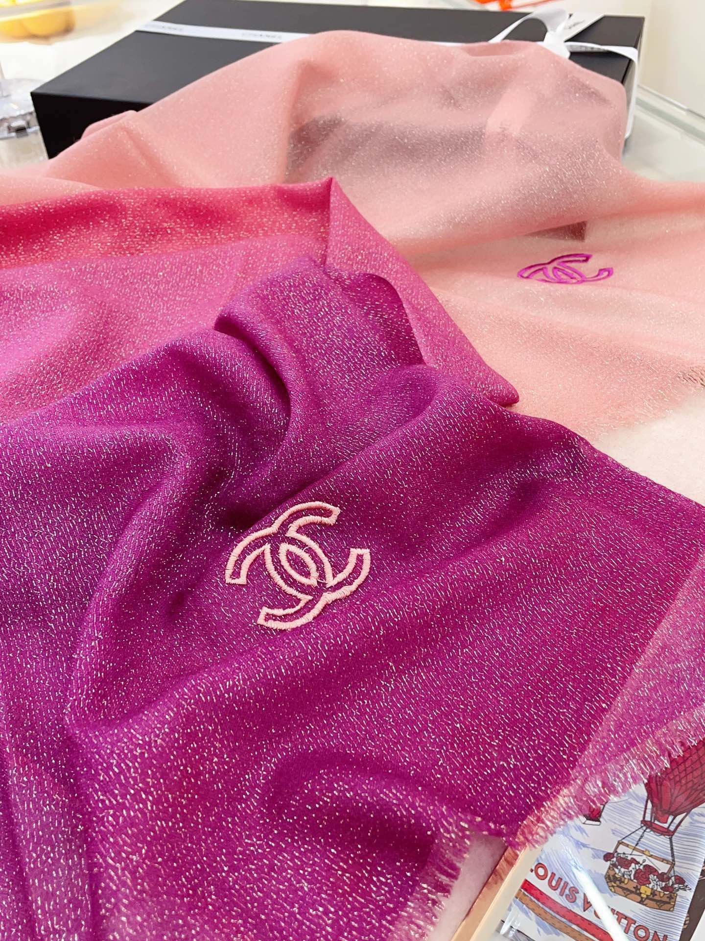 CC Scarf 200 CM In Dark Pink Mix Light Pink Linen Fabric 249937