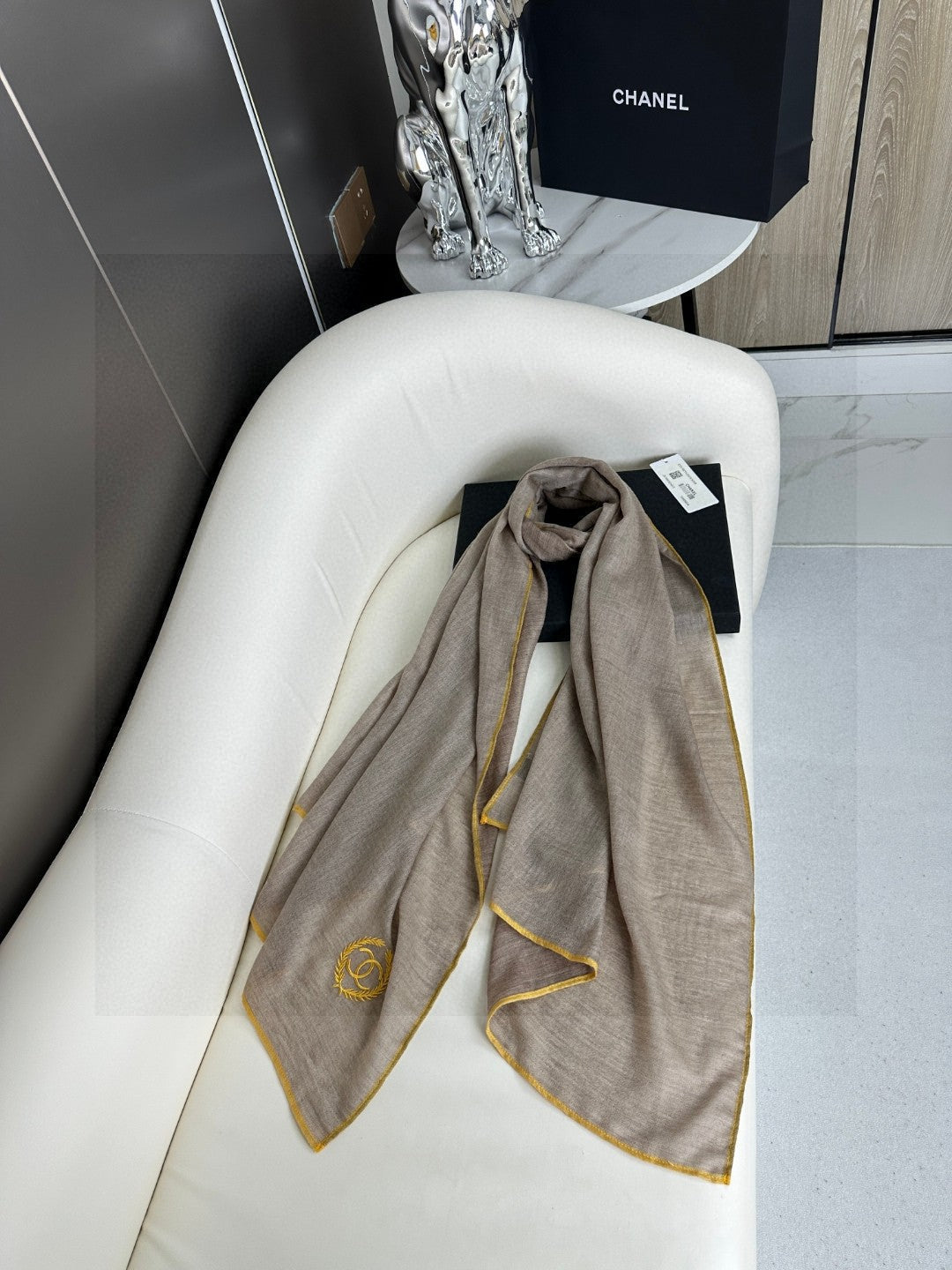 CC Scarf 200 CM In Grey Brown Cashmere Silk 274162