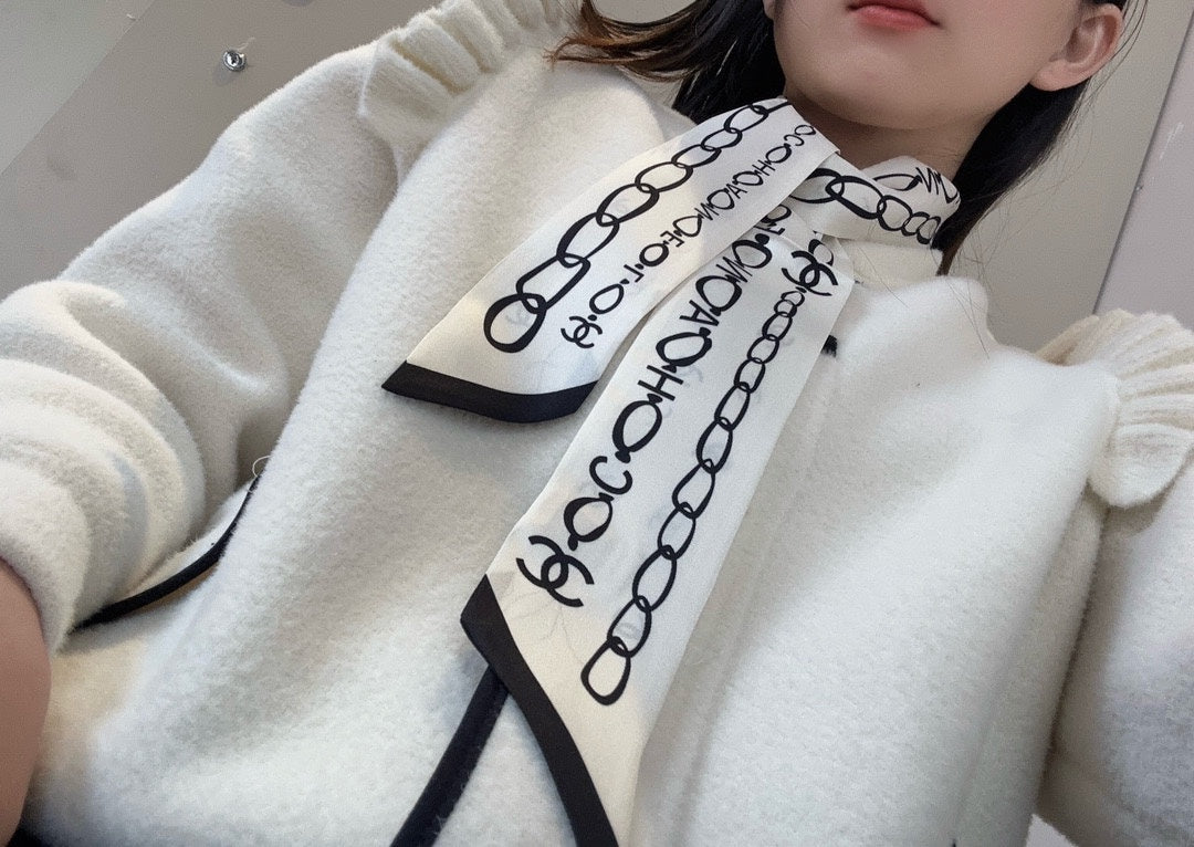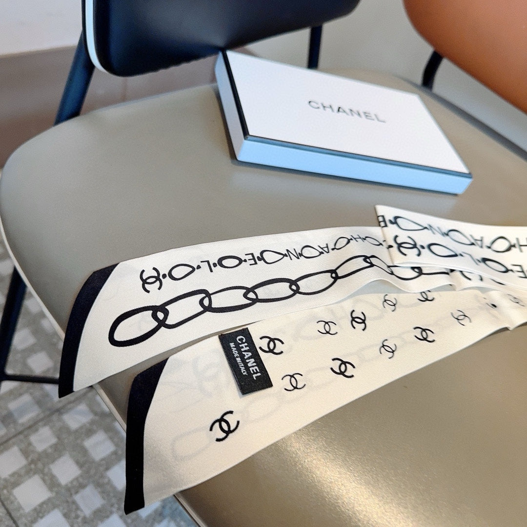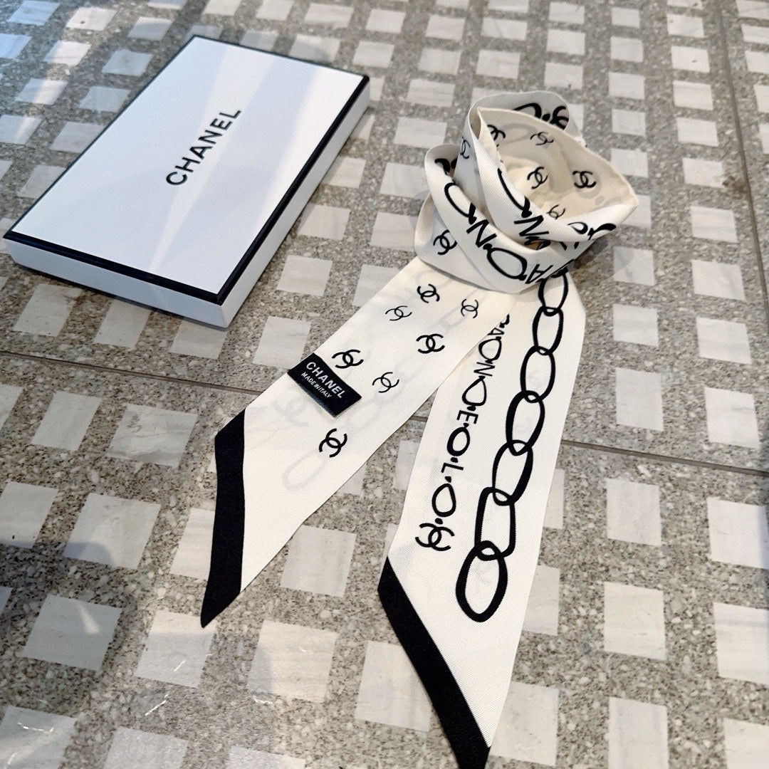 CC Slim Bandeau 120 CM In White Black Silk Twill 166317