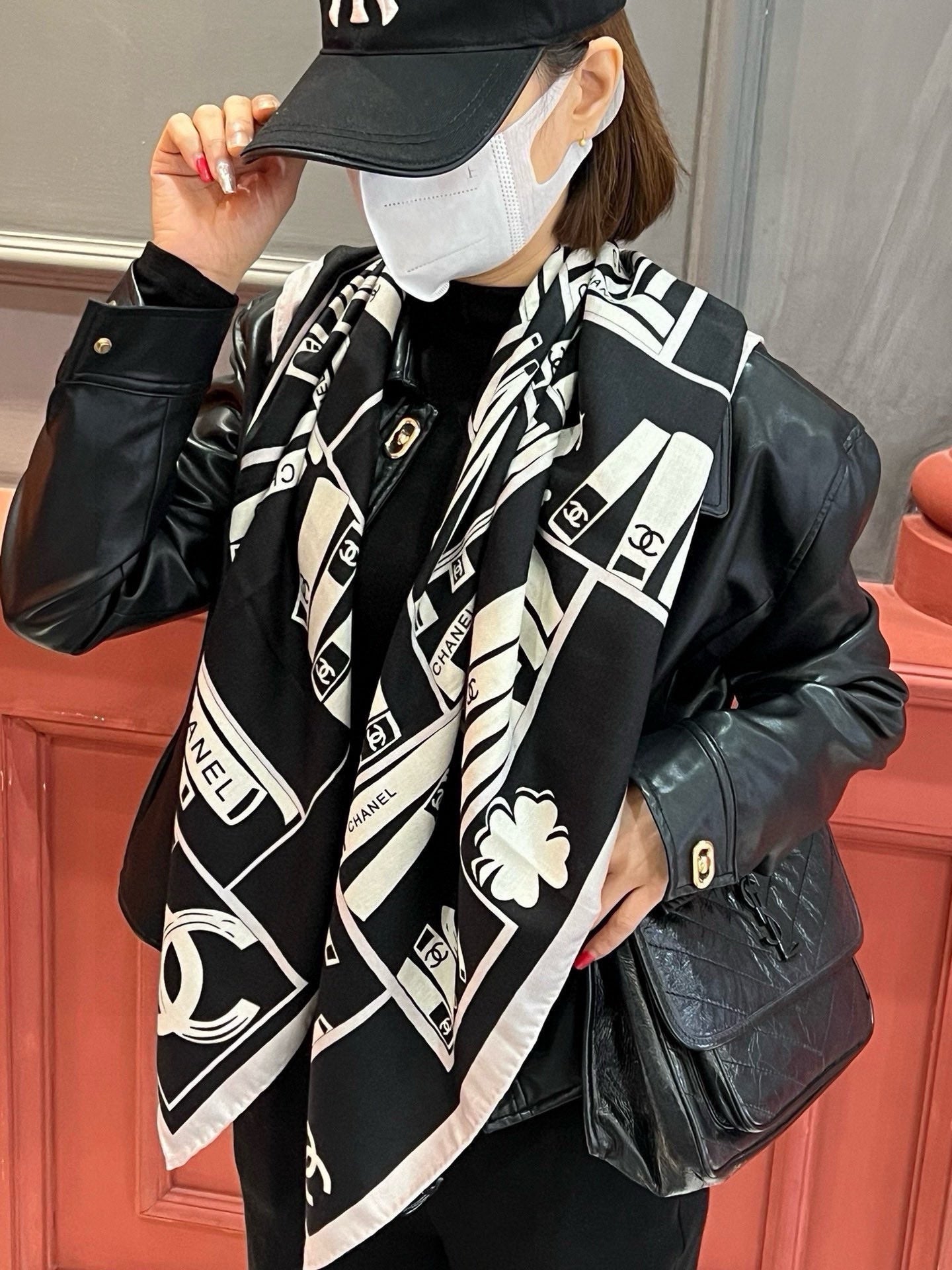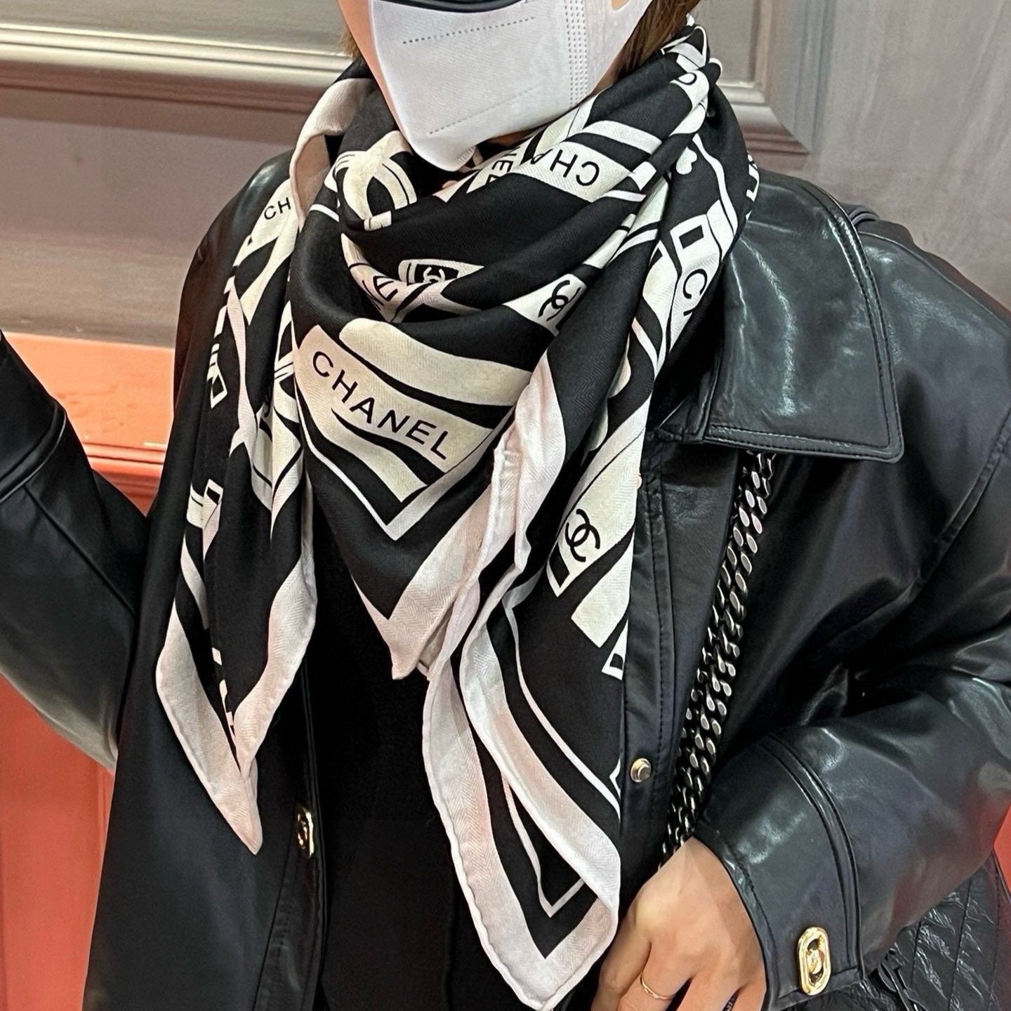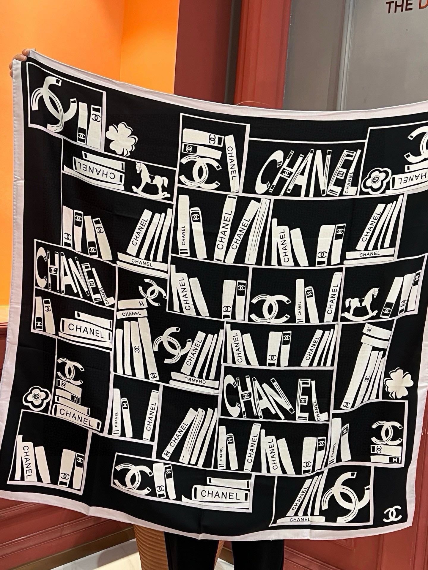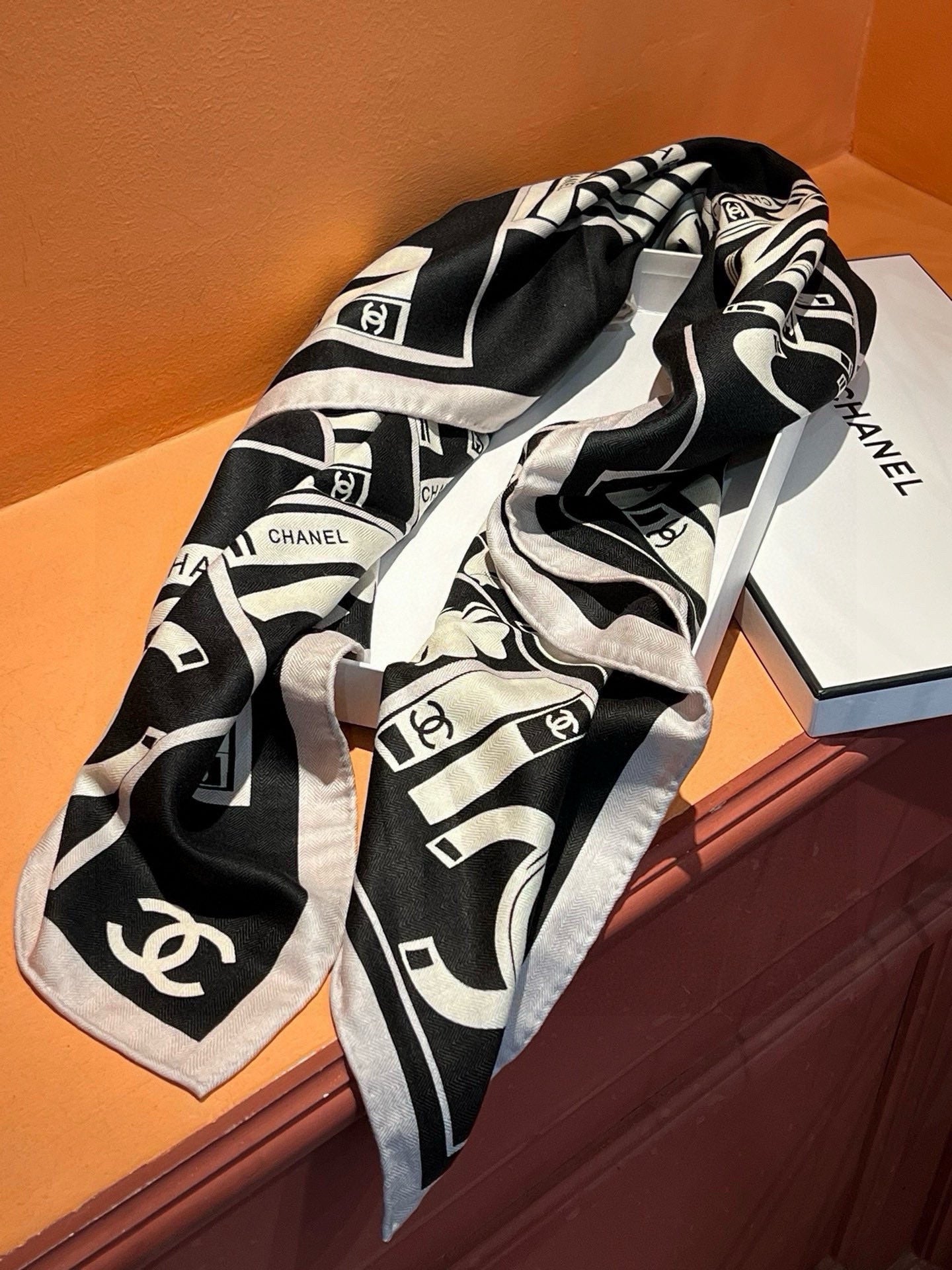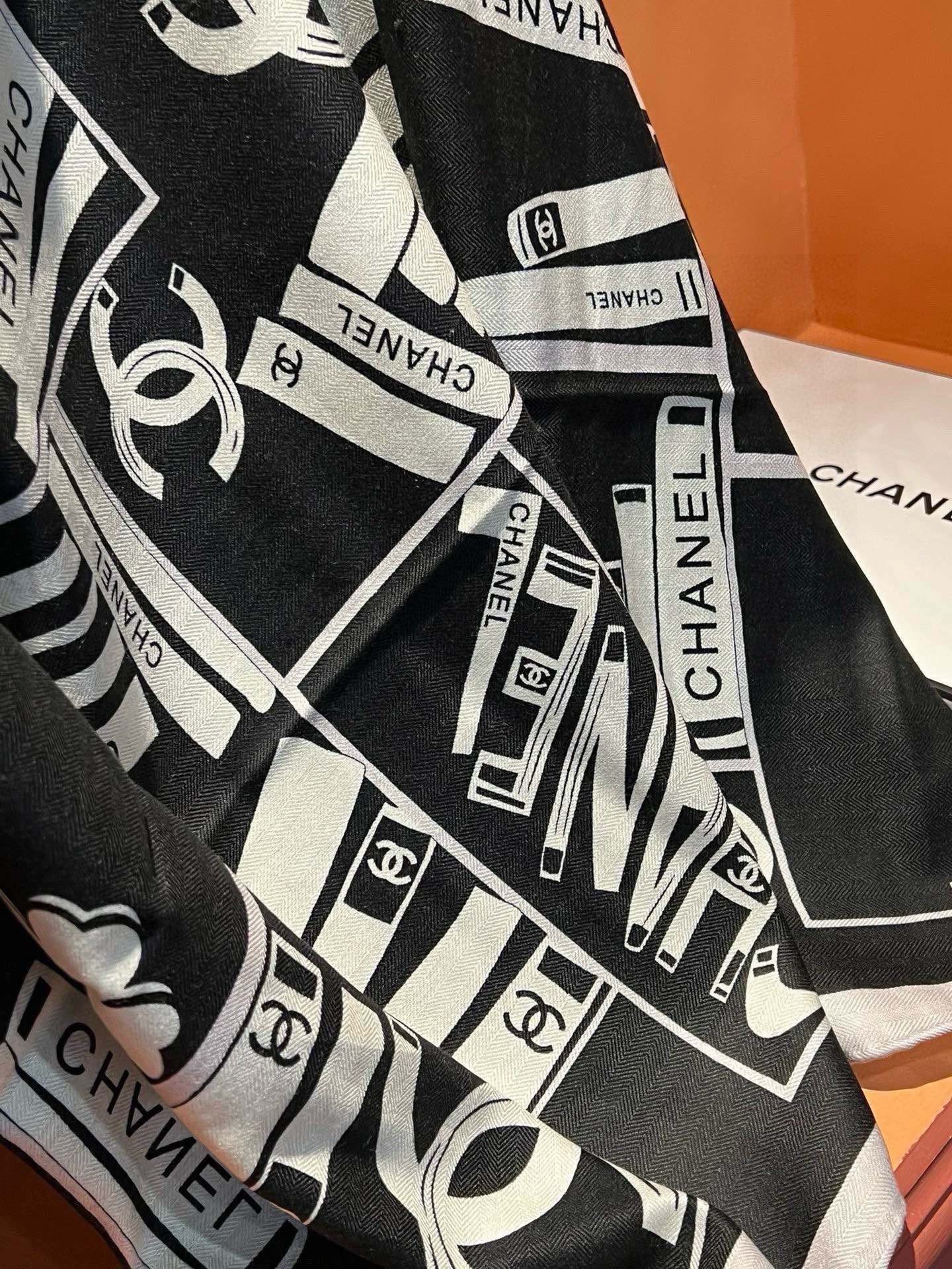 CC Square Scarf 110 CM In Black Mix White Cashmere Silk 221427