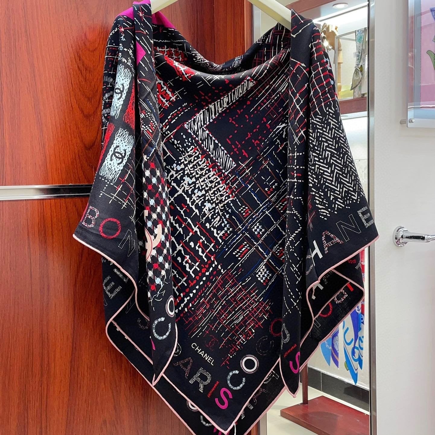 CC Square Scarf 140 CM In Black Colorful Cashmere And Silk 411594