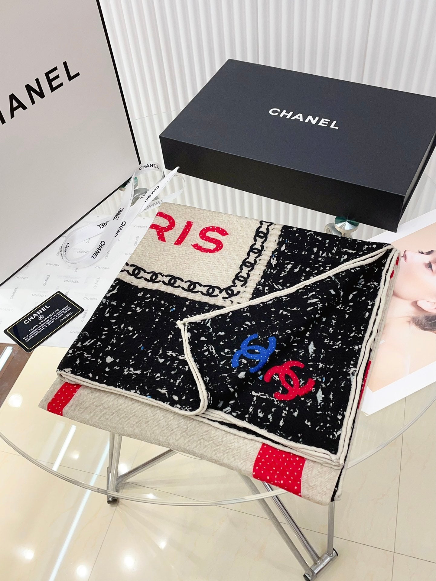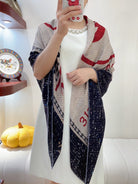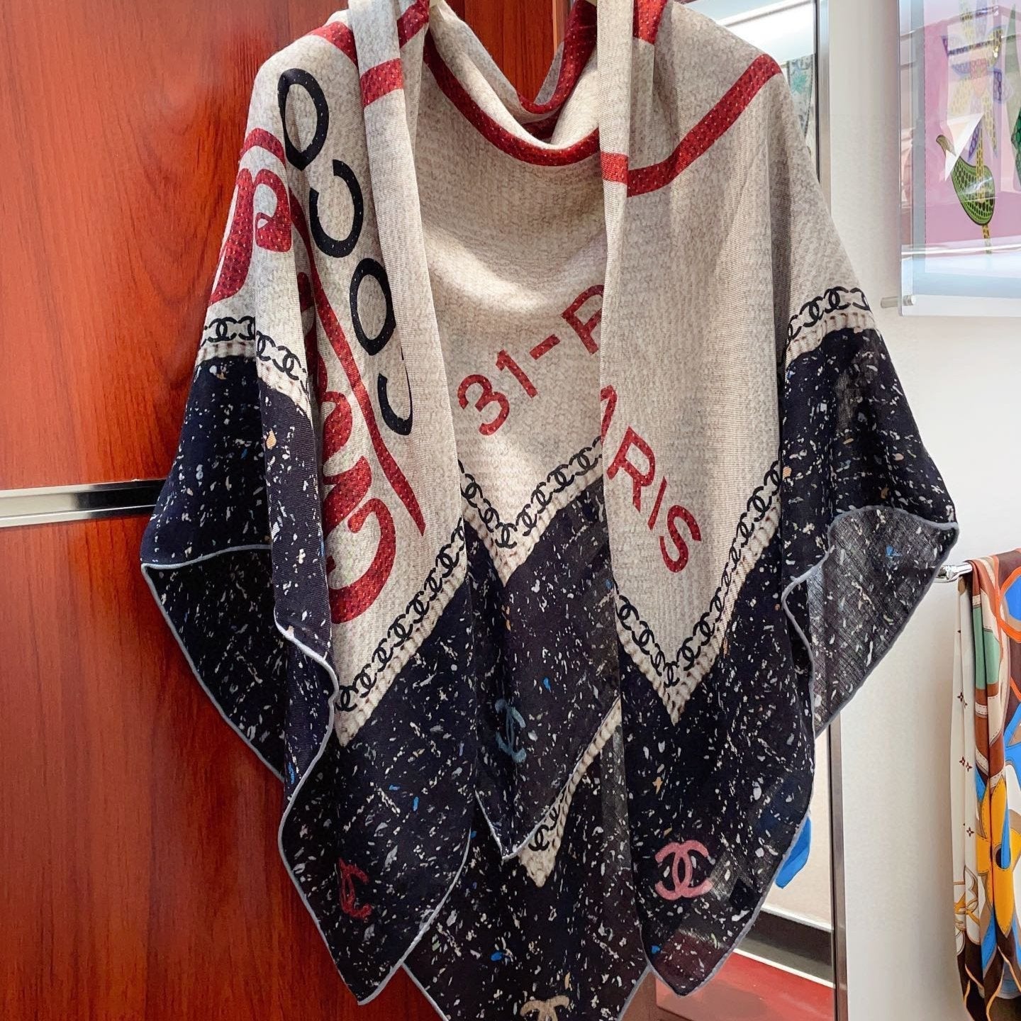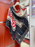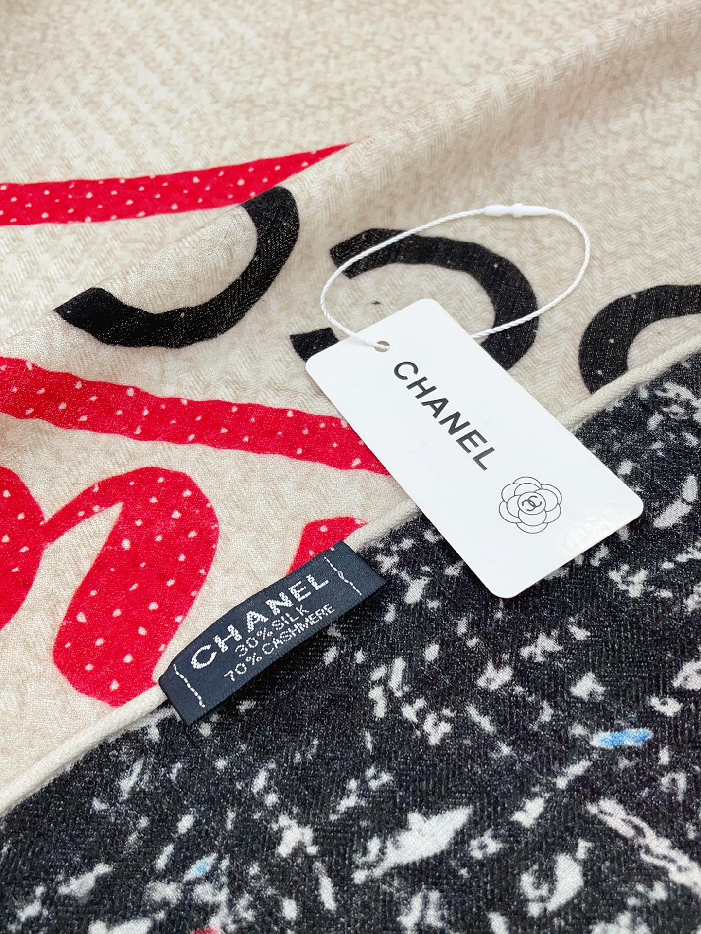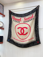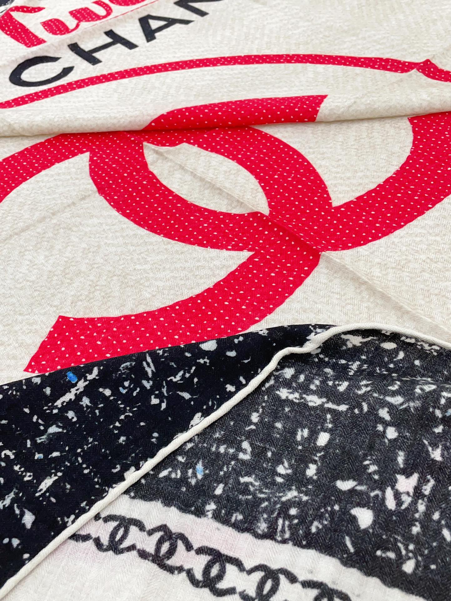 CC Square Scarf 140 CM In Black Mix Light Beige Red Cashmere Silk 234599