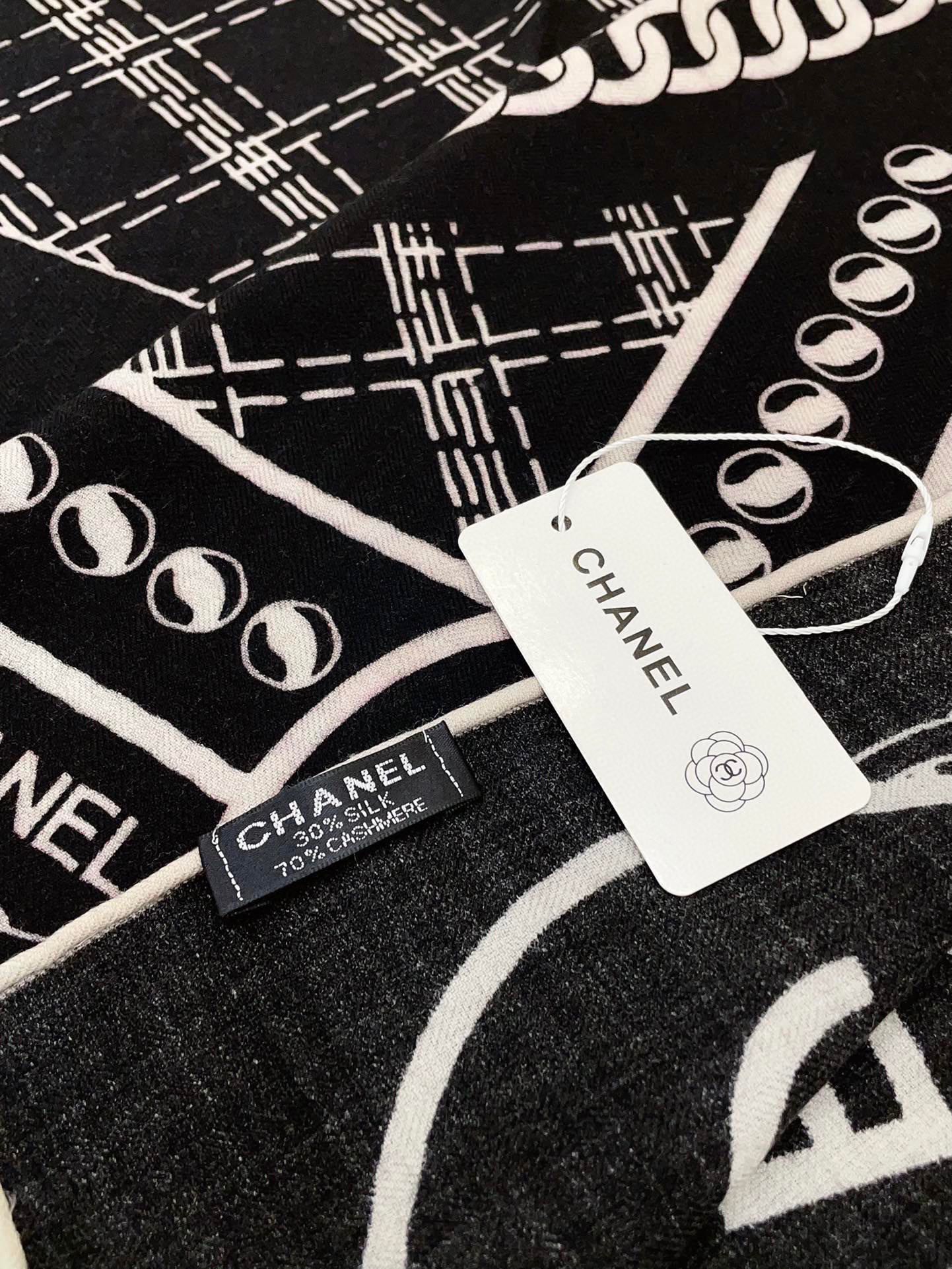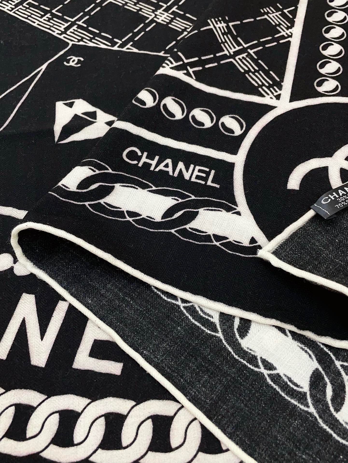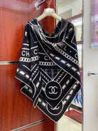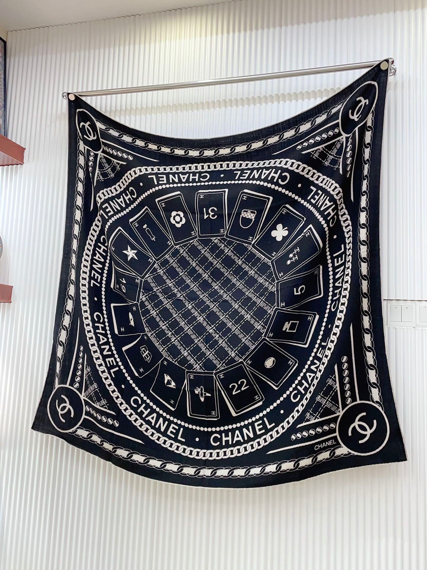 CC Square Scarf 140 CM In Black Mix White Cashmere And Silk 407280