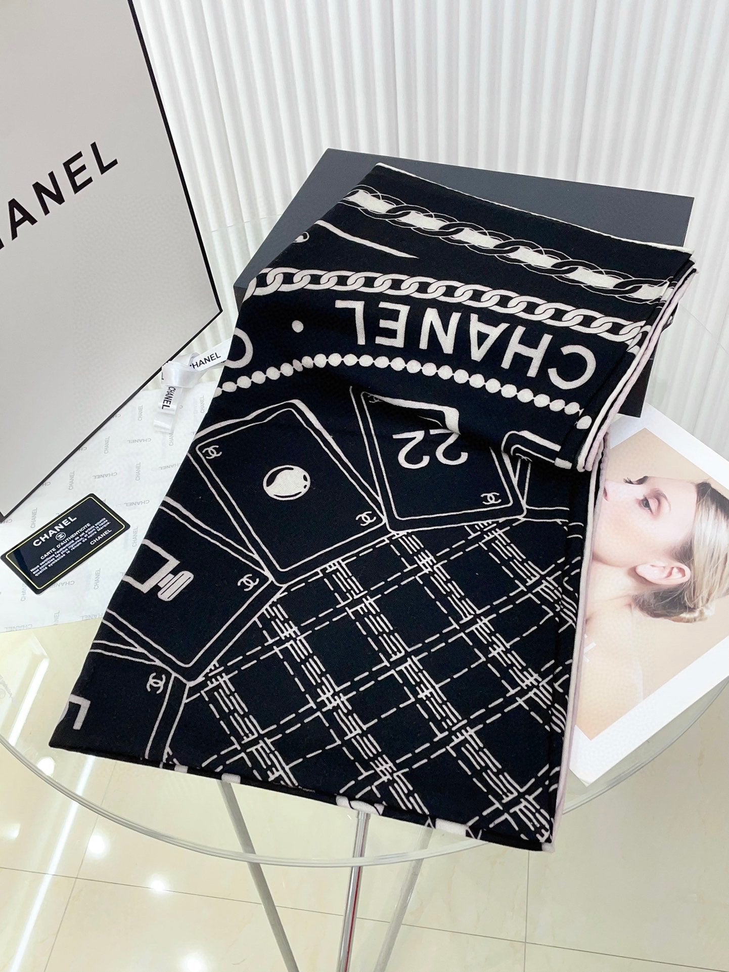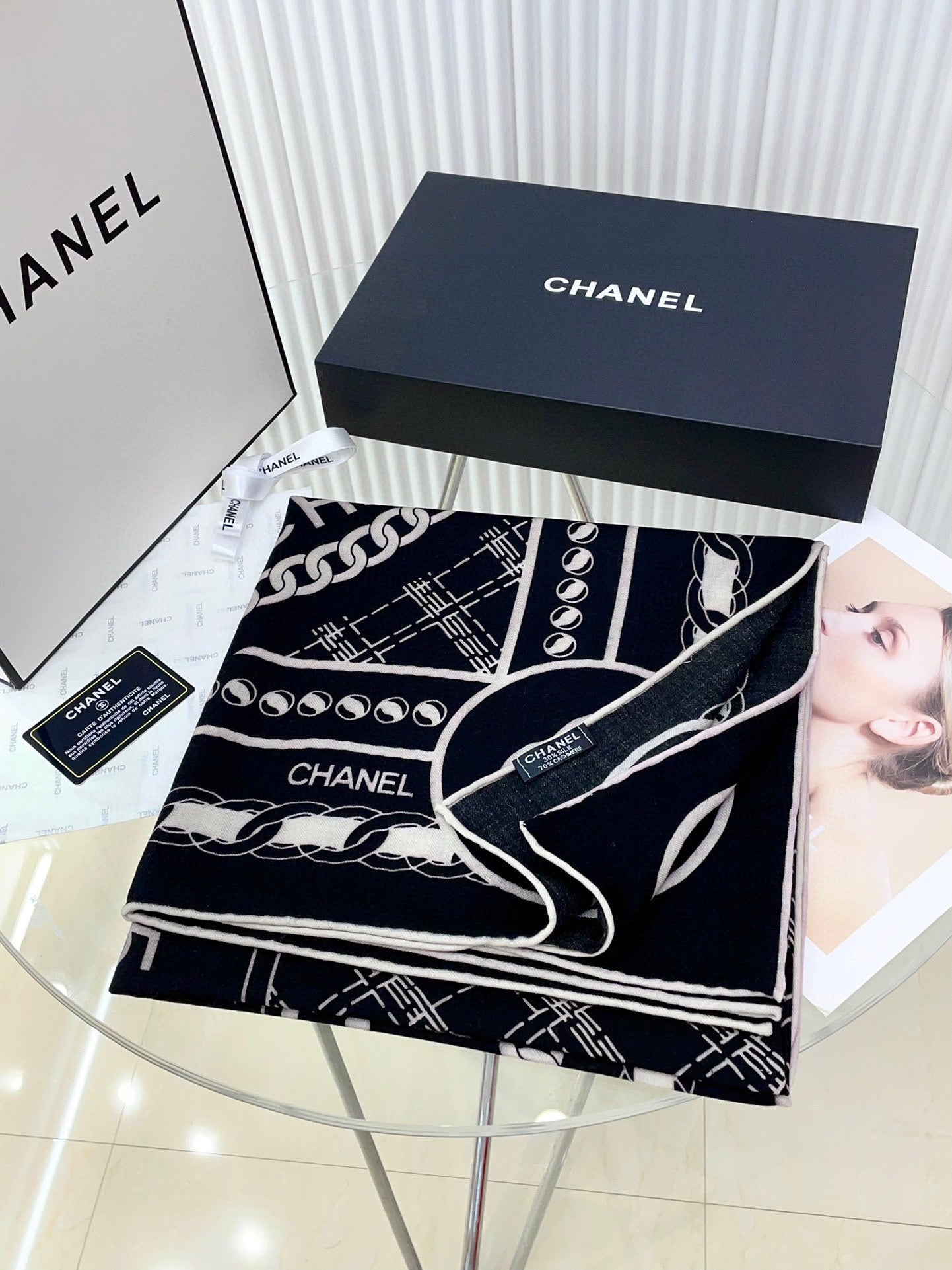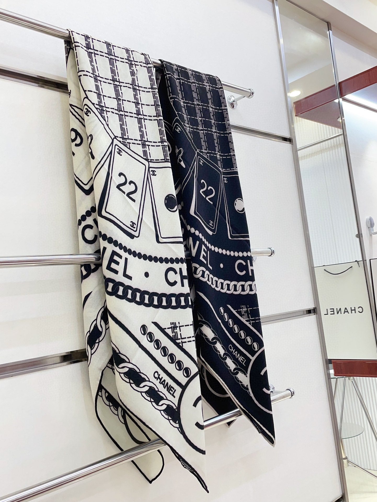CC Square Scarf 140 CM In Black Mix White Cashmere And Silk 407280