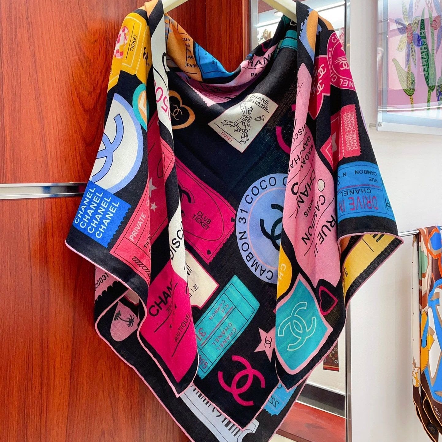 CC Square Scarf 140 CM In Multicolored Cashmere And Silk 350425