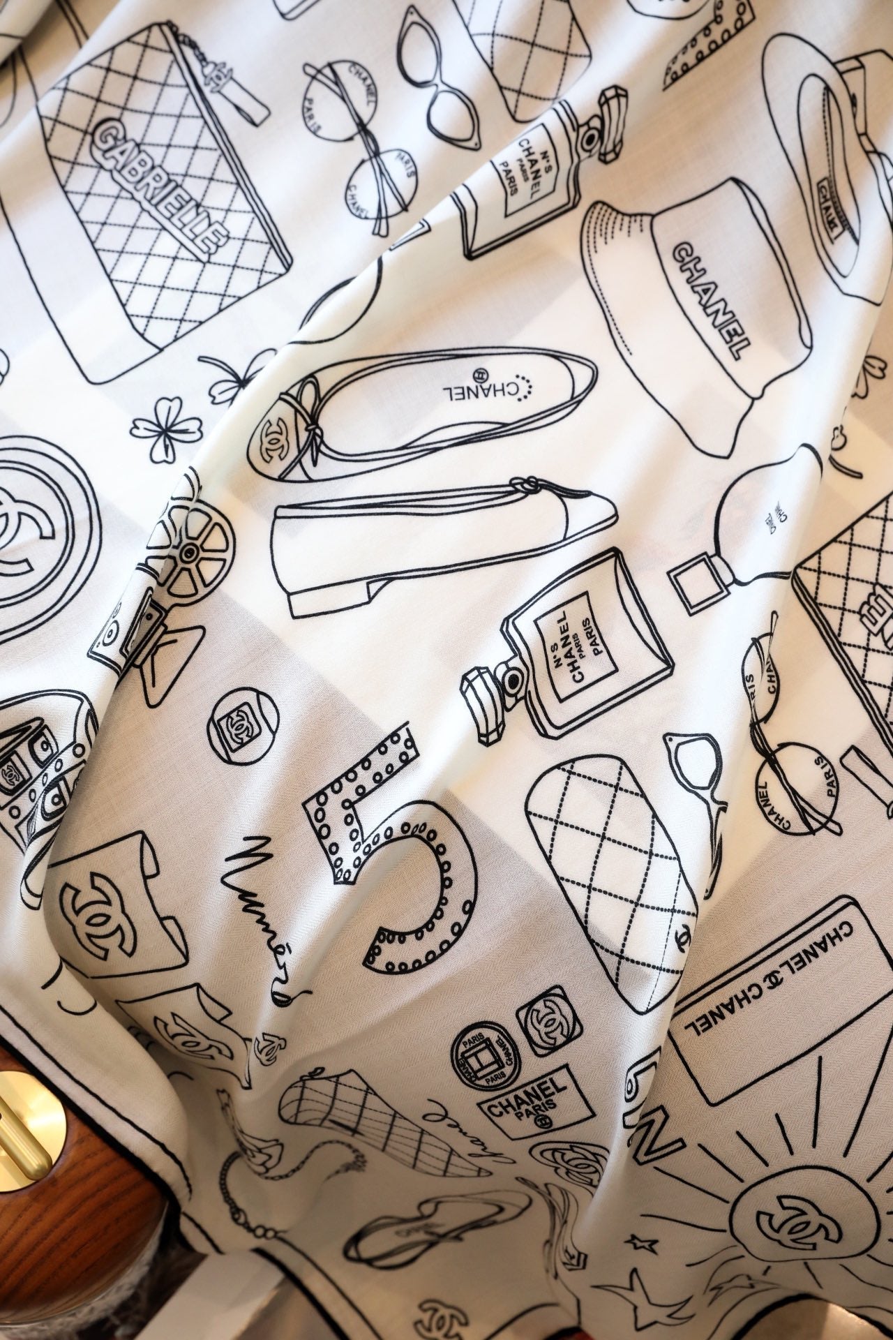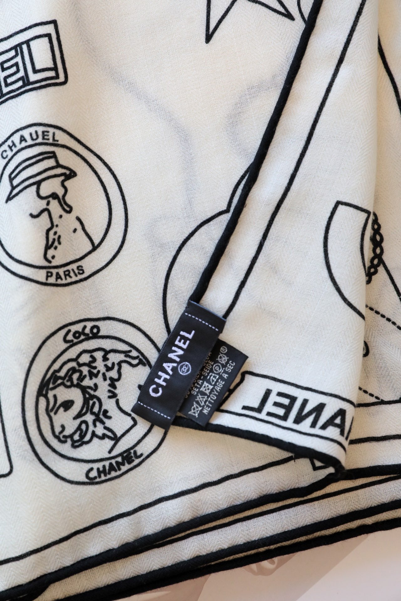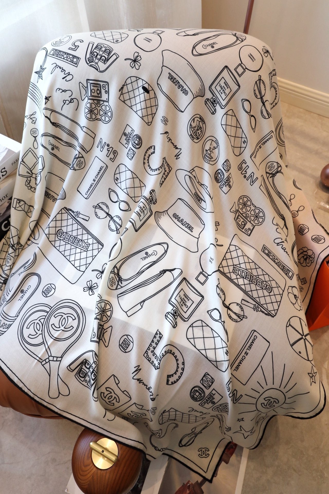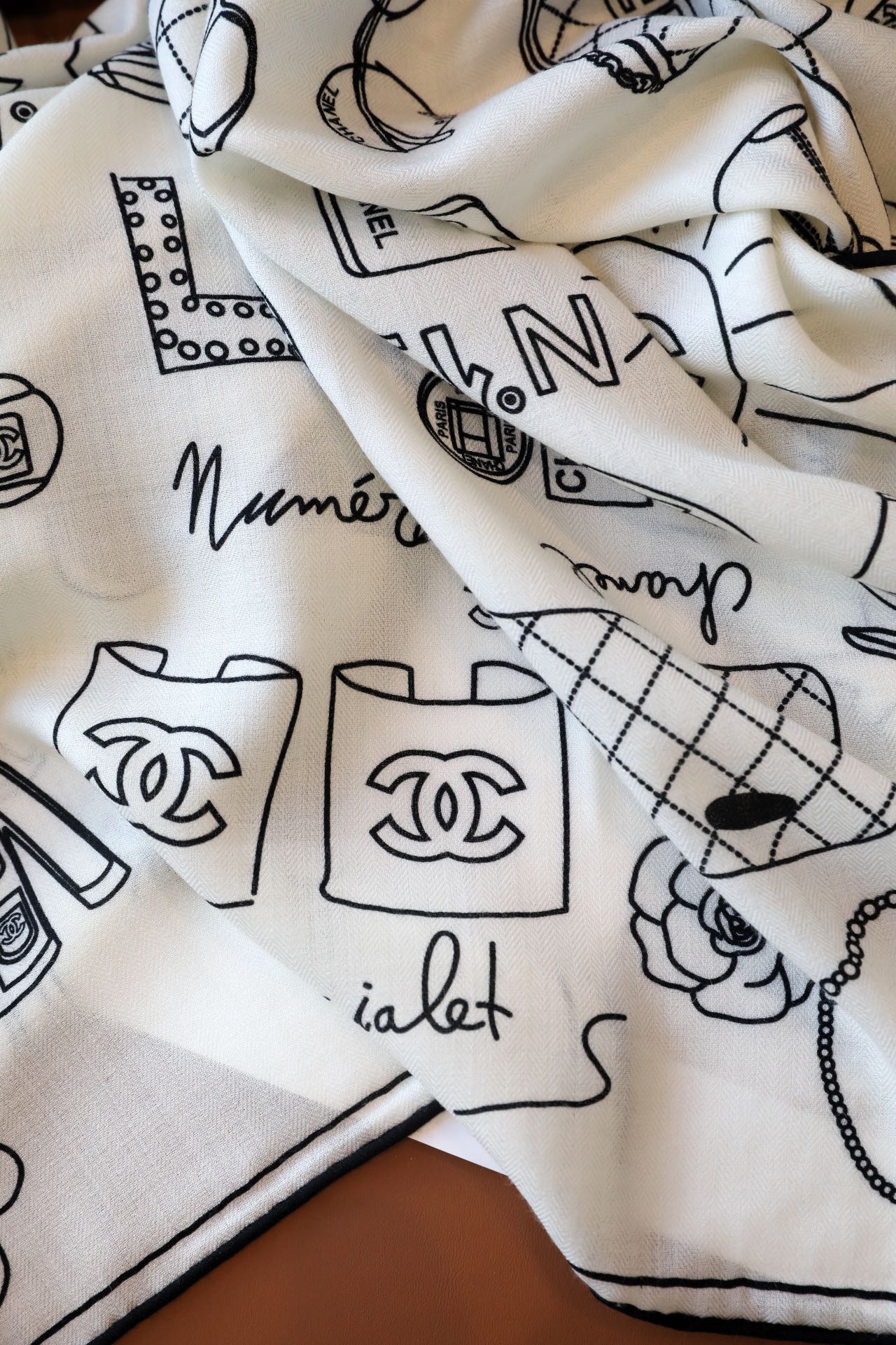 CC Square Scarf 140 CM In White Mix Black Cashmere Silk 383796