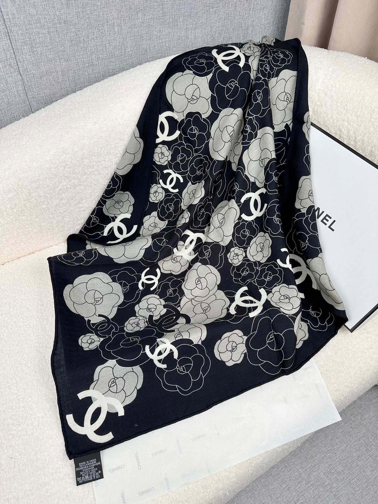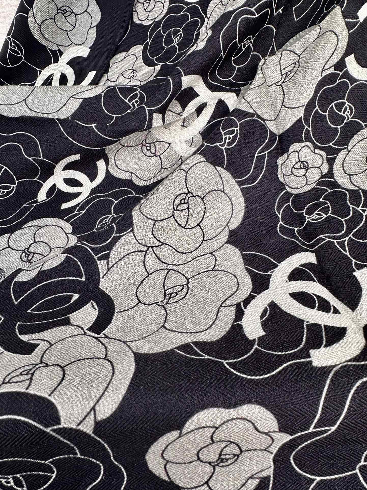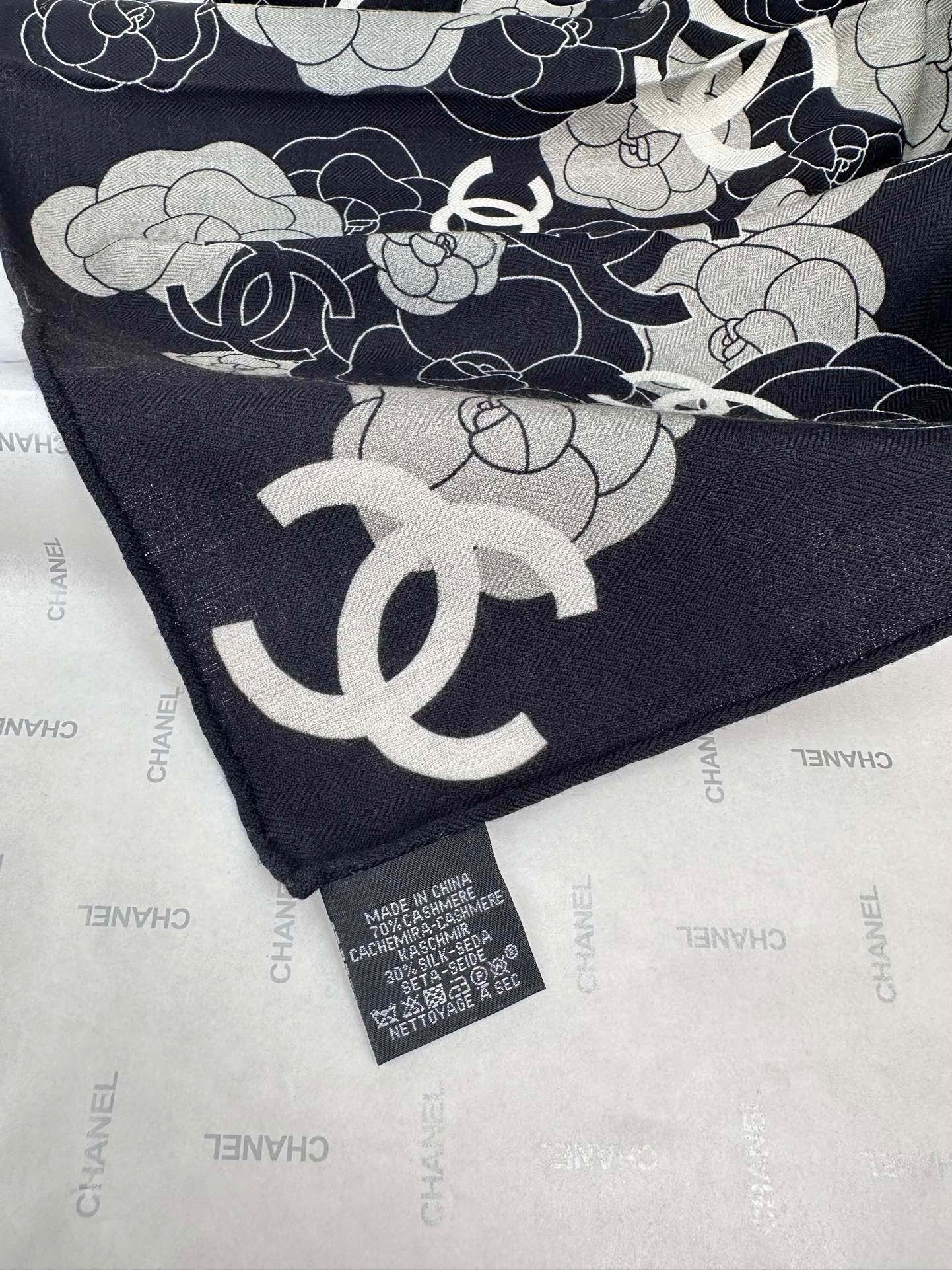 CC Square Scarf 70 CM In Black Mix Grey Camellia Cashmere And Silk 367380
