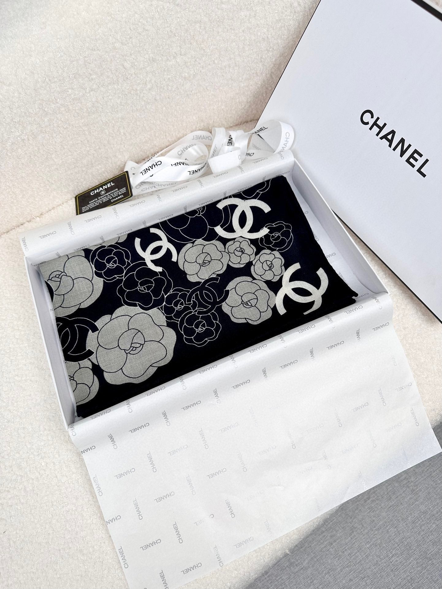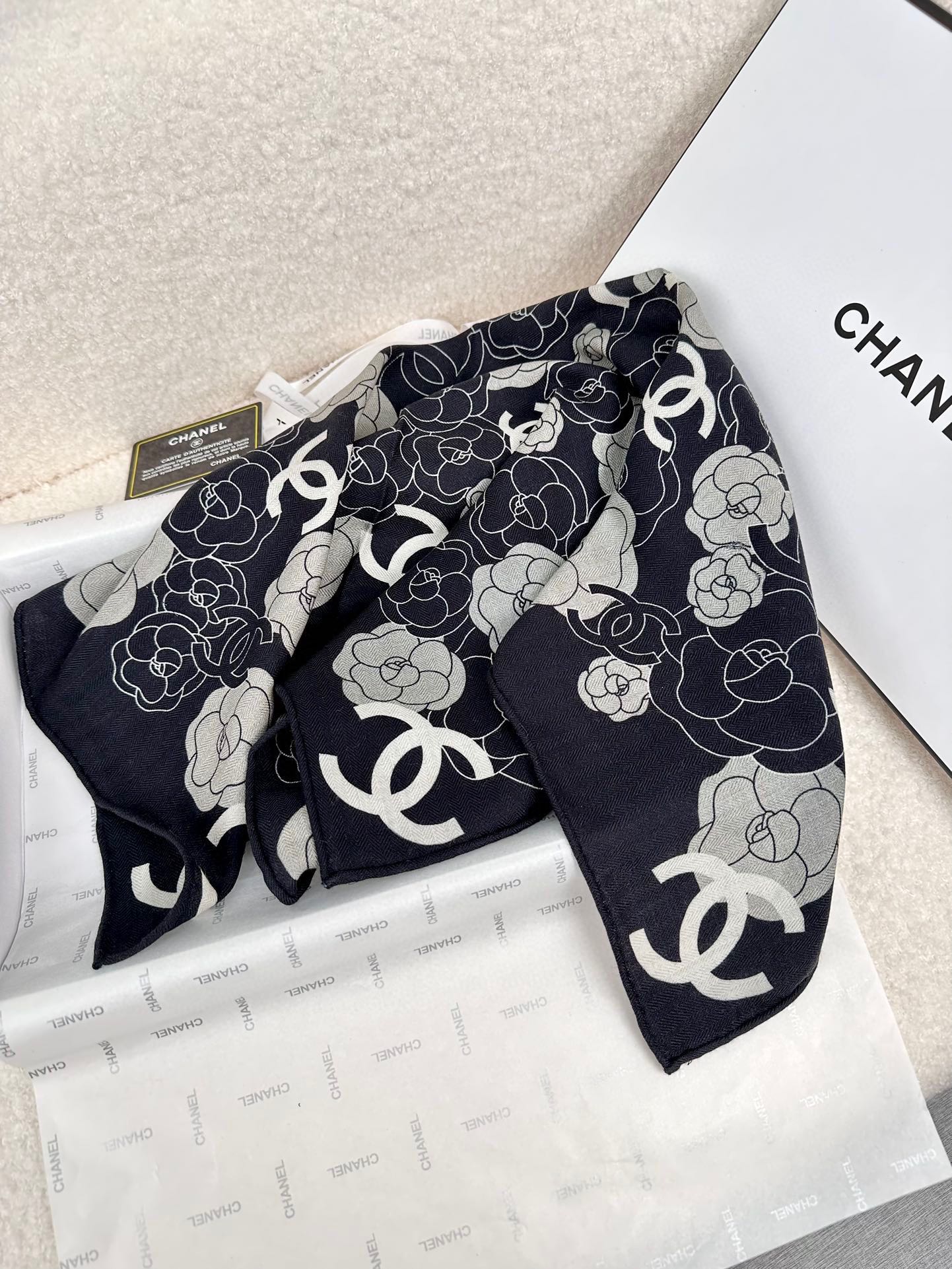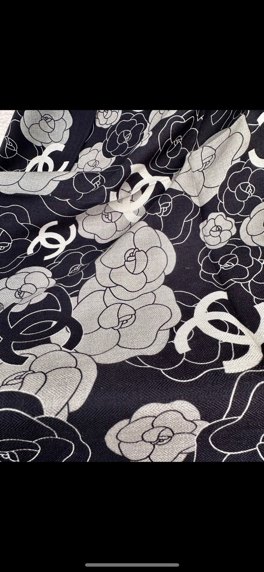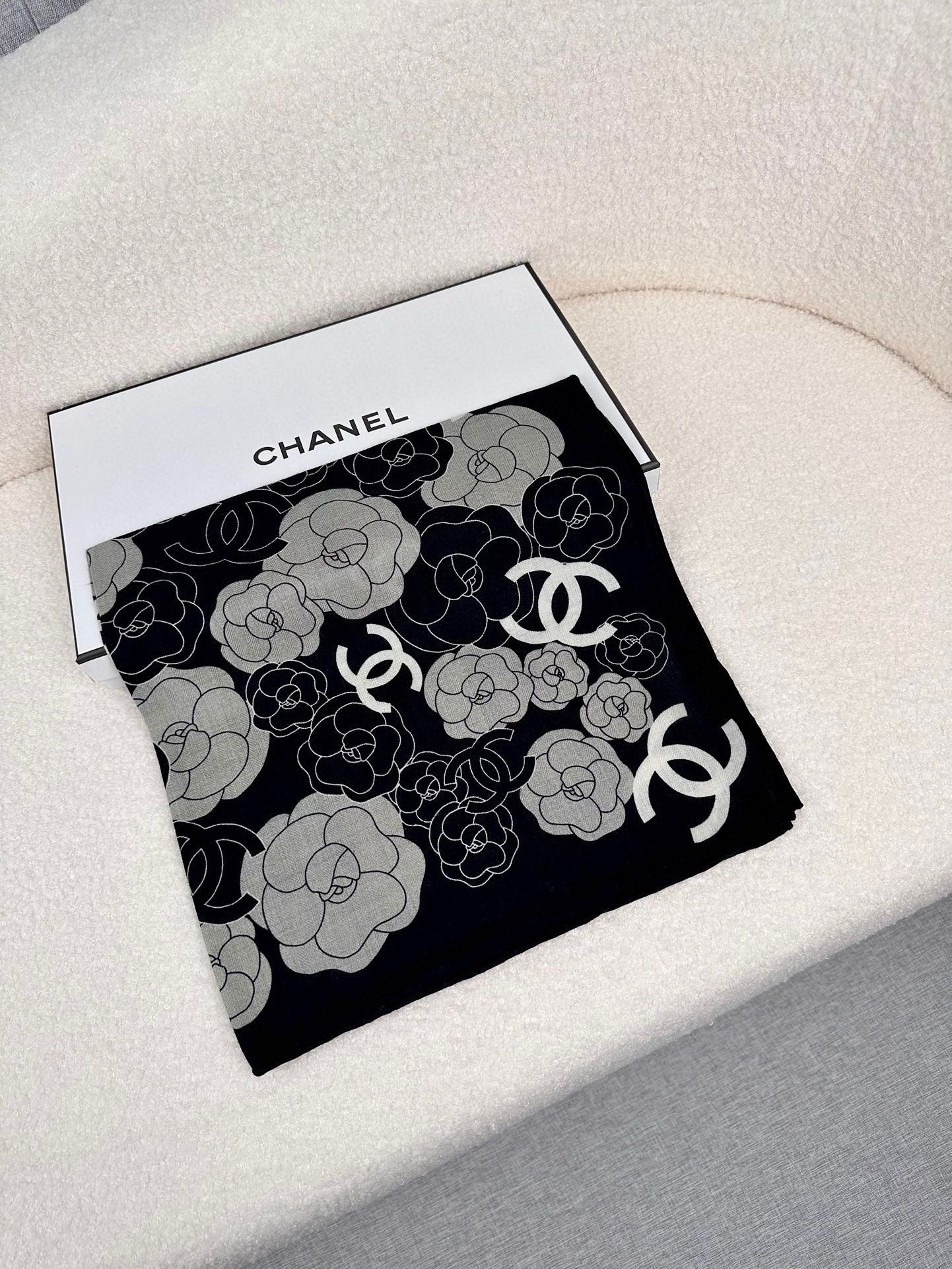 CC Square Scarf 70 CM In Black Mix Grey Camellia Cashmere And Silk 367380