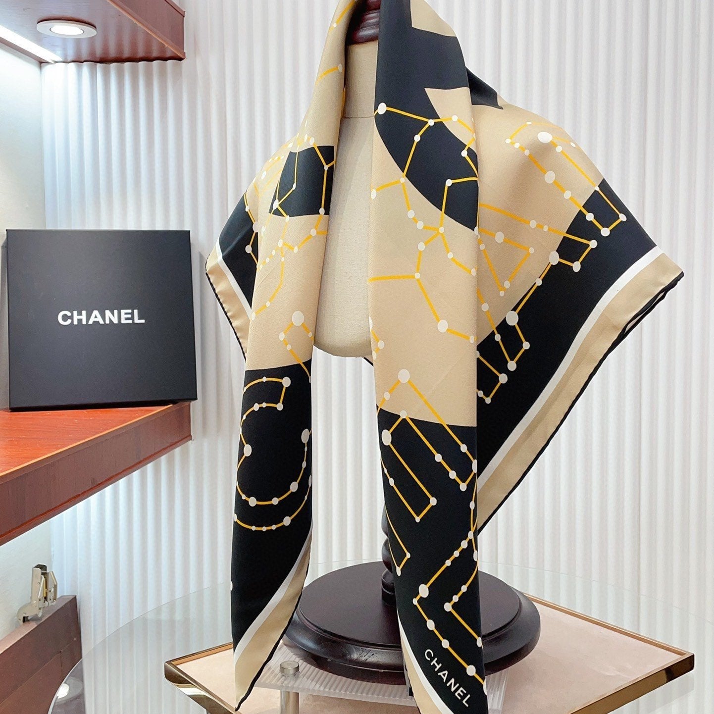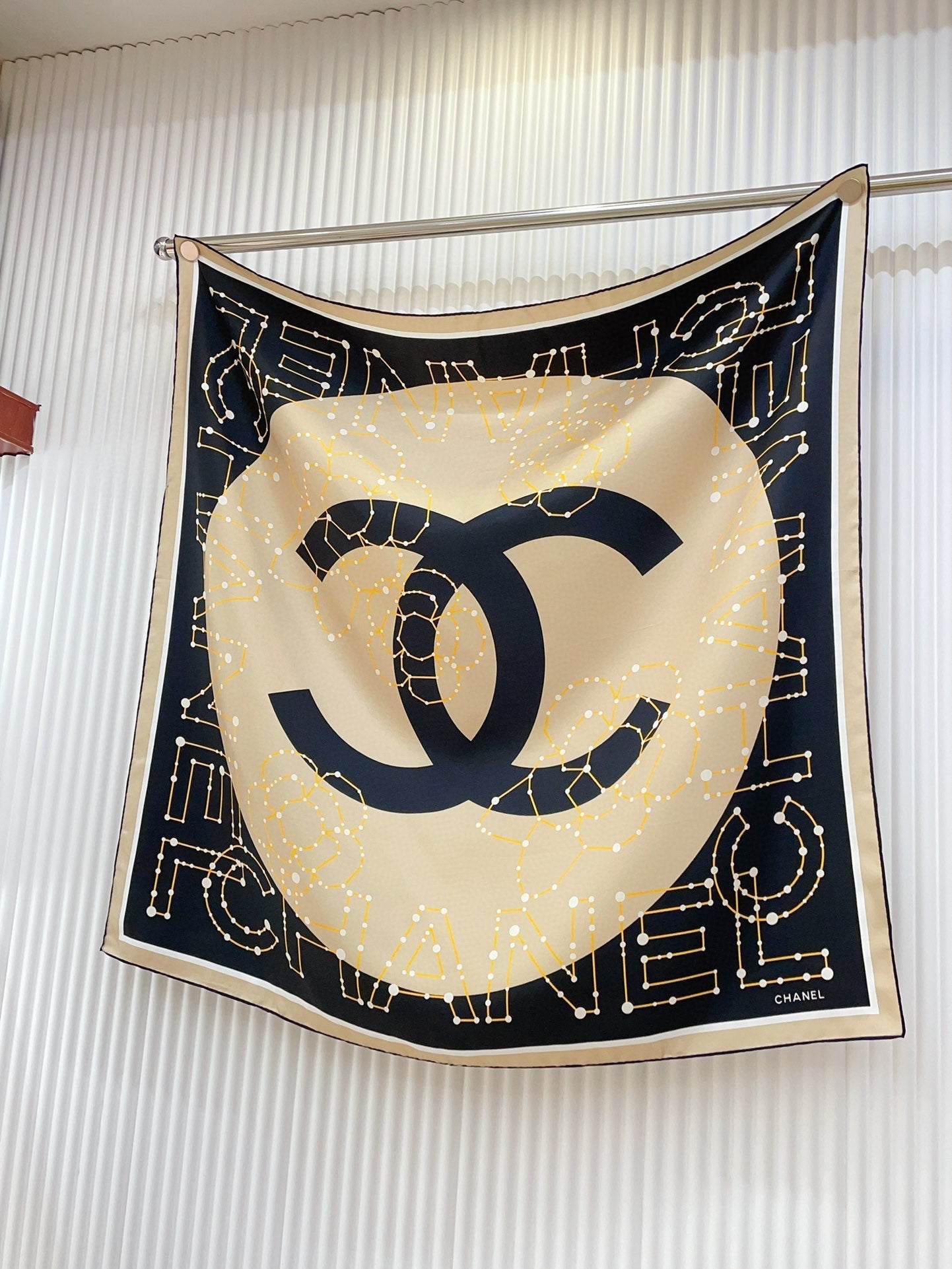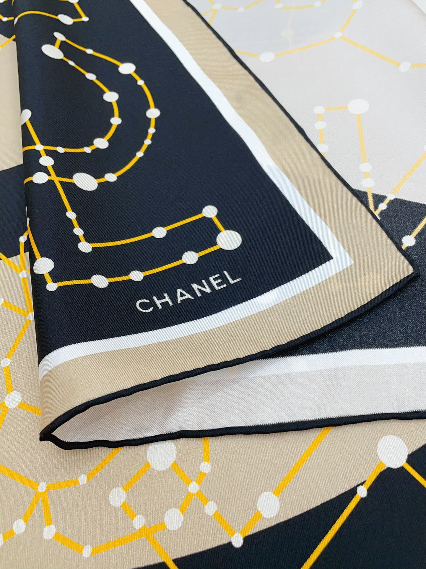 CC Square Scarf 90 CM In Black Mix Beige Silk Twill 206457