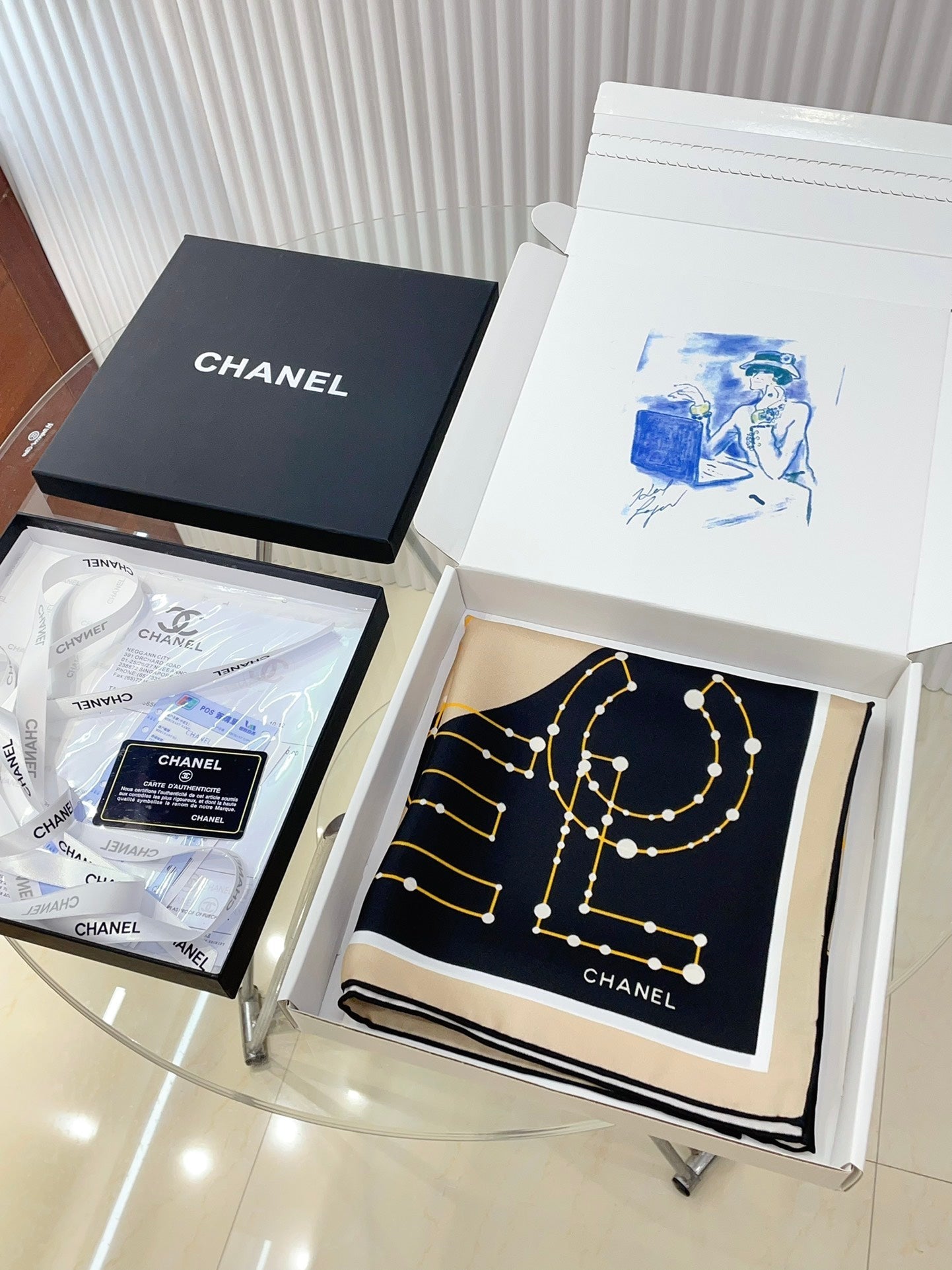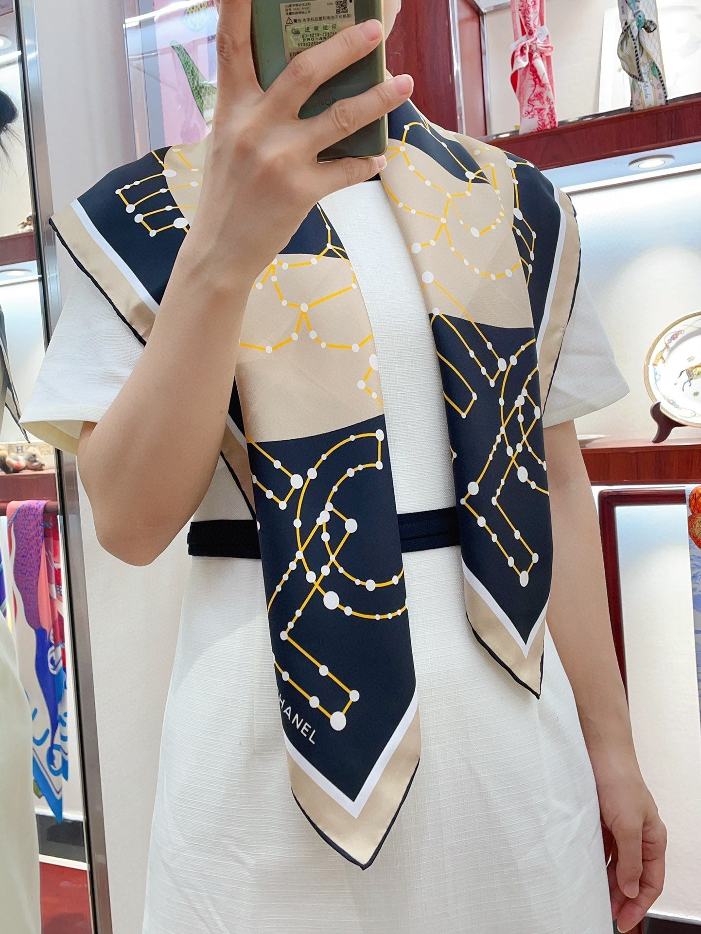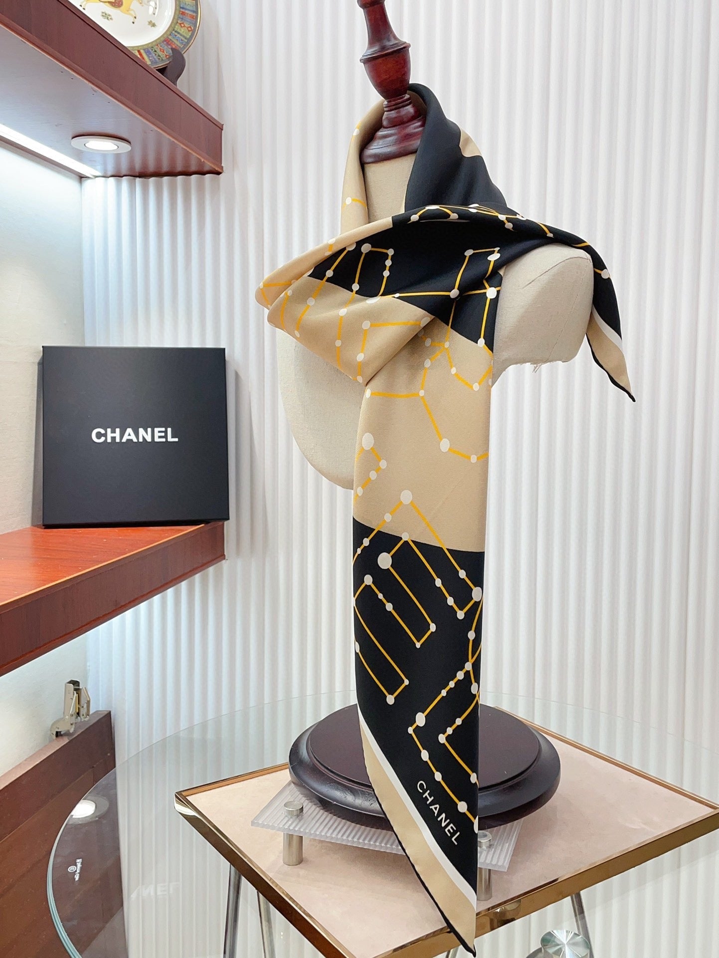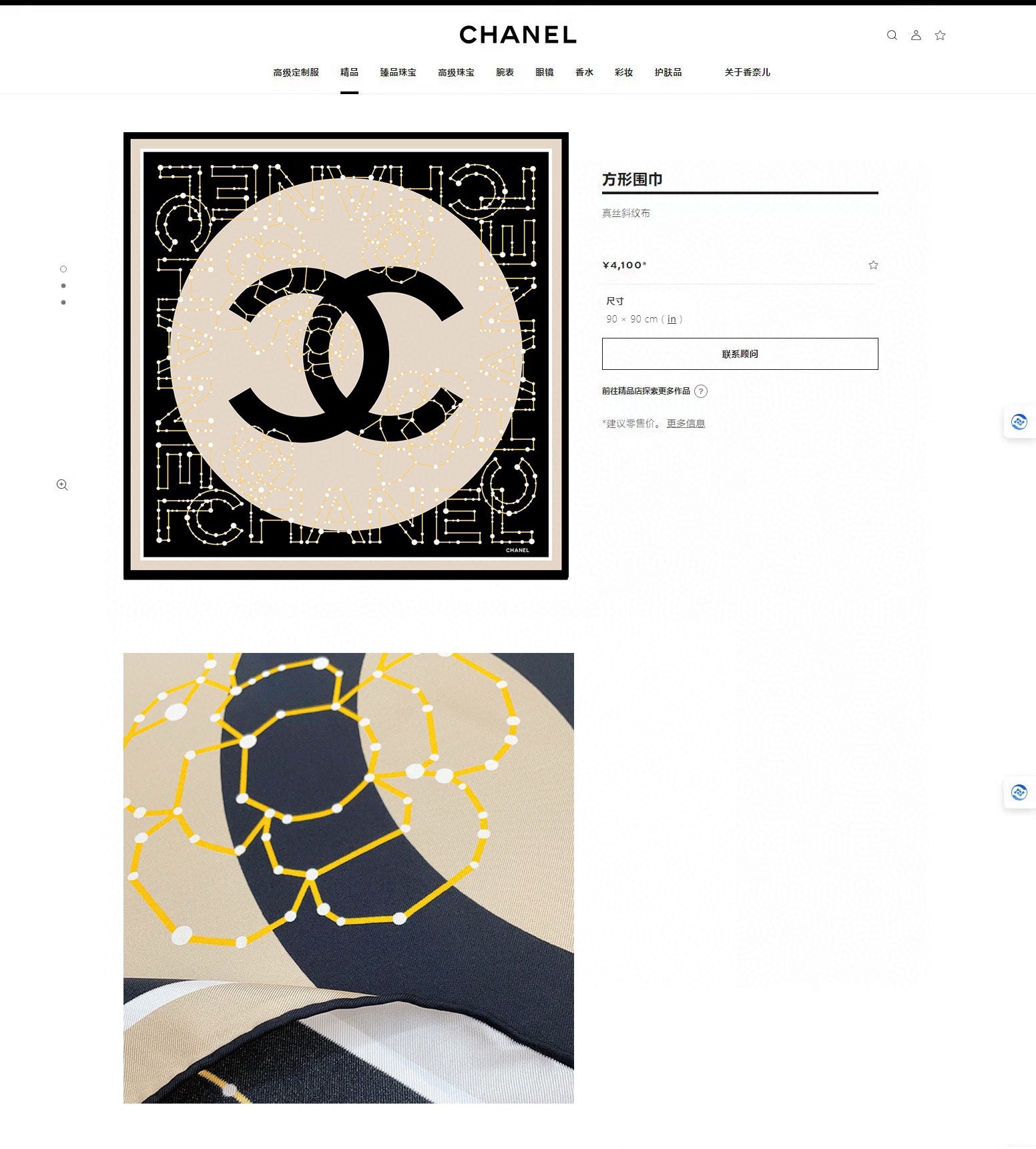 CC Square Scarf 90 CM In Black Mix Beige Silk Twill 206457