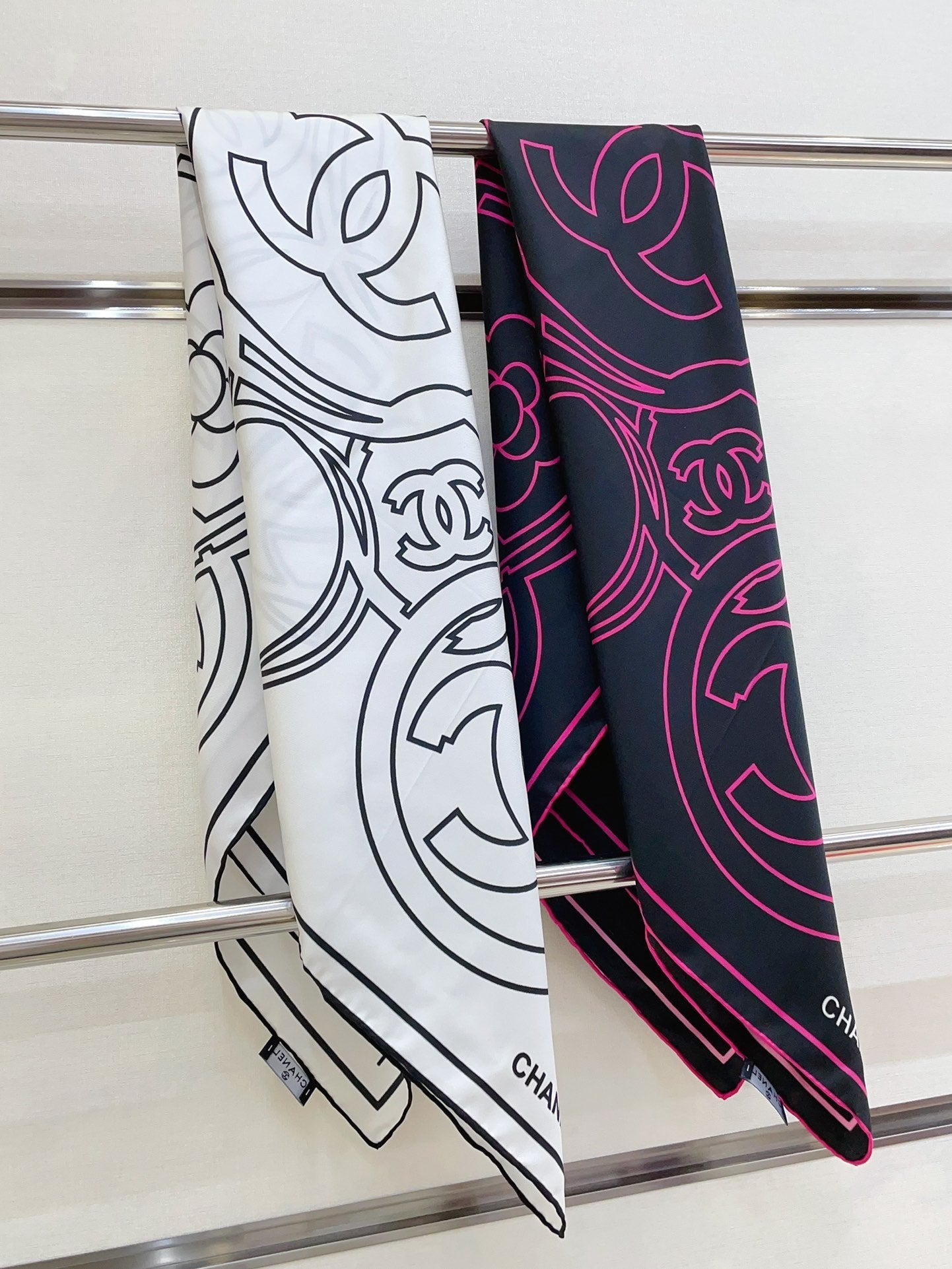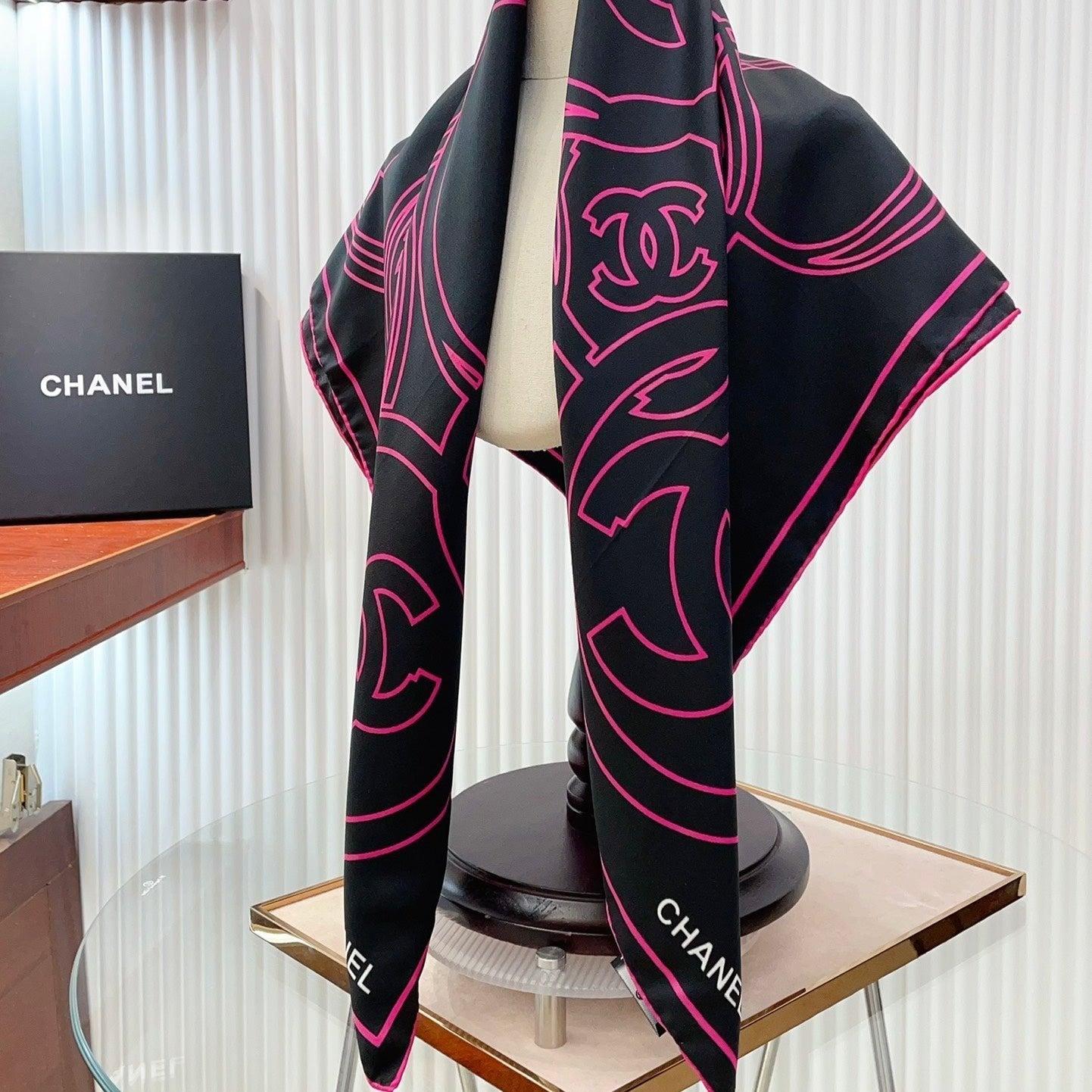 CC Square Scarf 90 CM In Black Mix Pink Silk Twill 187438
