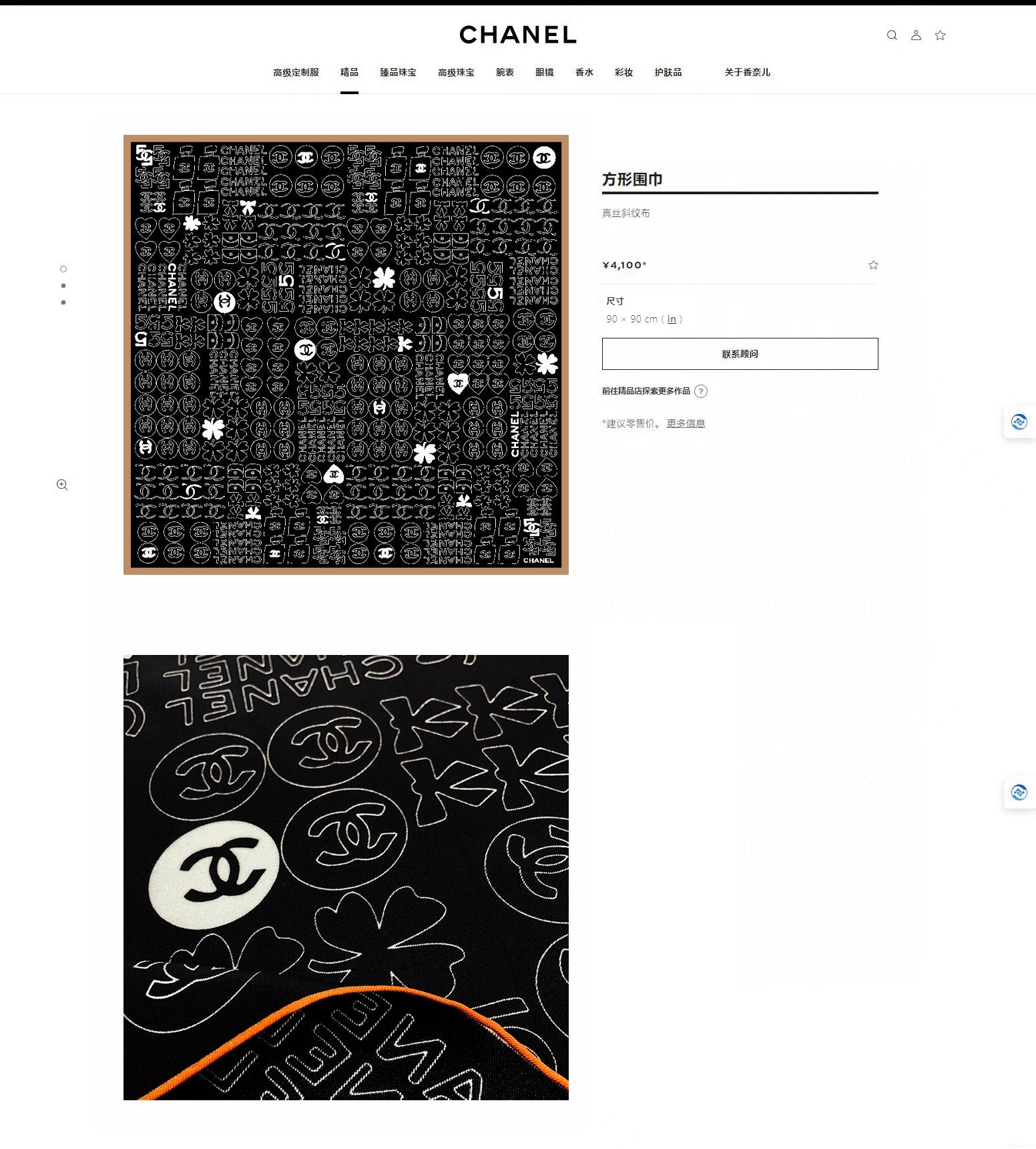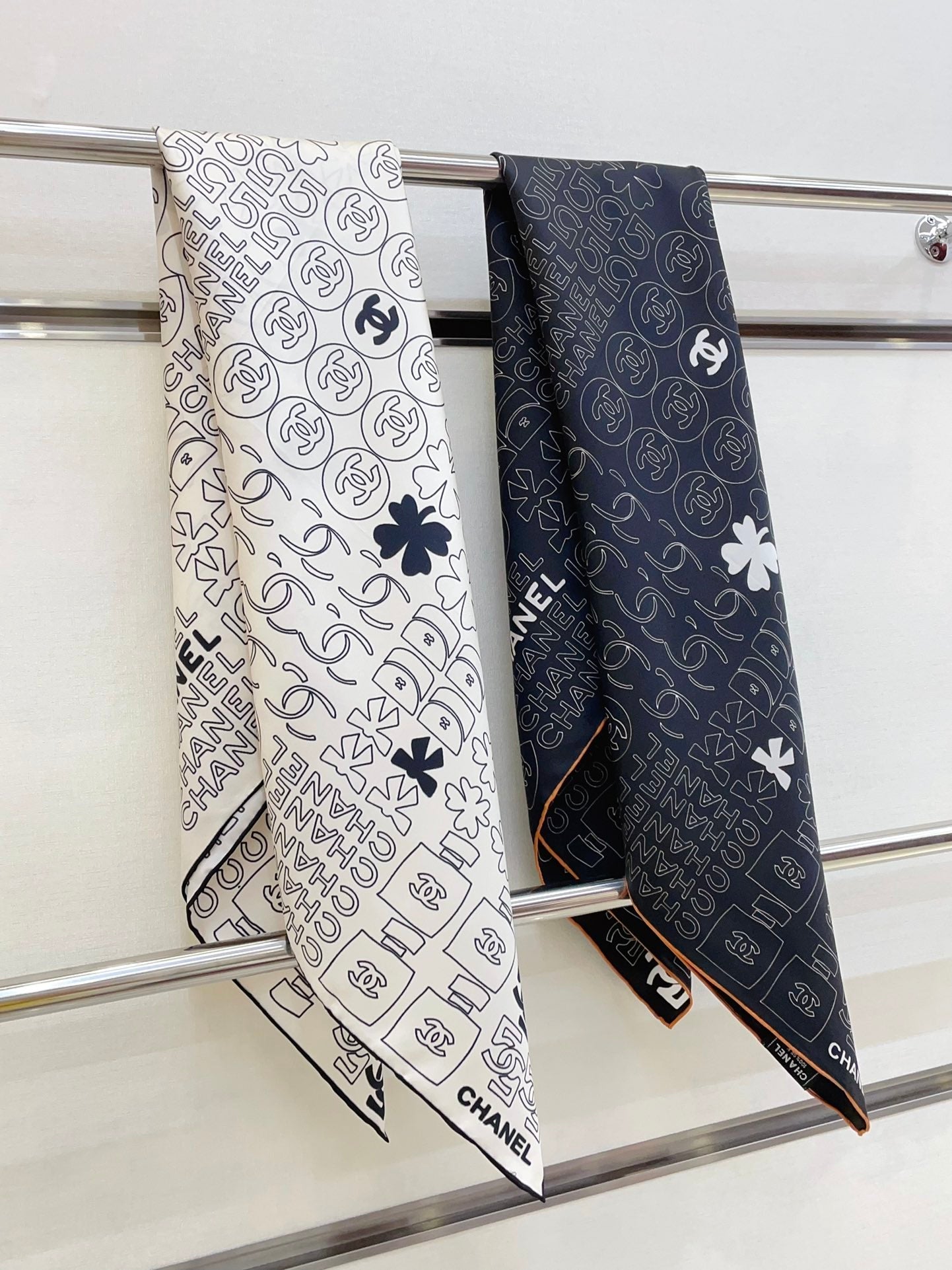 CC Square Scarf 90 CM In Black Mix White Cashmere Silk 316268
