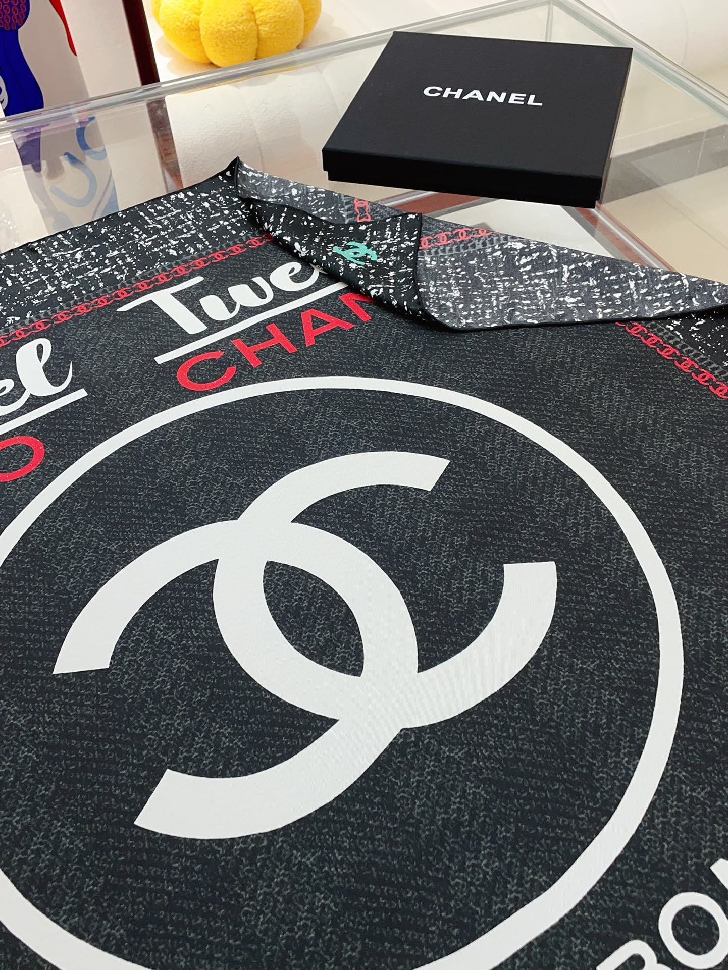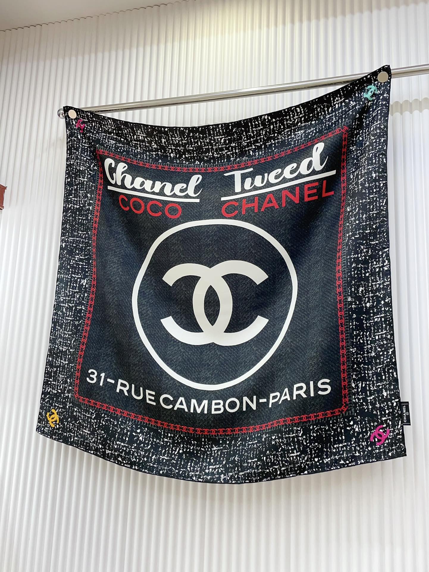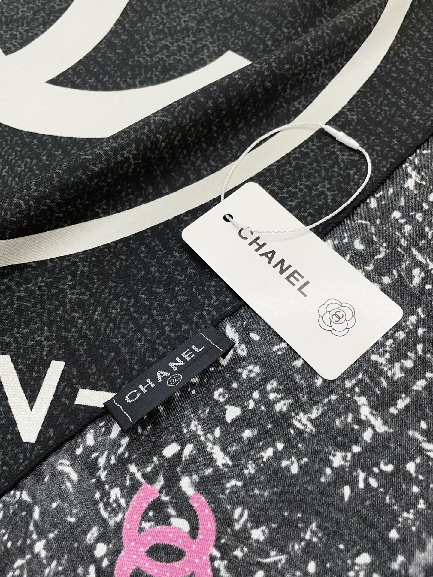 CC Square Scarf 90 CM In Black Mix White Red Cashmere Silk 172078