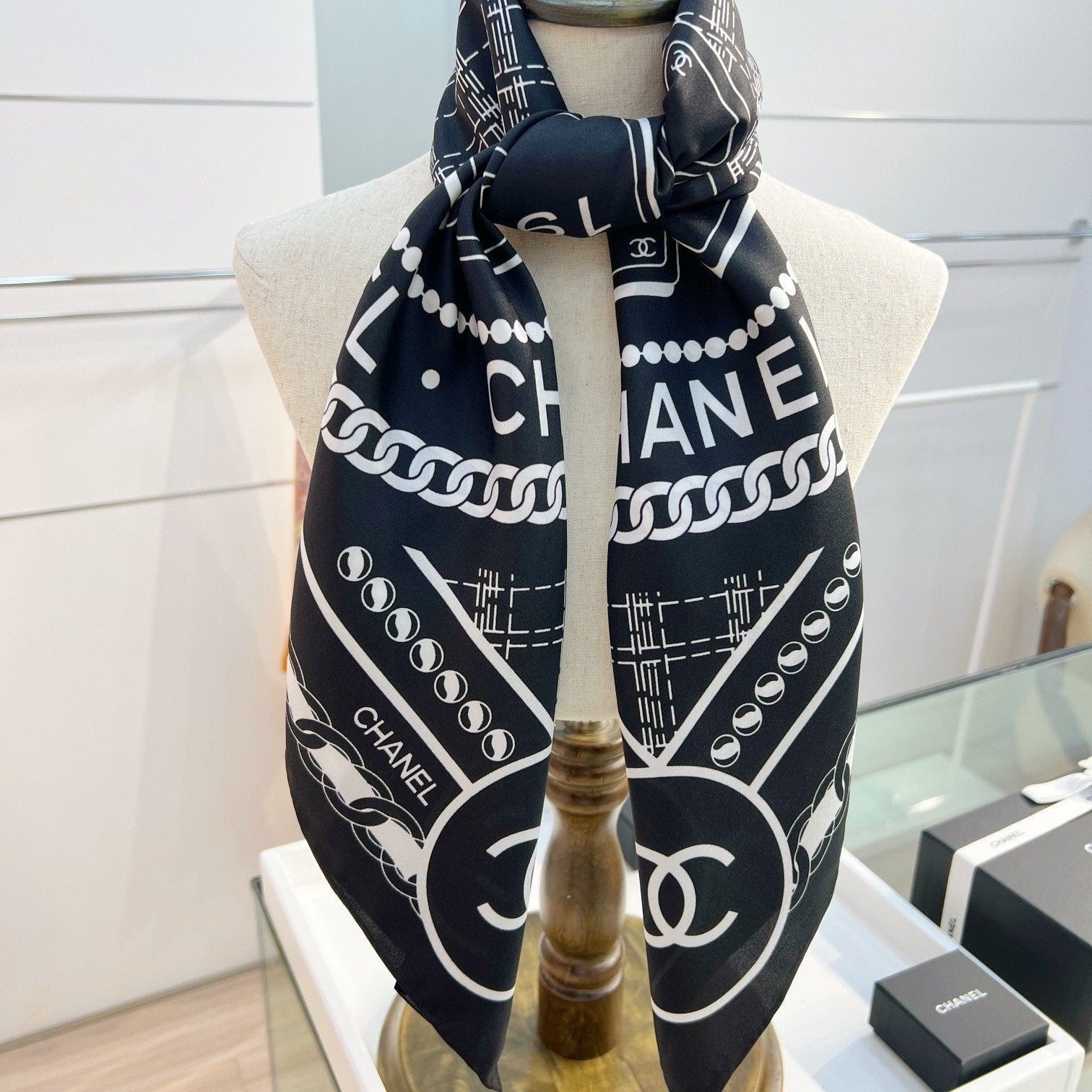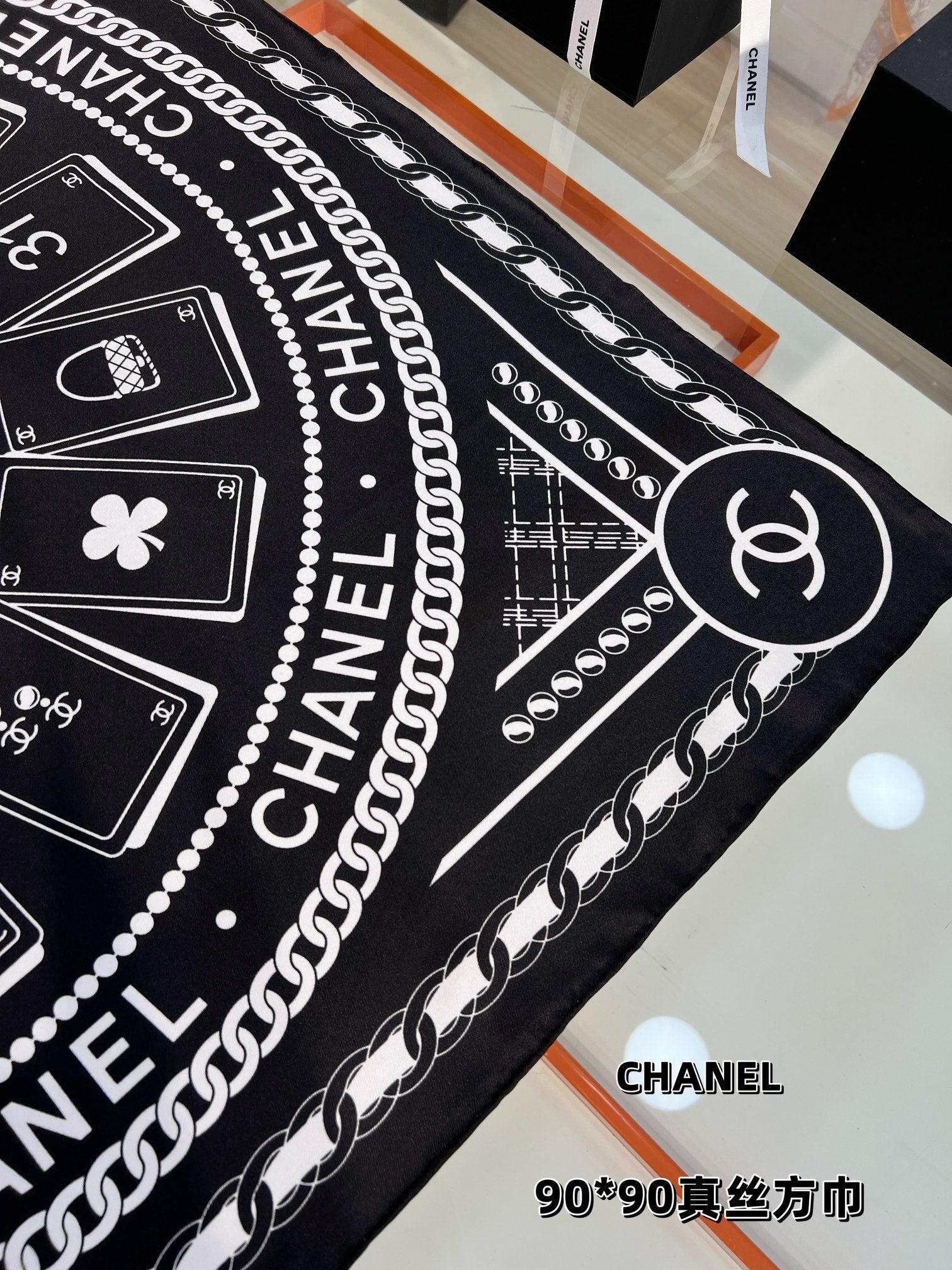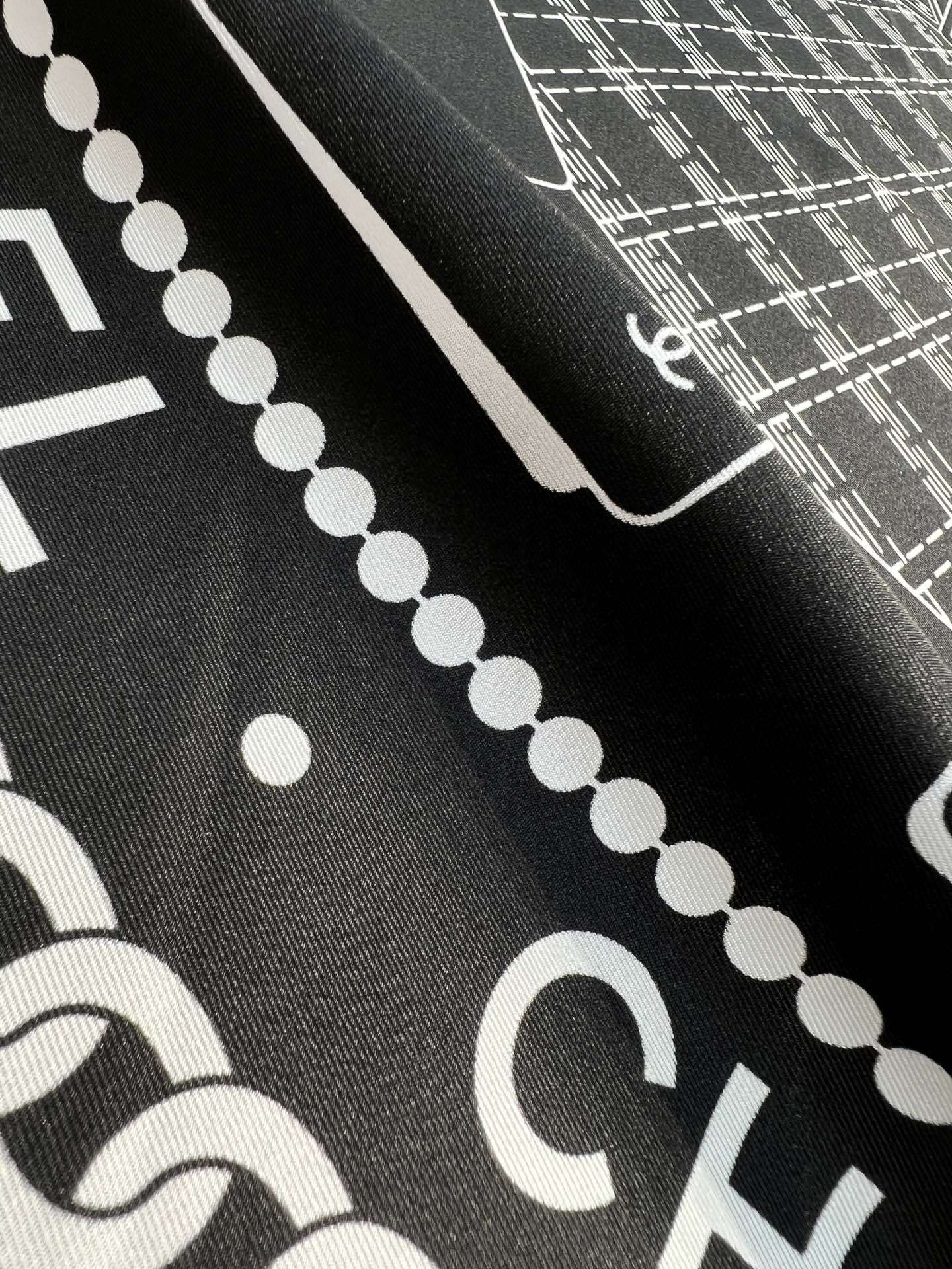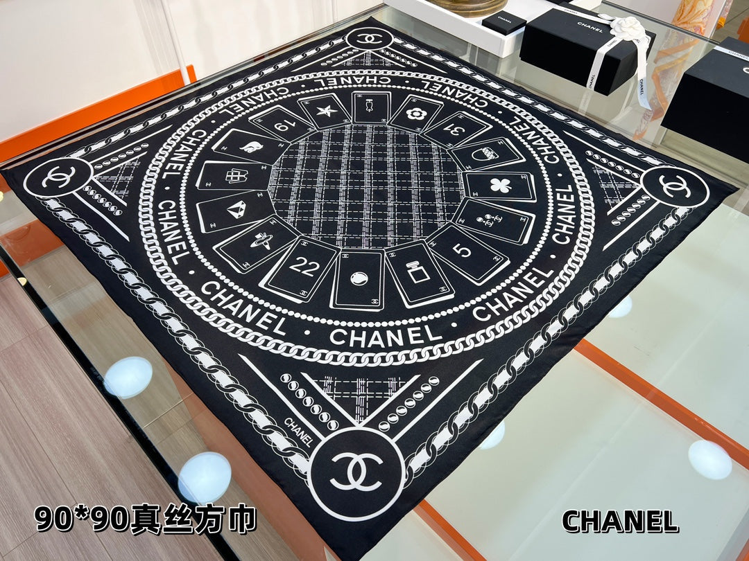 CC Square Scarf 90 CM In Black Mix White Silk 288728