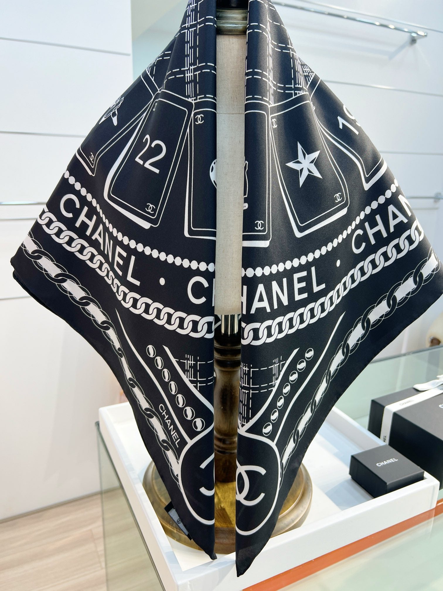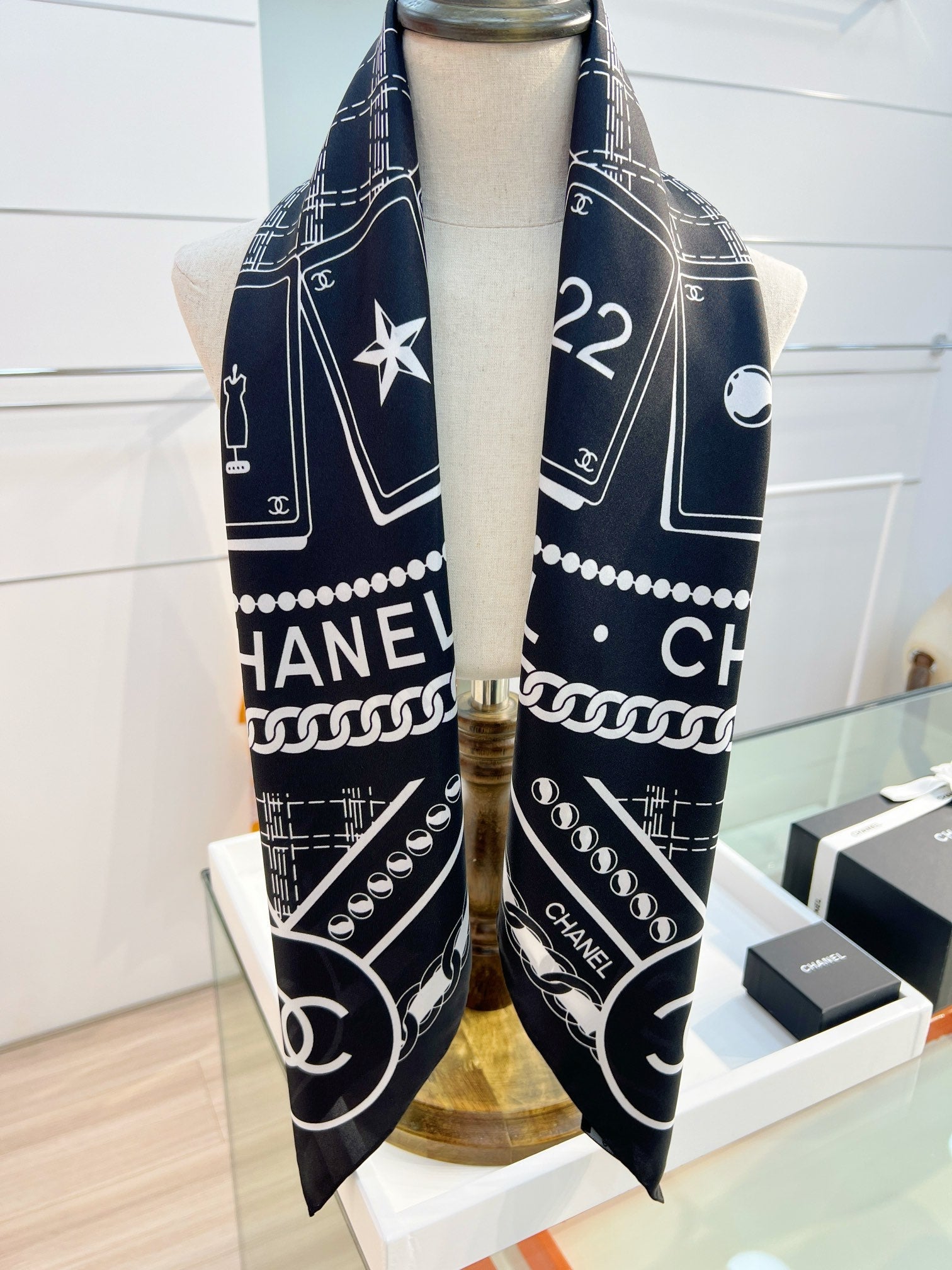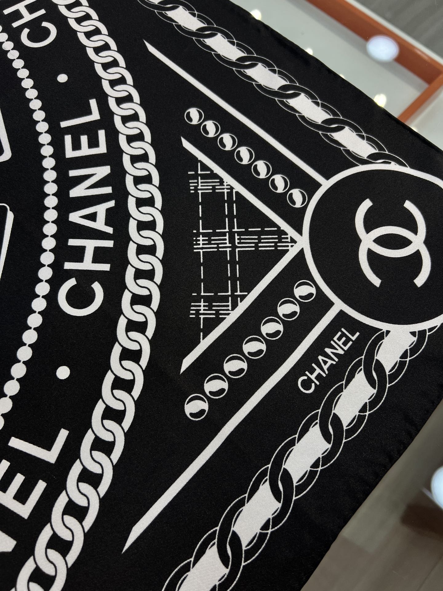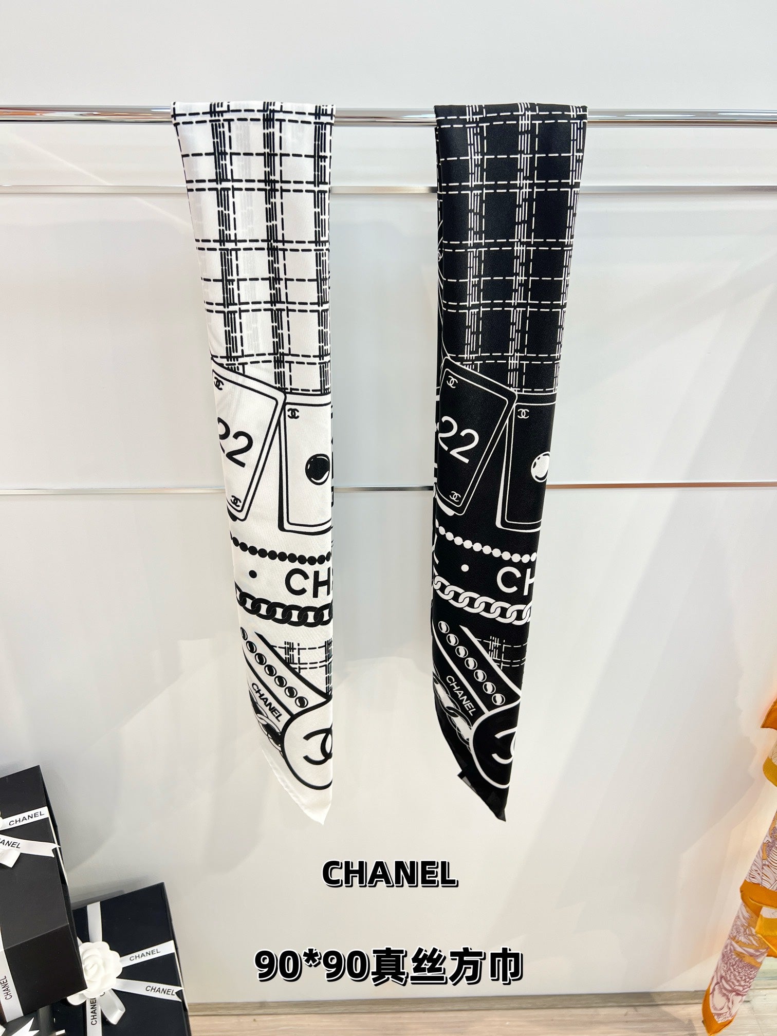 CC Square Scarf 90 CM In Black Mix White Silk 288728