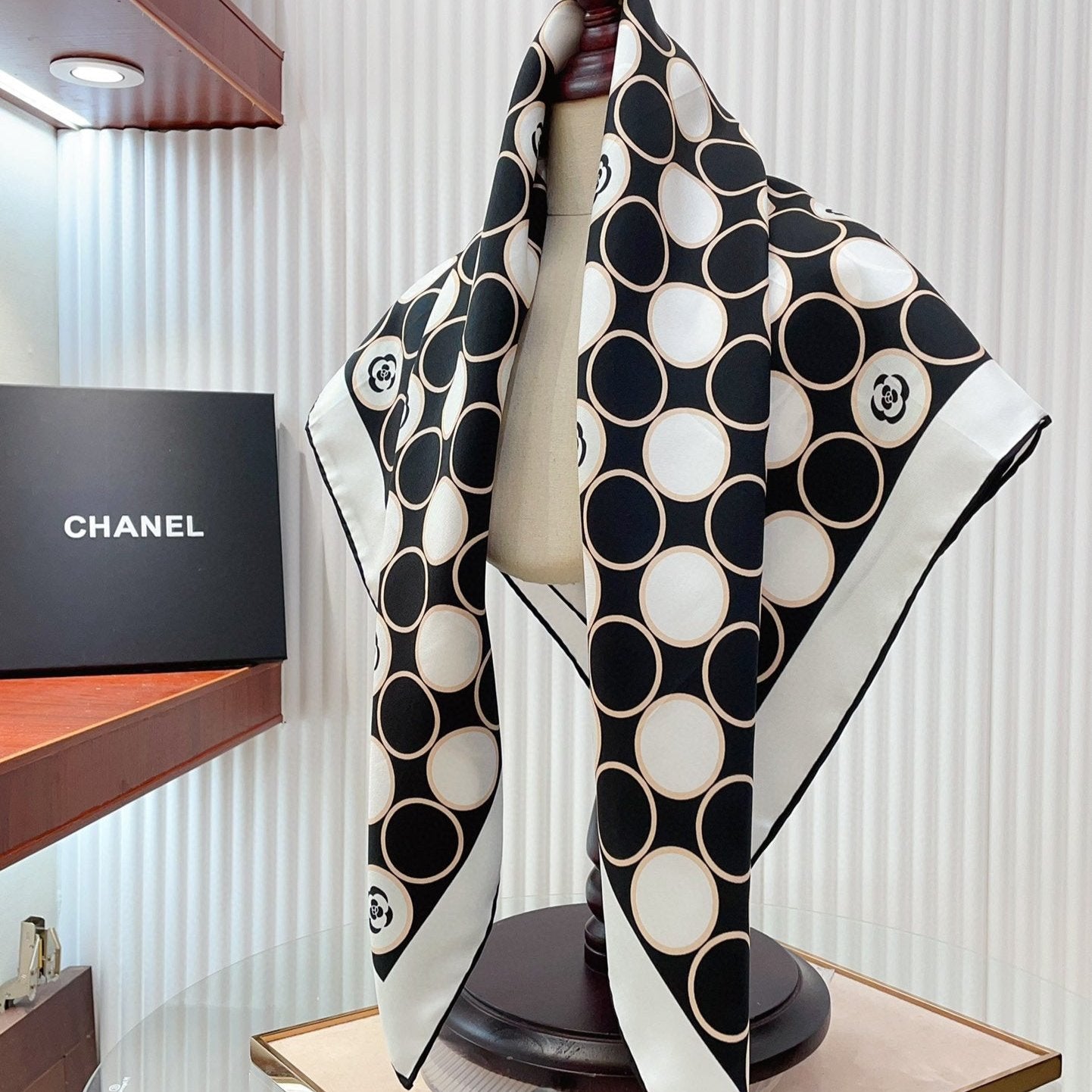 CC Square Scarf 90 CM In Black Mix White Silk Twill 350415