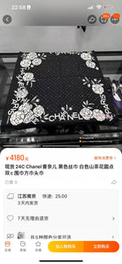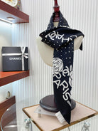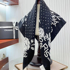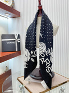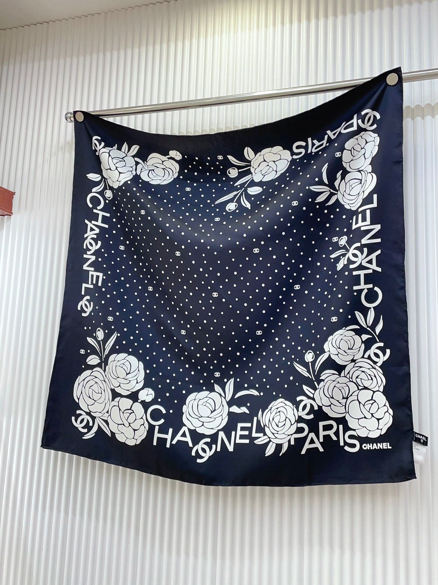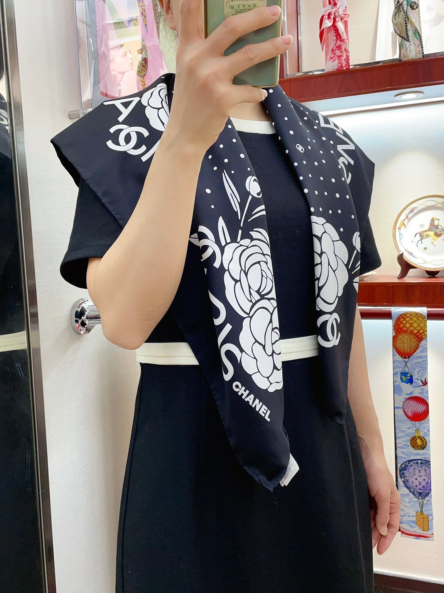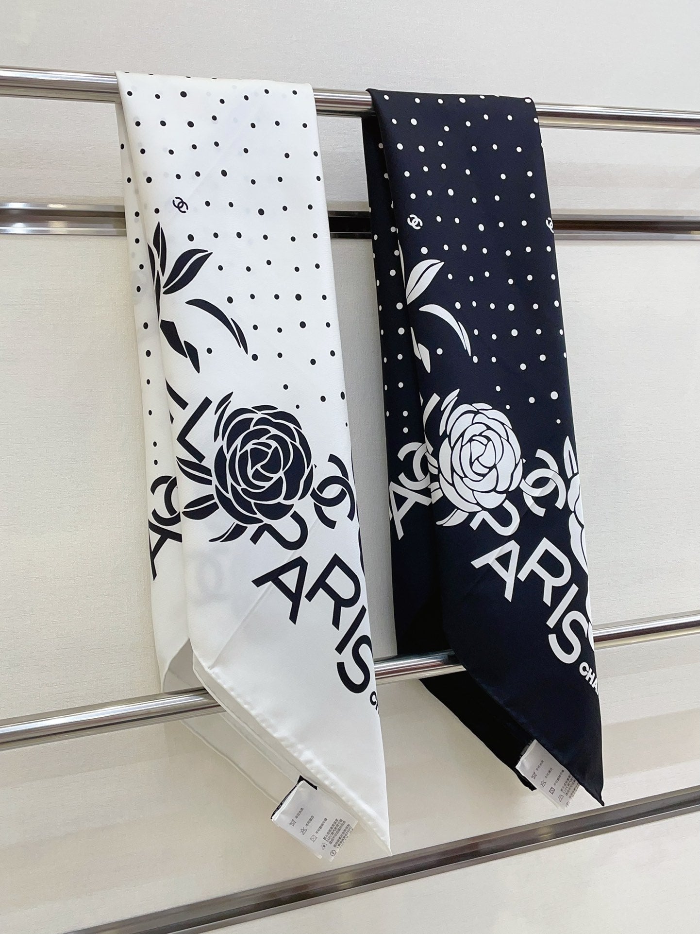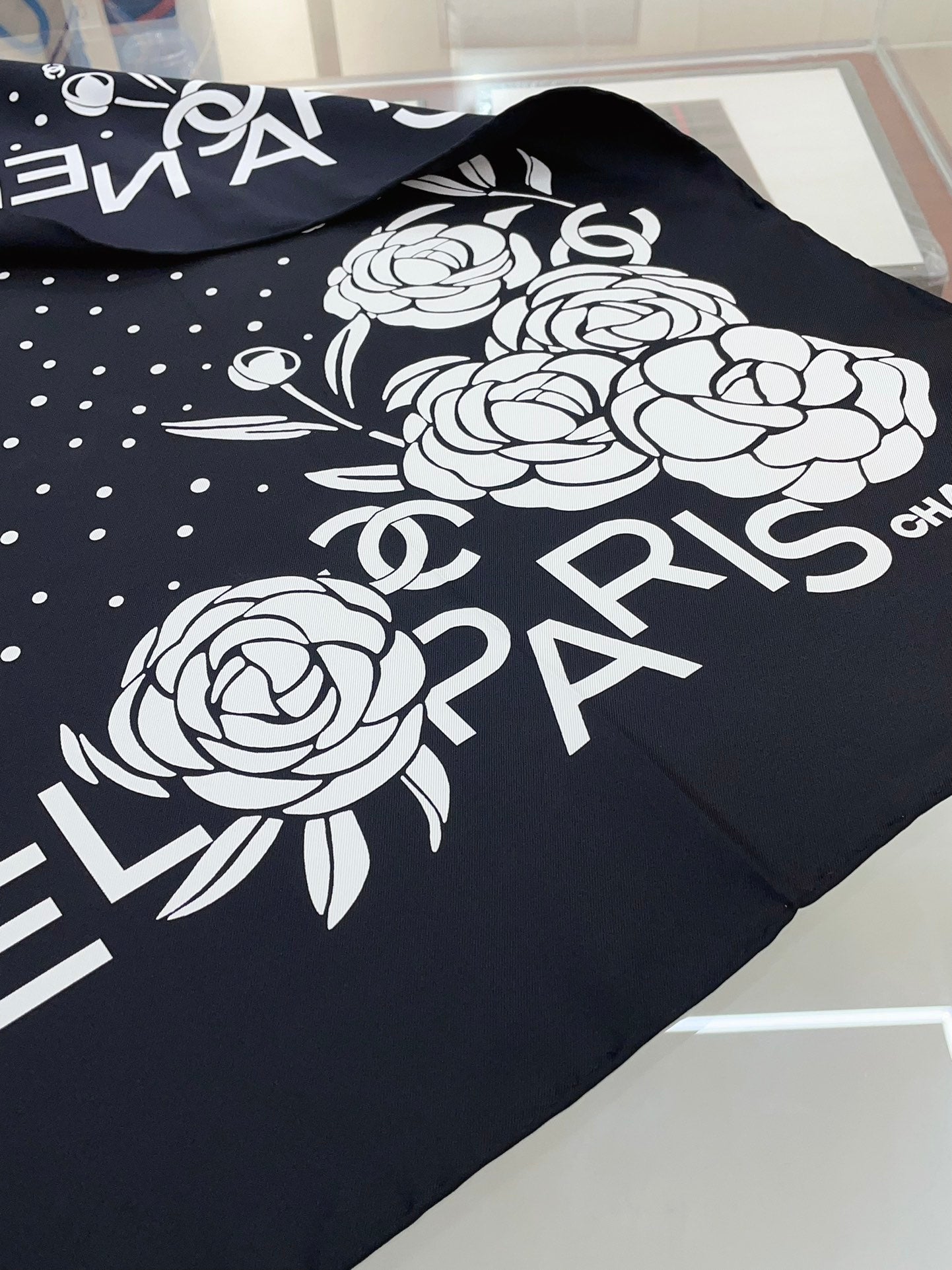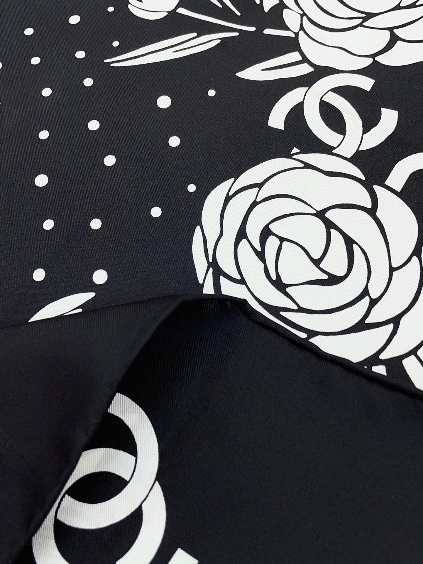 CC Square Scarf 90 CM In Black Polka Dot White Camellia Silk Twill 288723