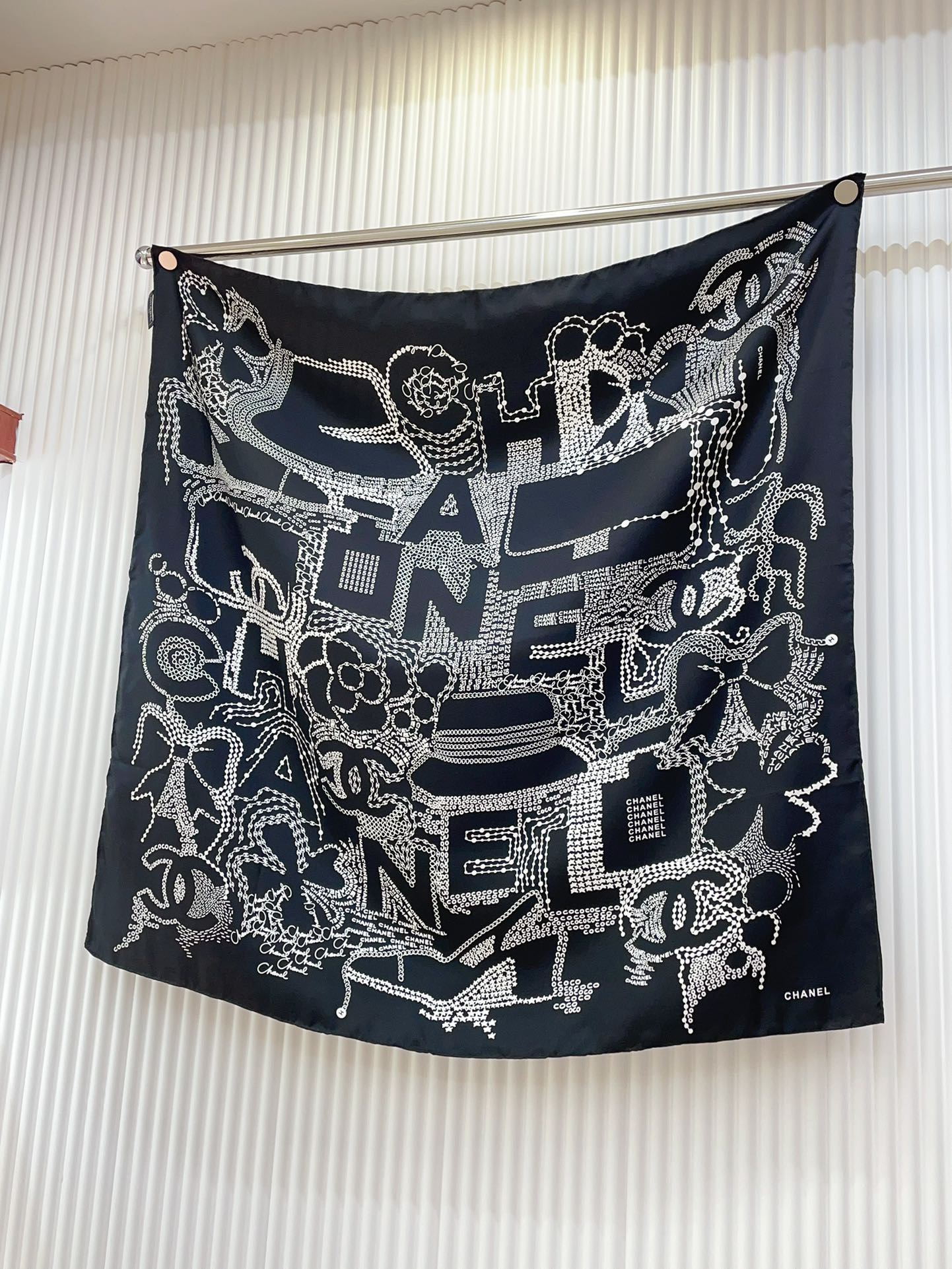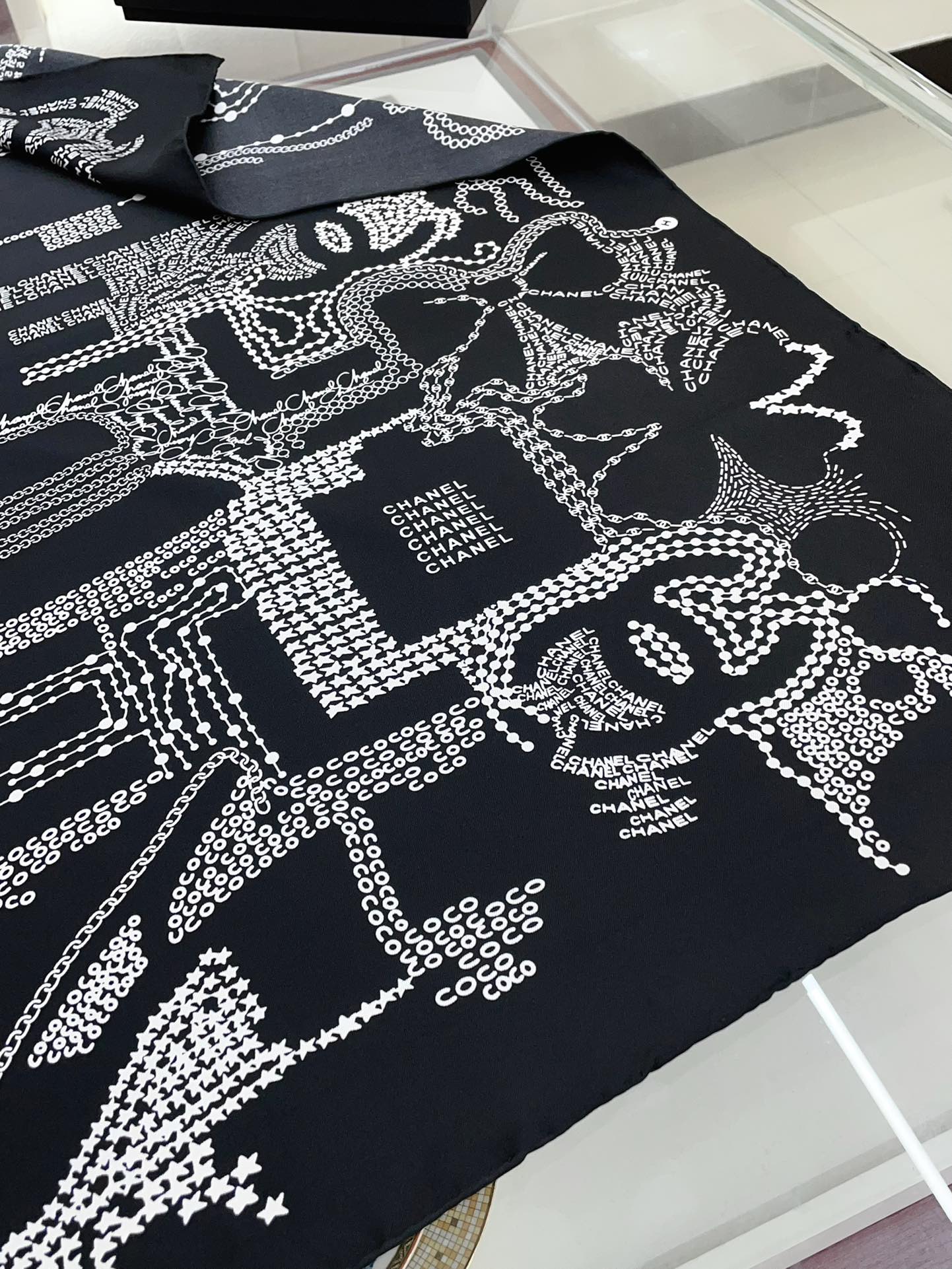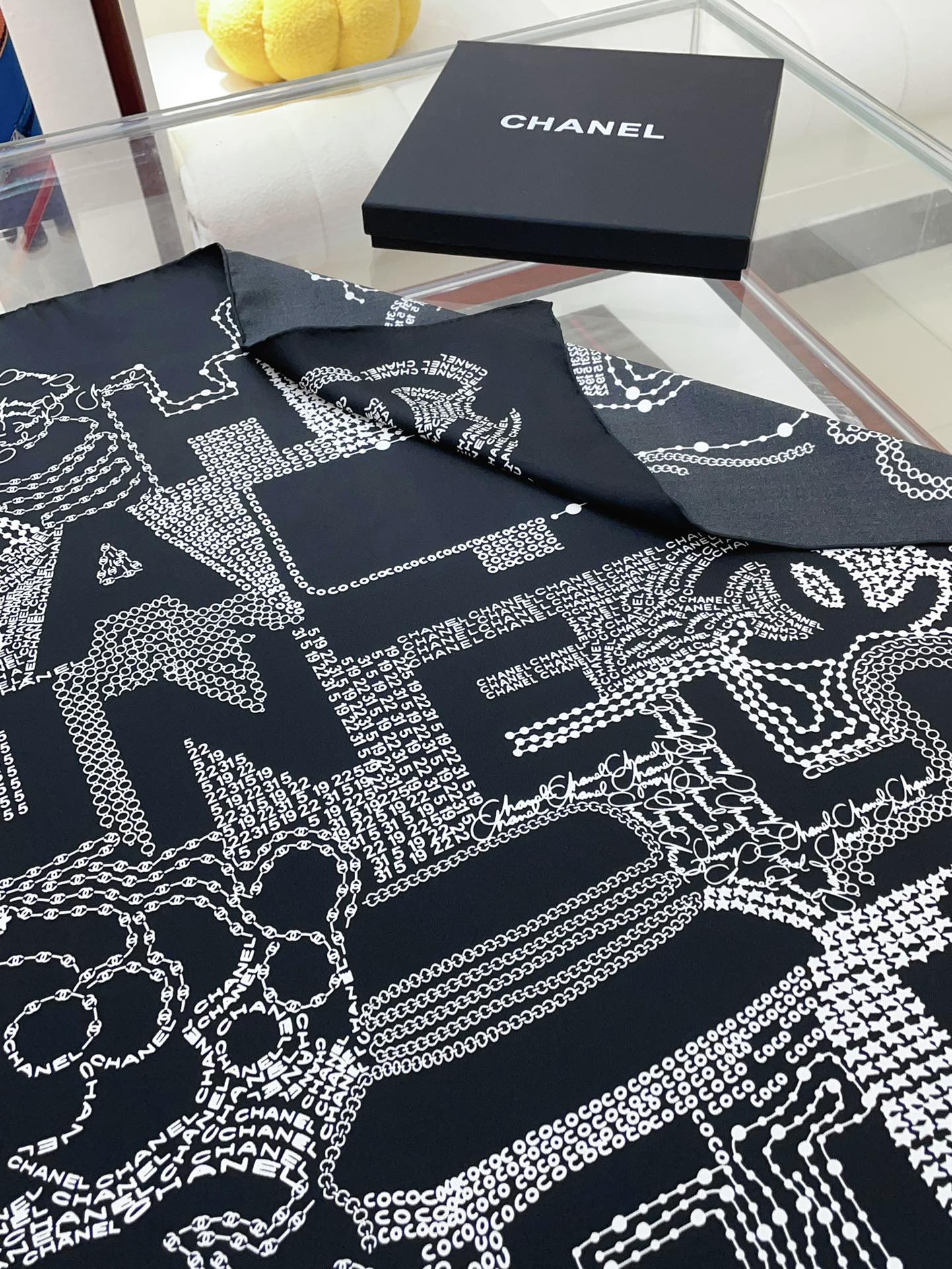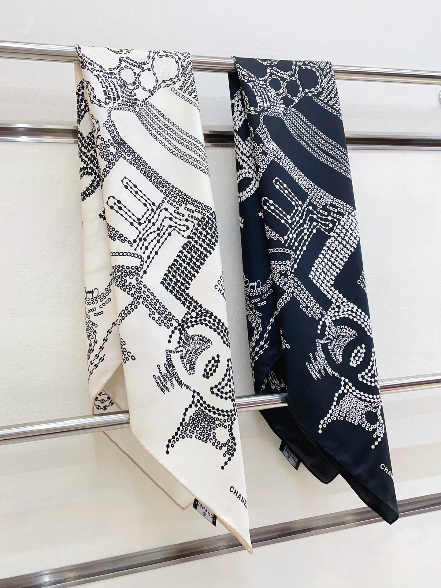 CC Square Scarf 90 CM In Black White Silk Twill 198570