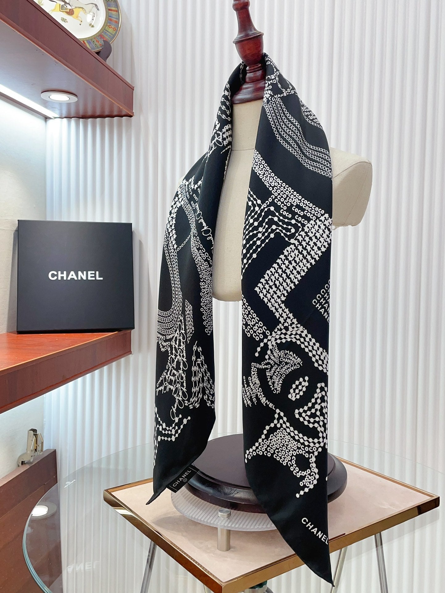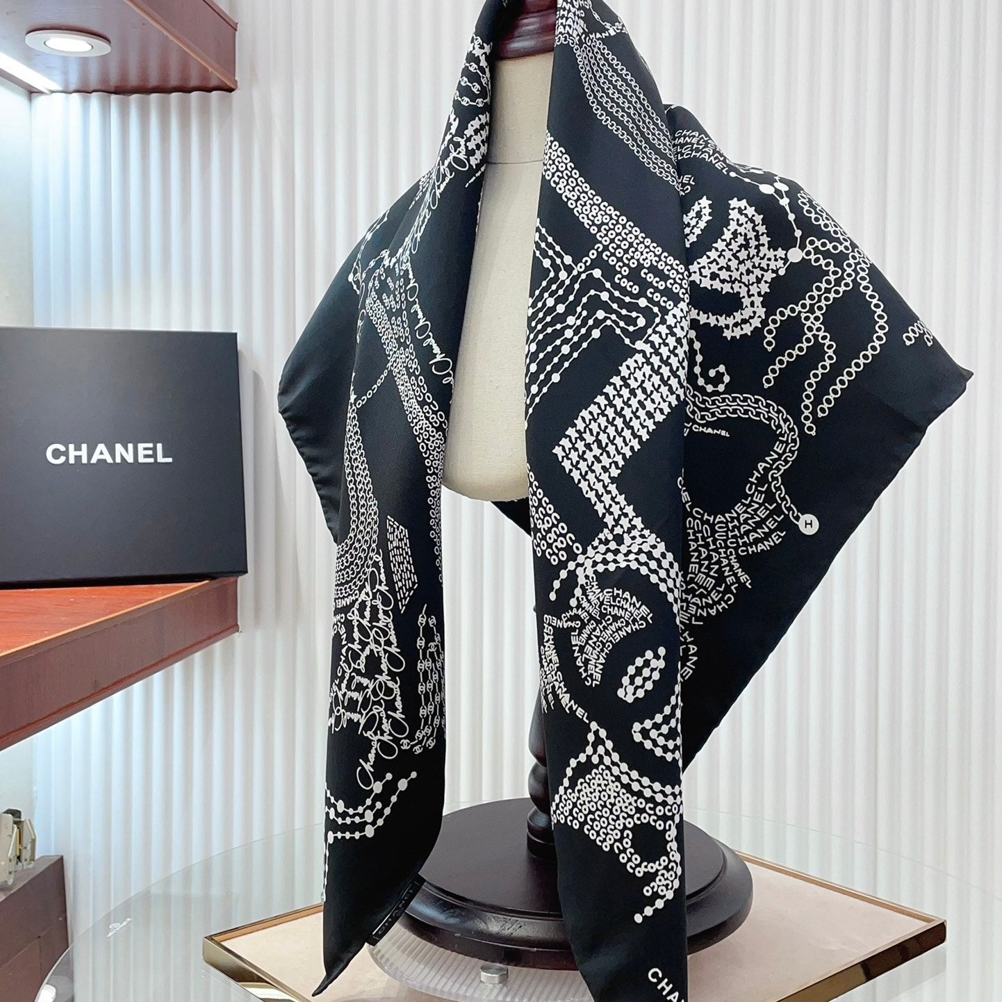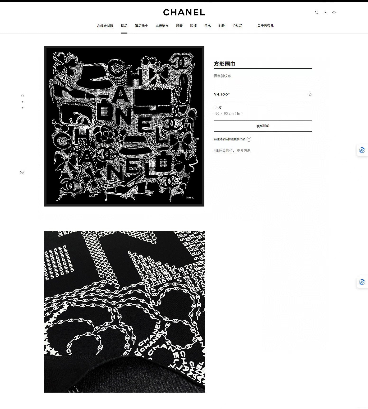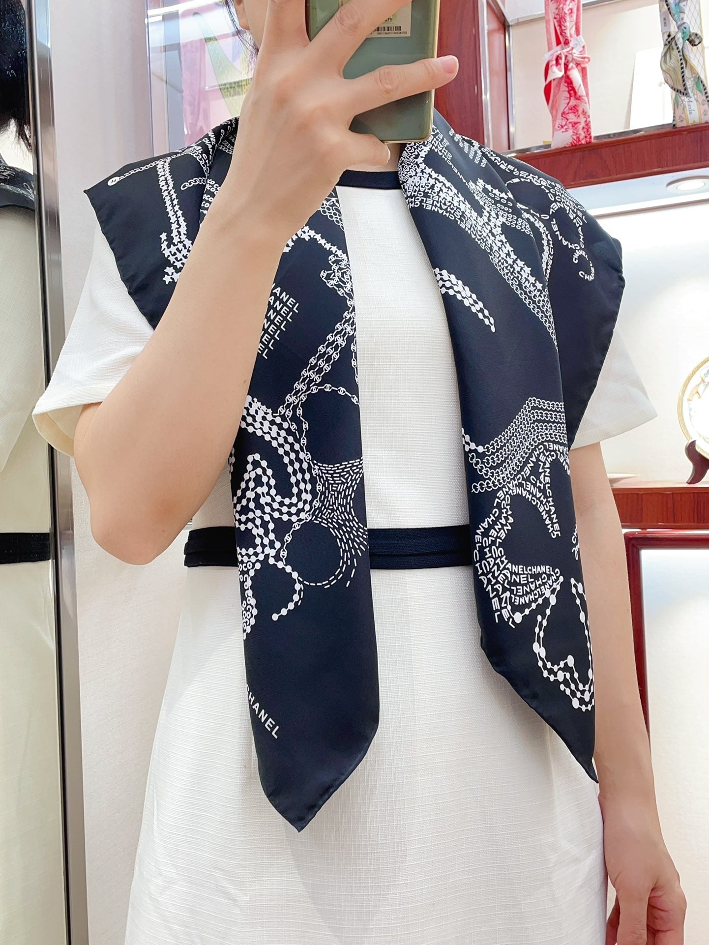 CC Square Scarf 90 CM In Black White Silk Twill 198570