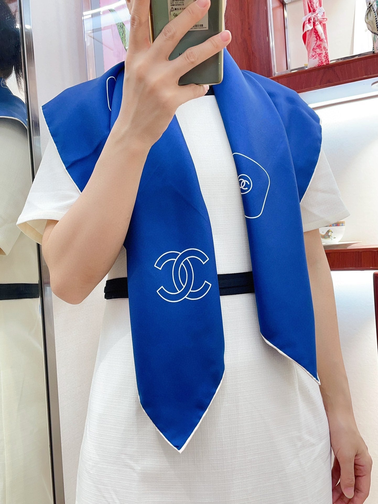 CC Square Scarf 90 CM In Blue Silk Twill 201029