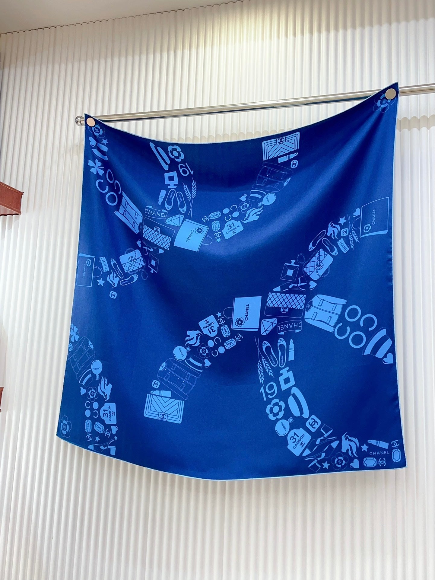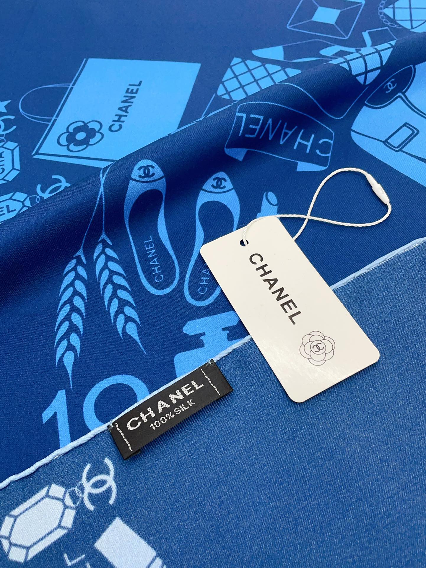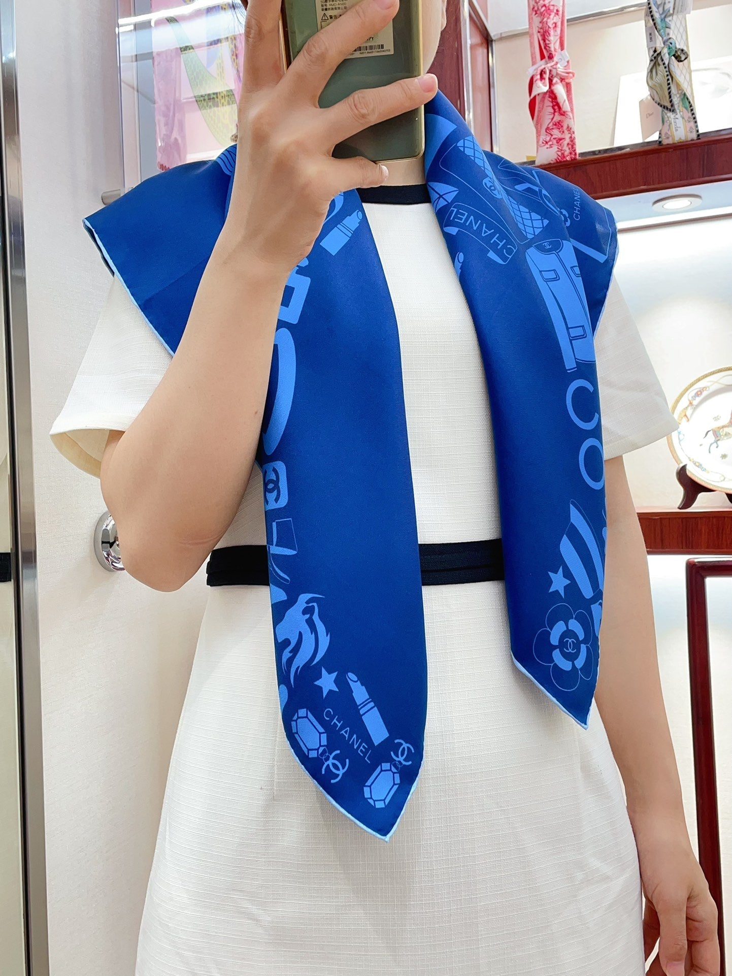 CC Square Scarf 90 CM In Blue Silk Twill 211102