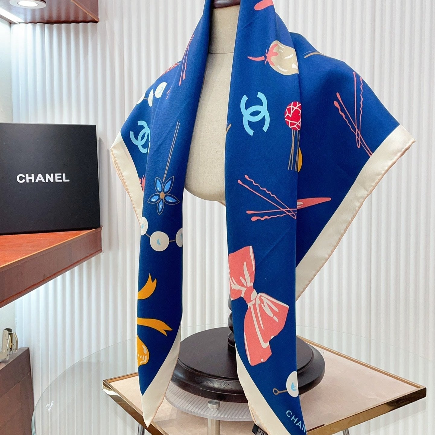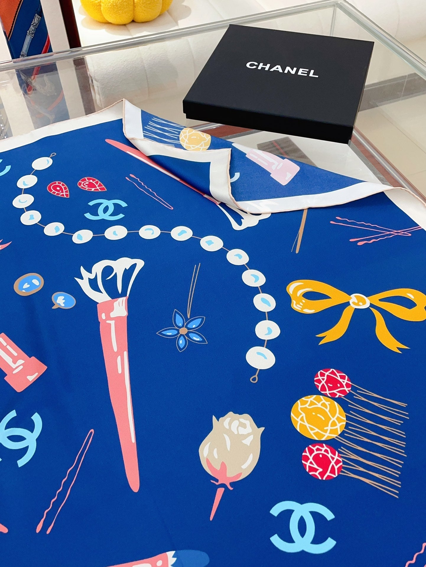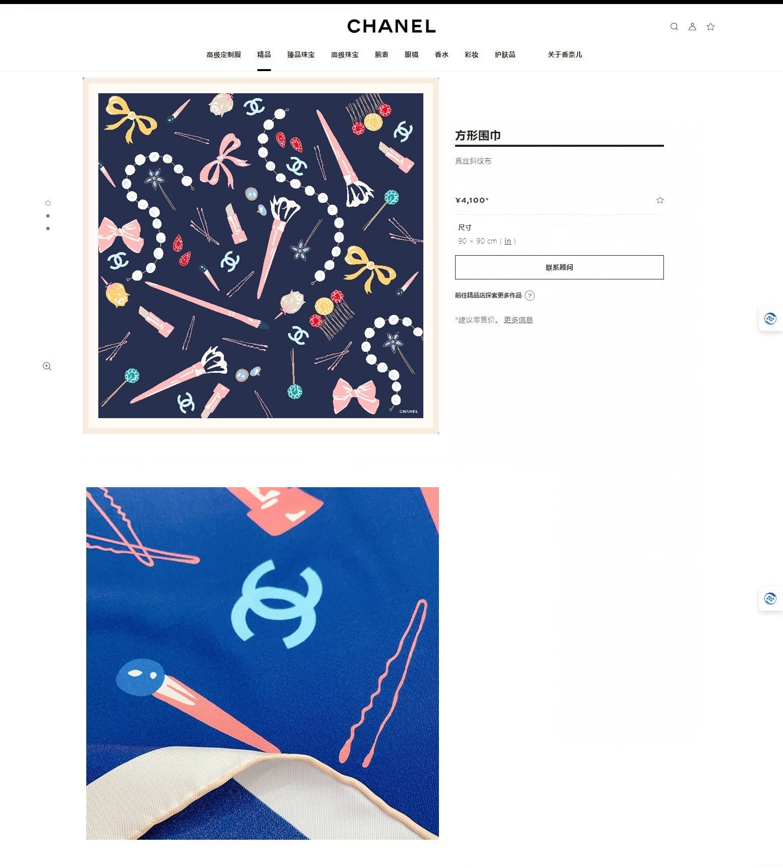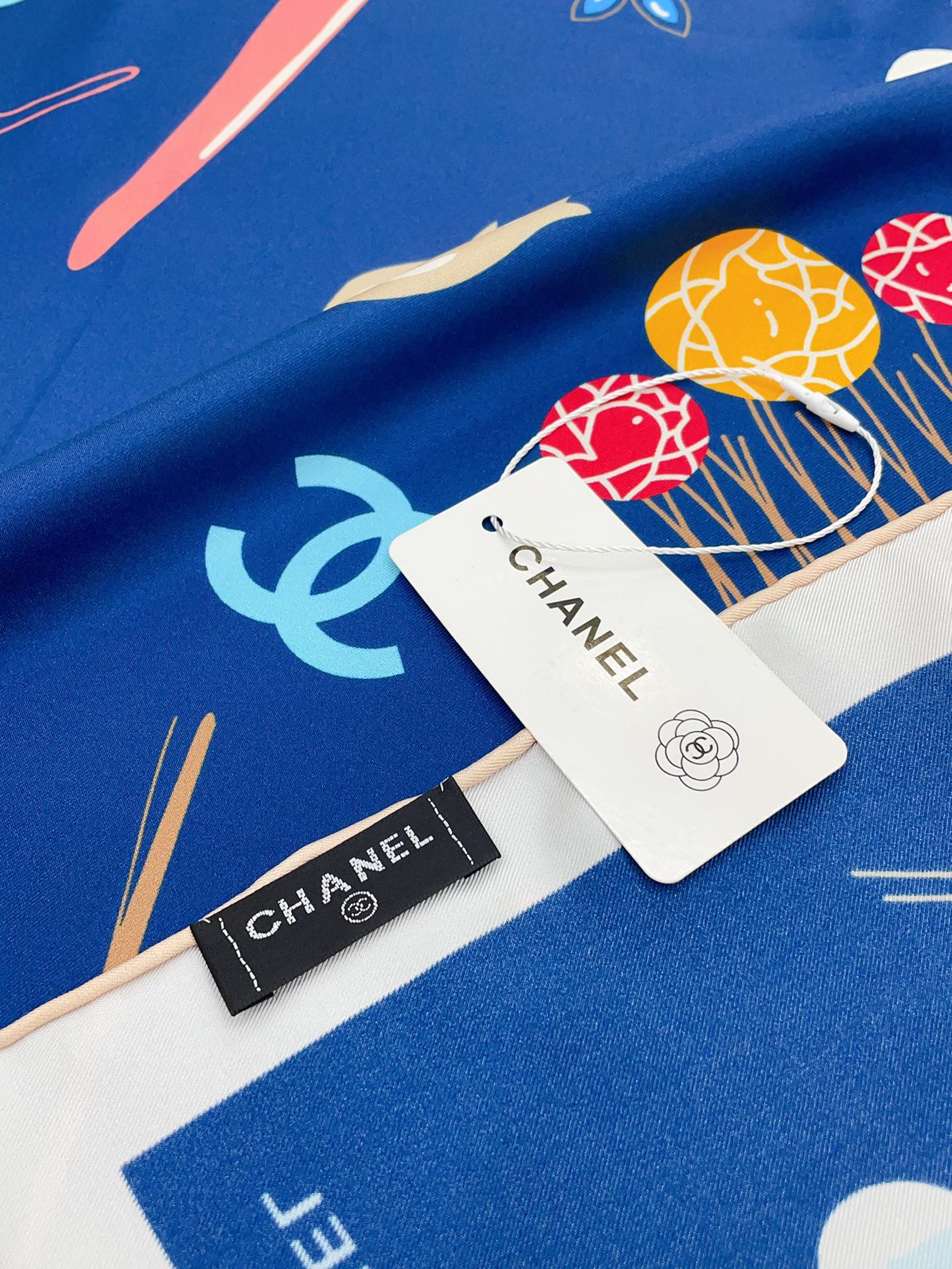 CC Square Scarf 90 CM In Dark Blue Colorful Silk Twill 213690