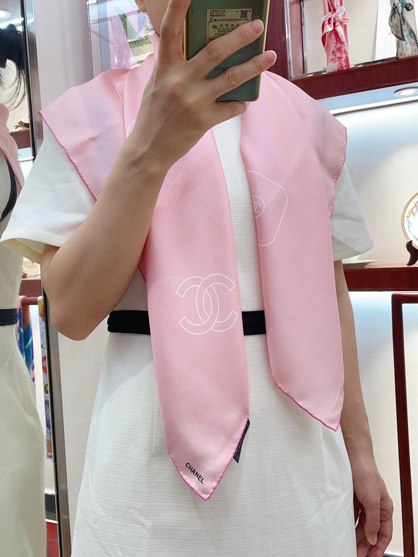 CC Square Scarf 90 CM In Pink Silk Twill 335844