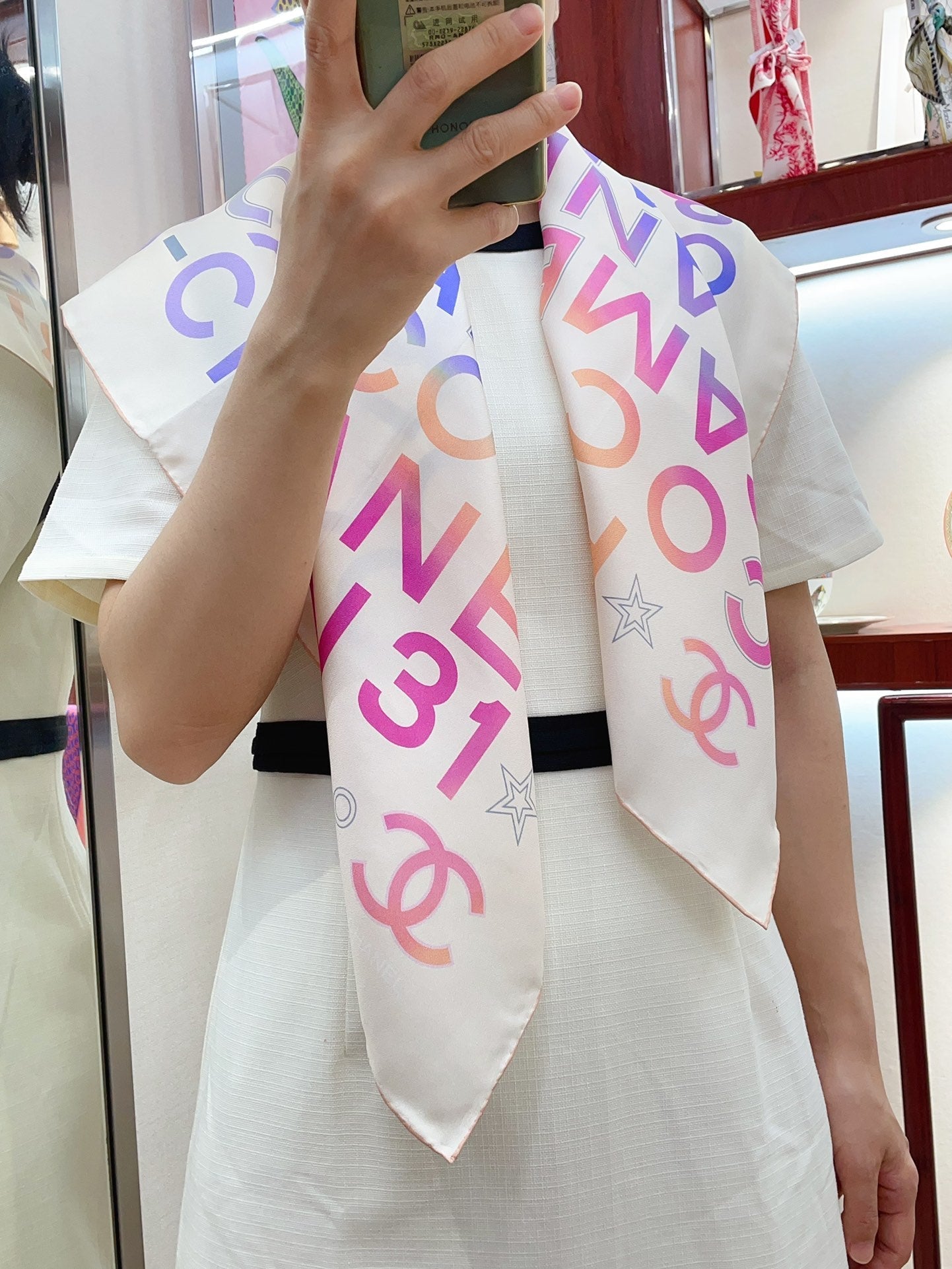 CC Square Scarf 90 CM In White Colorful Silk Twill 174877