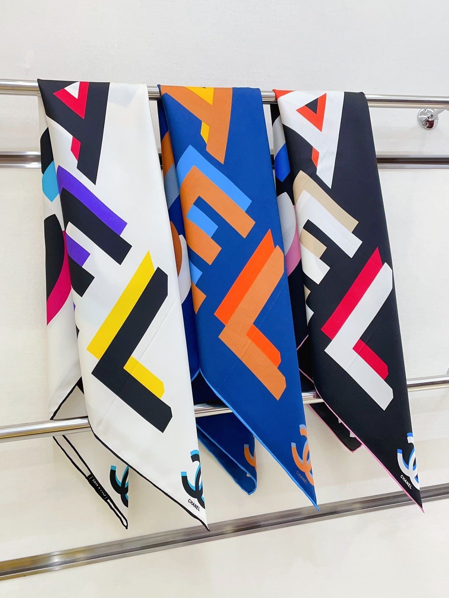 CC Square Scarf 90 CM In White Colorful Silk Twill 206467