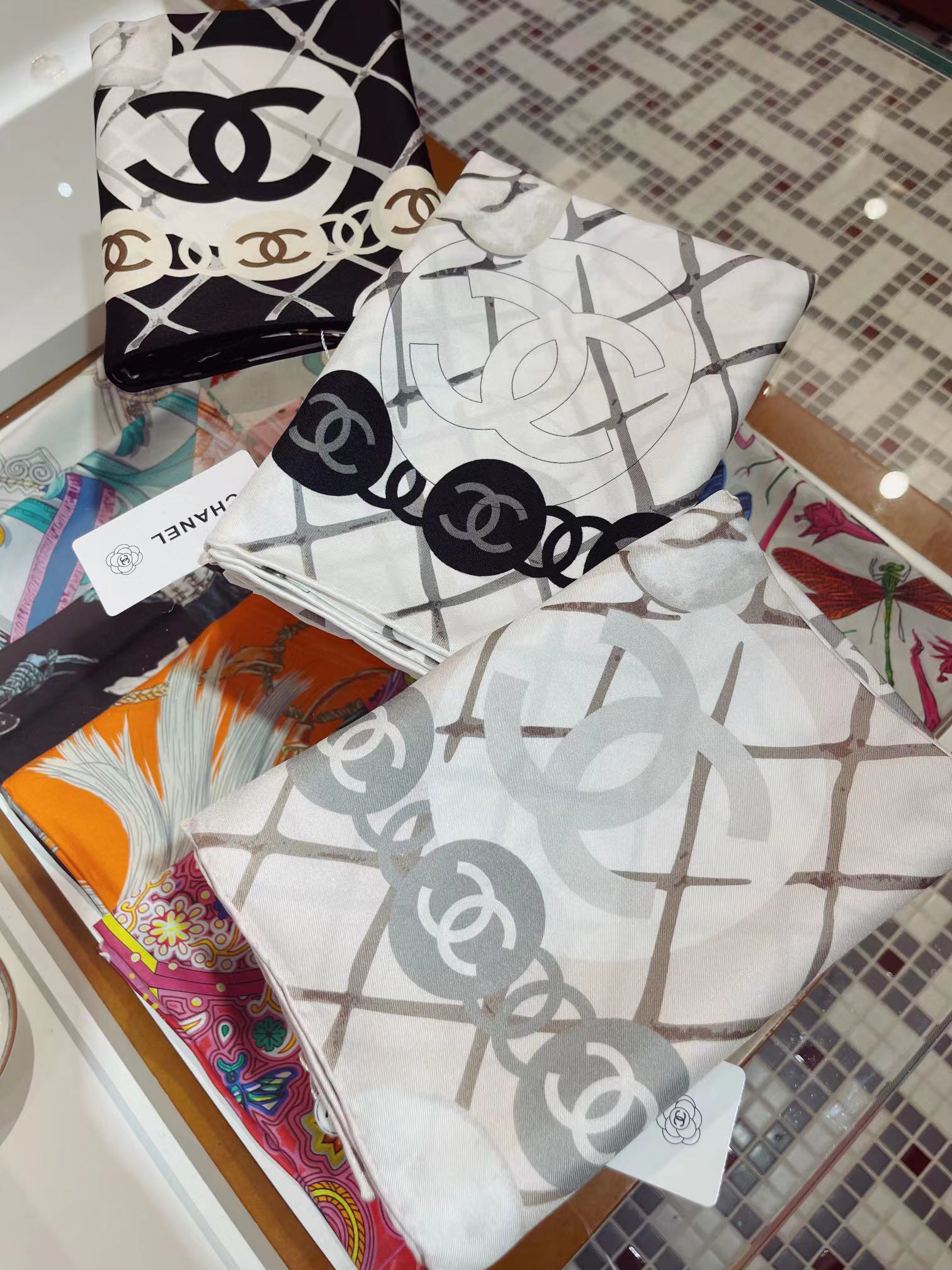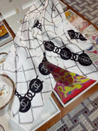 CC Square Scarf 90 CM In White Mix Black Camellia Print Silk Twill 288688