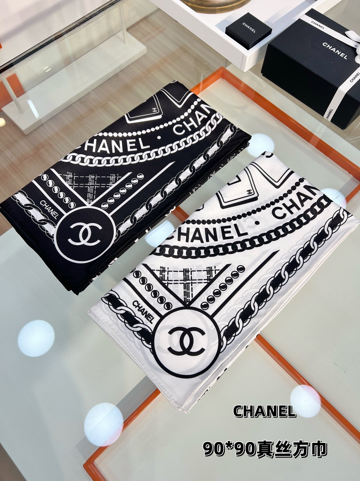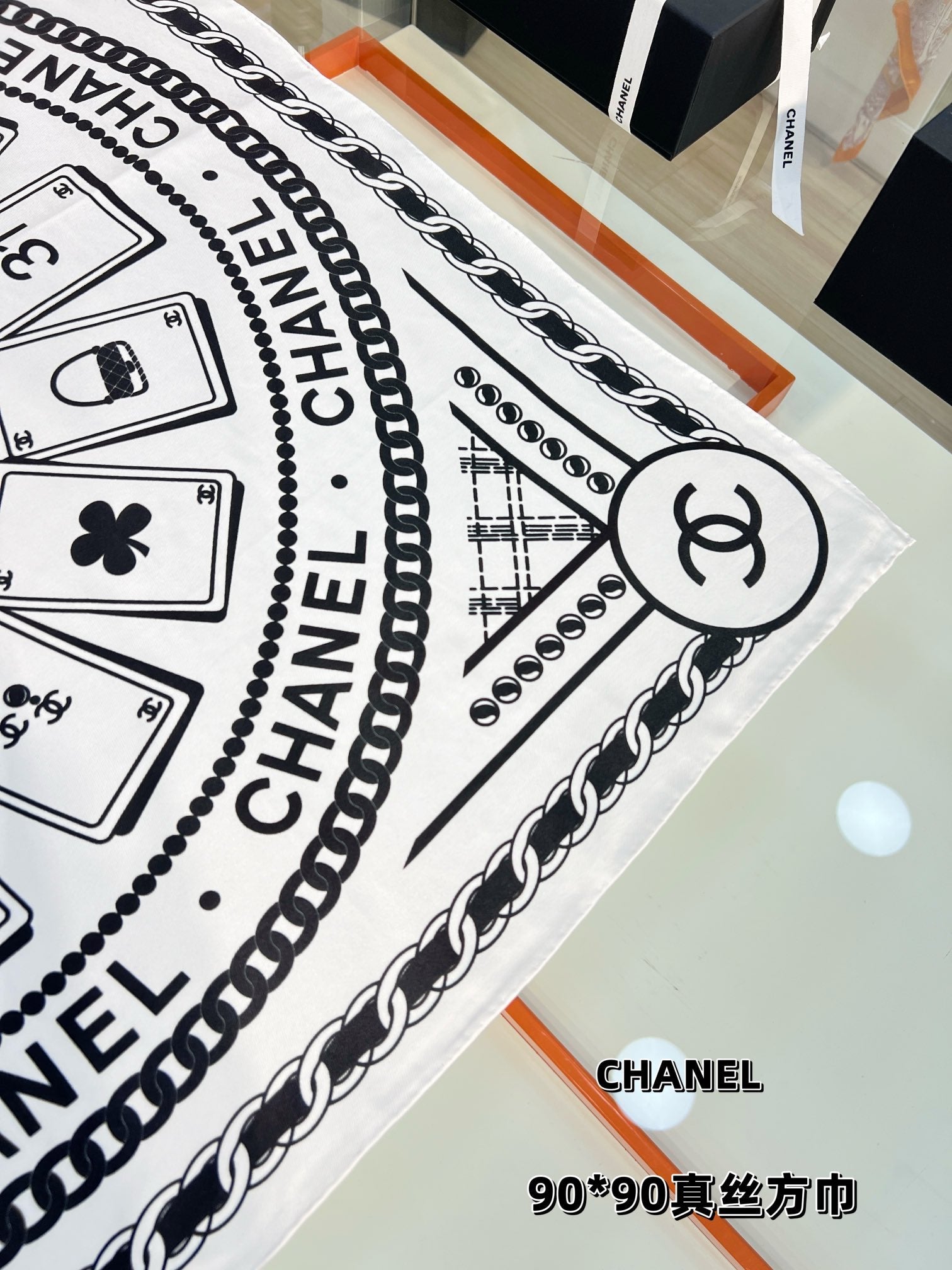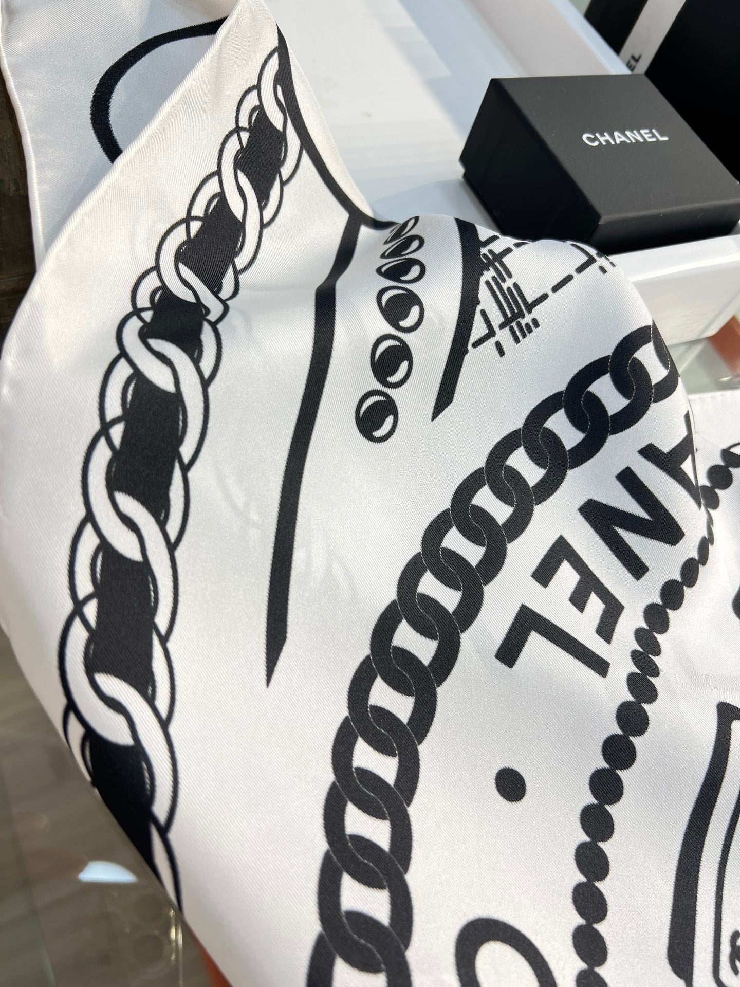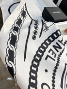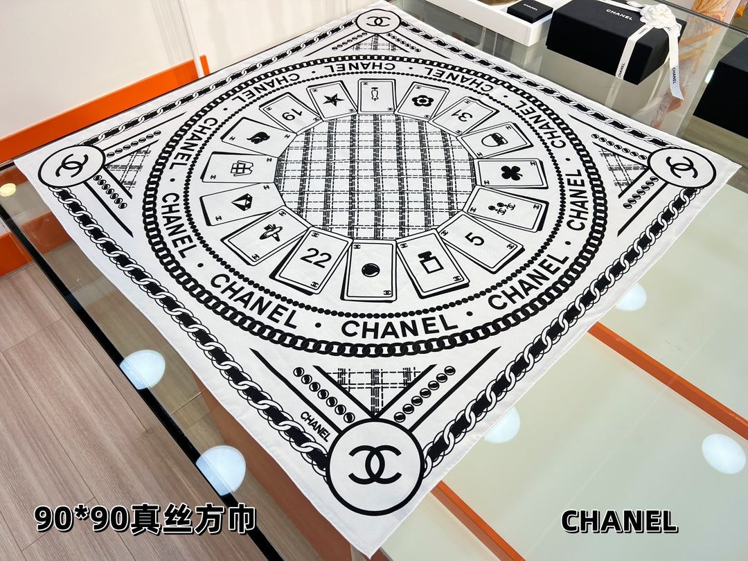 CC Square Scarf 90 CM In White Mix Black Silk 288727