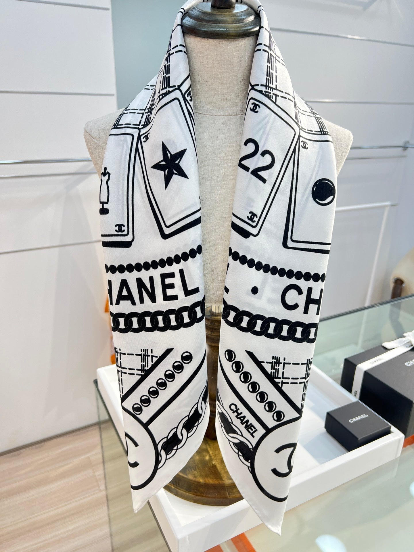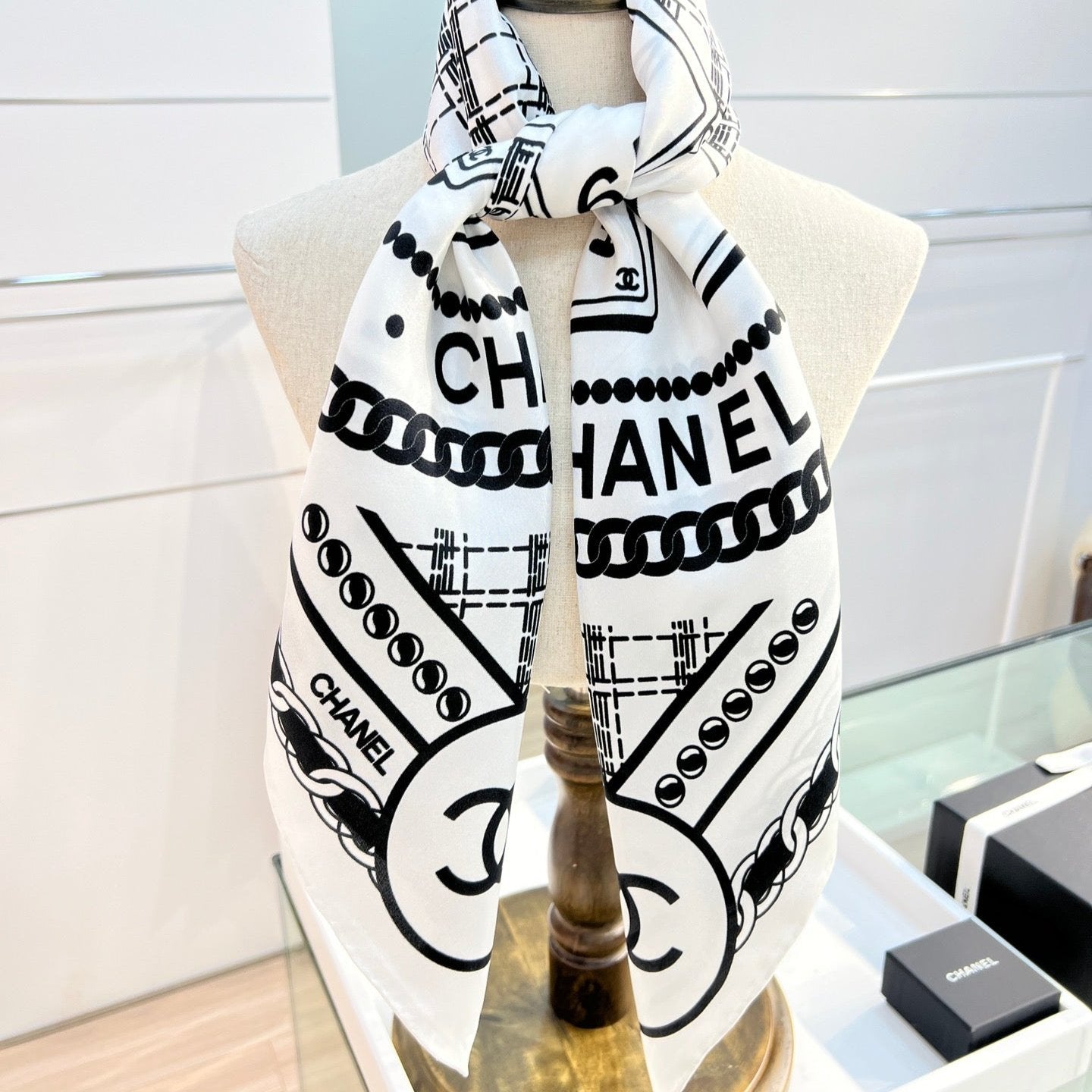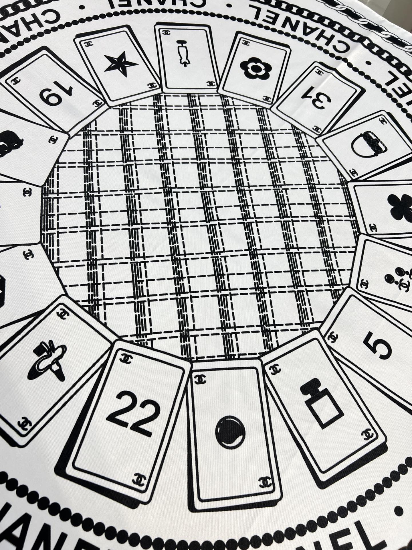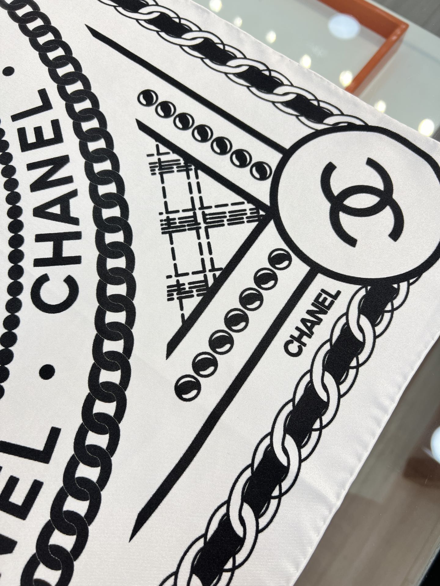 CC Square Scarf 90 CM In White Mix Black Silk 288727