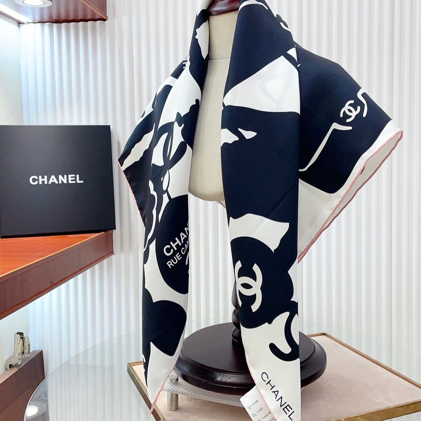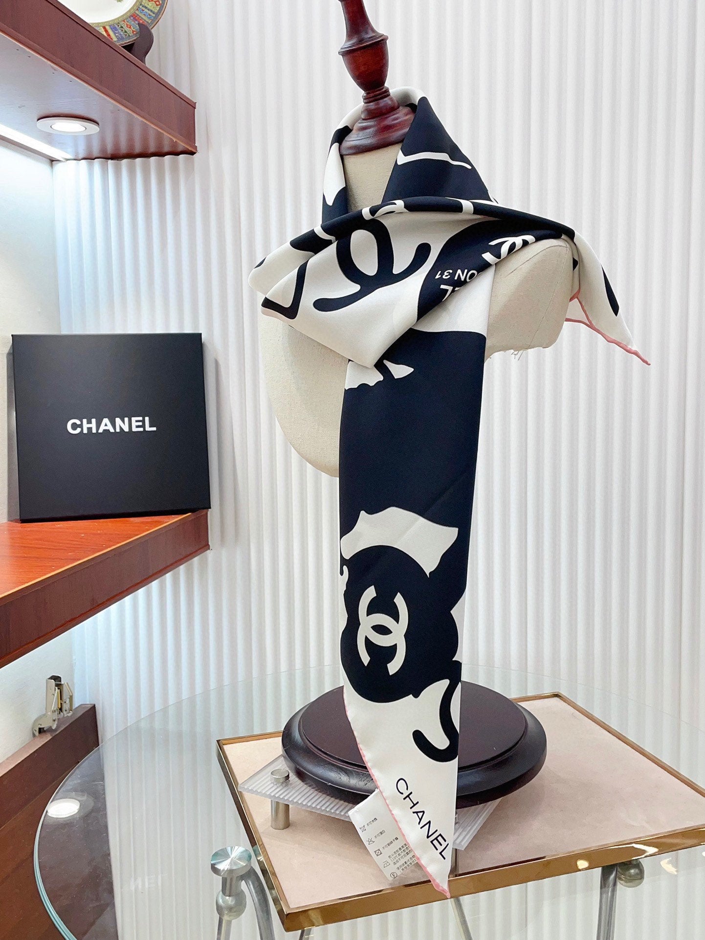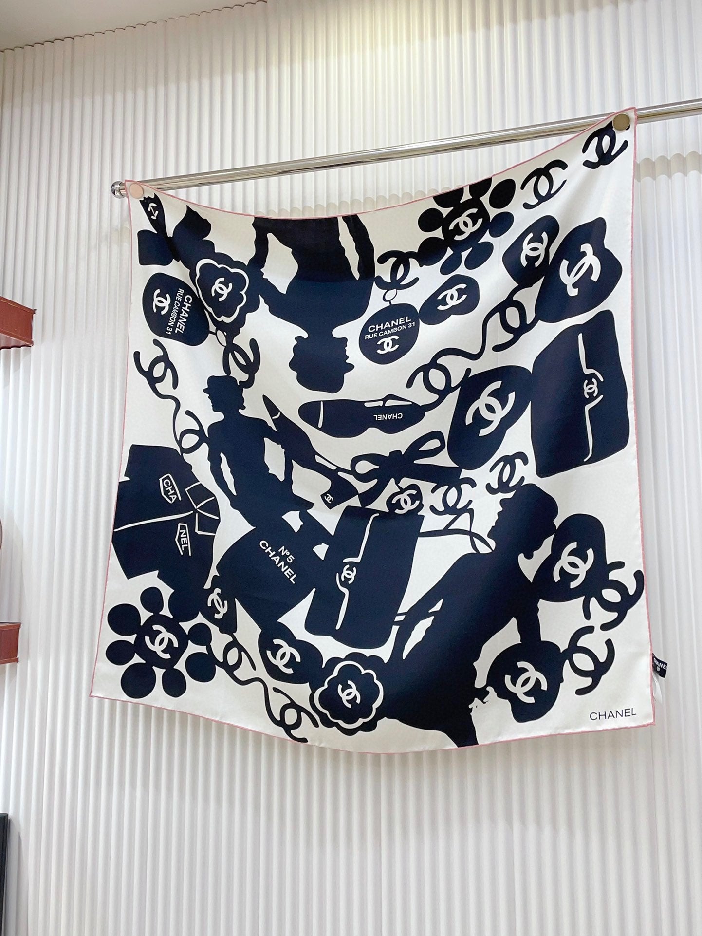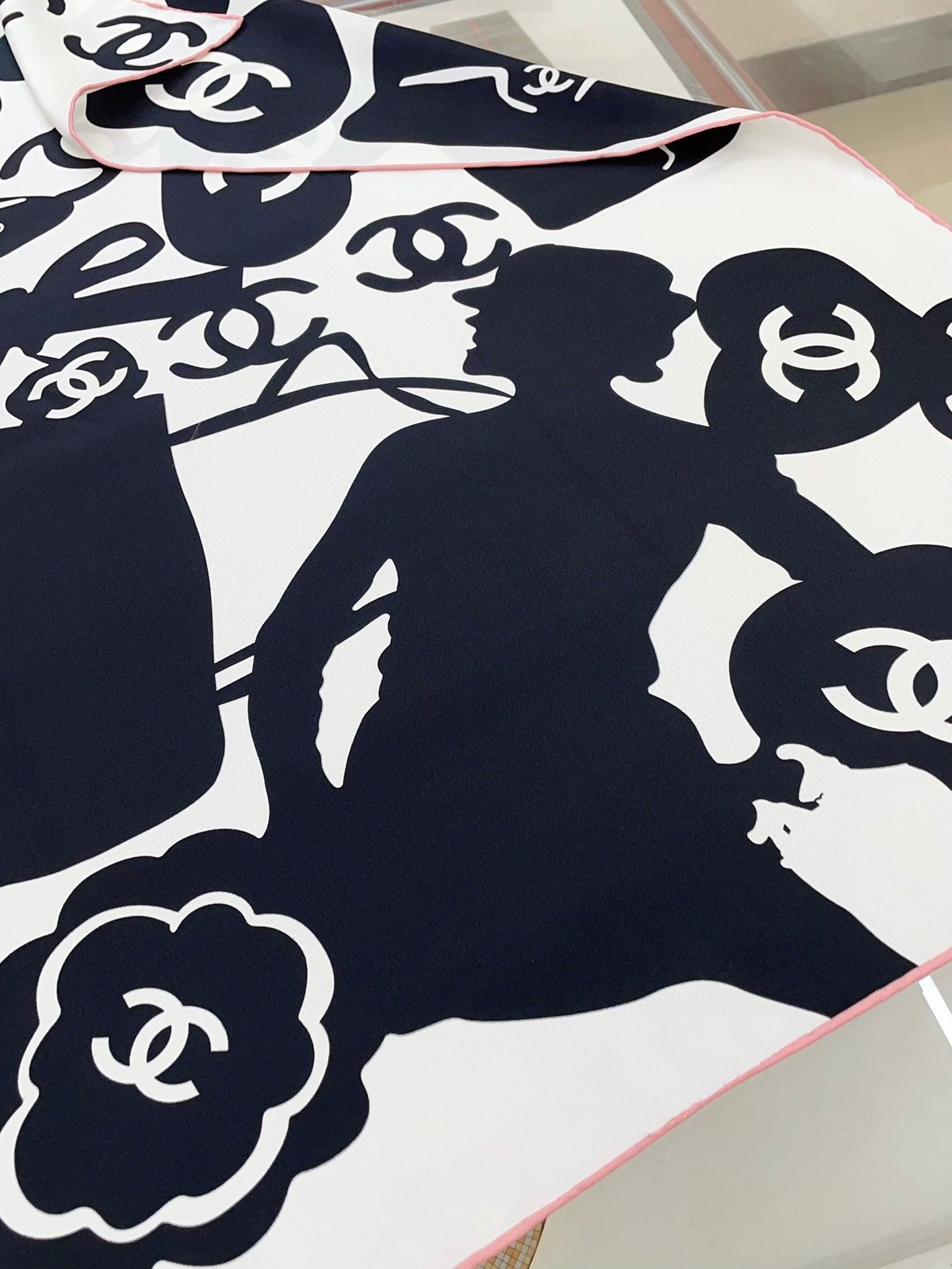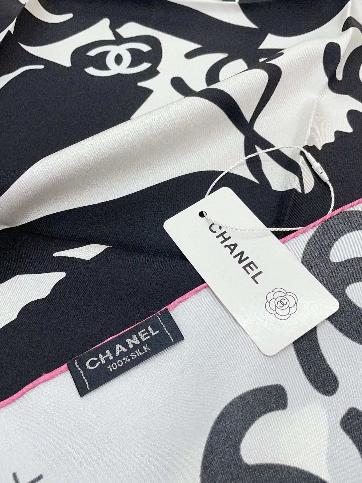 CC Square Scarf 90 CM In White Mix Black Silk 305180