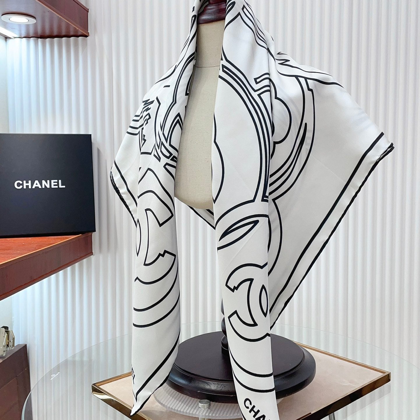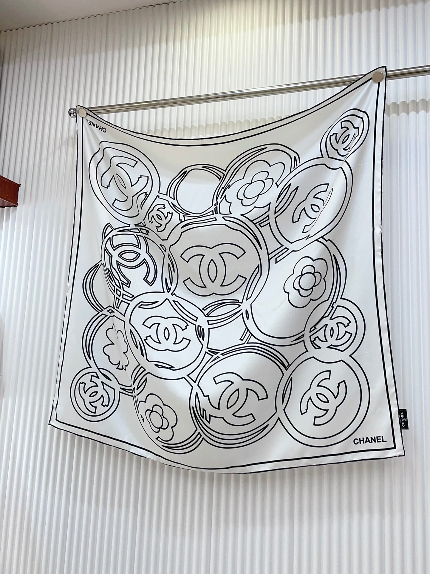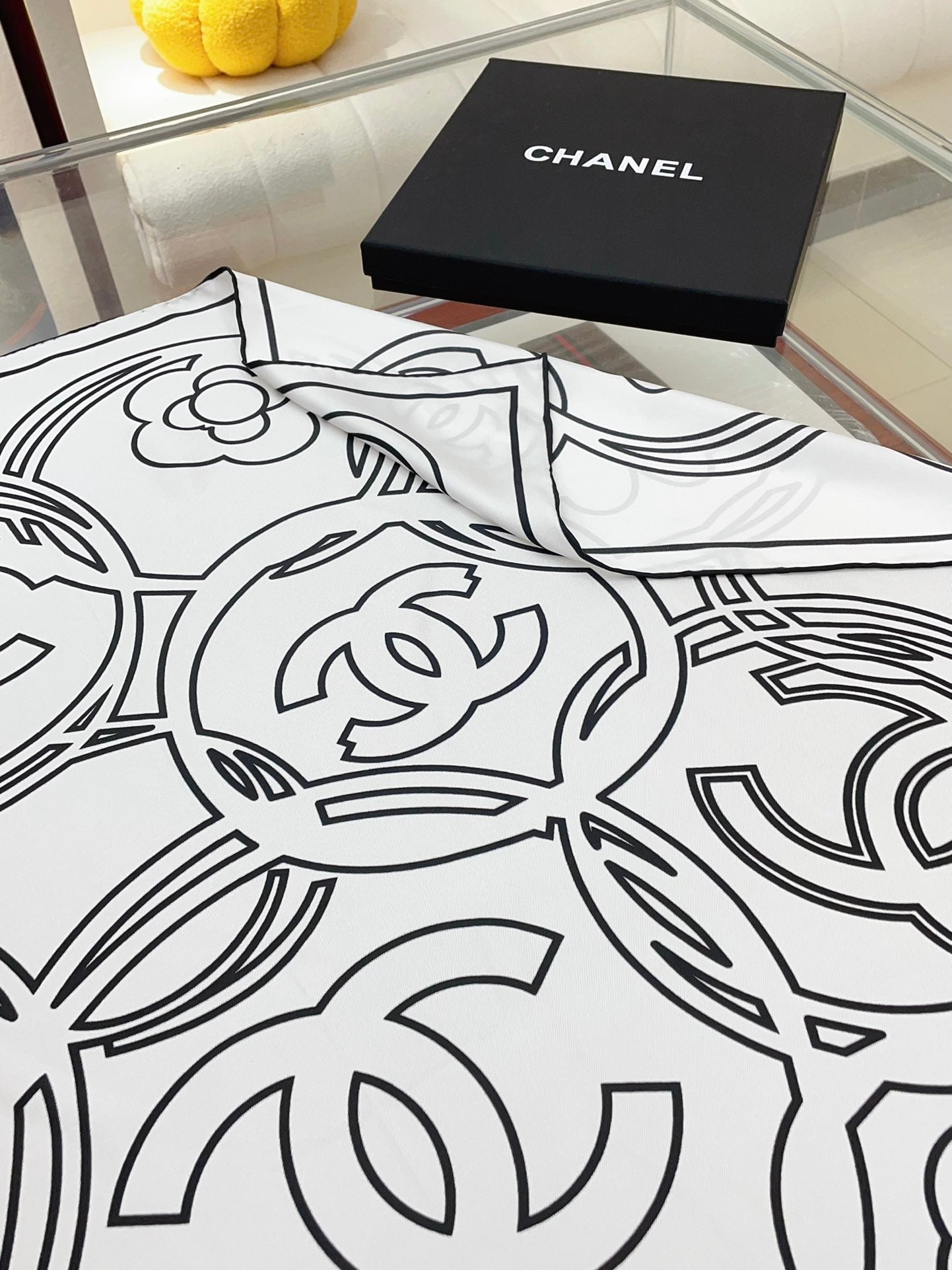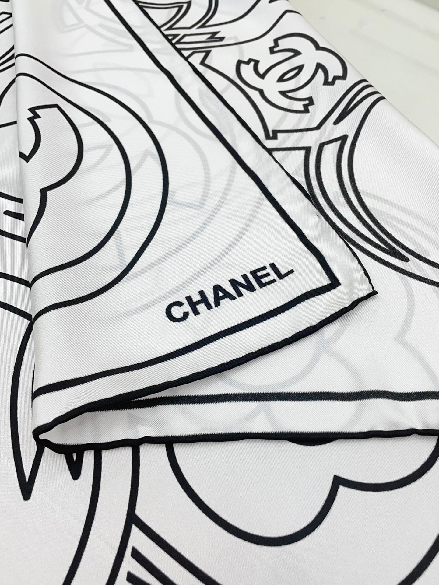 CC Square Scarf 90 CM In White Mix Black Silk Twill 187437