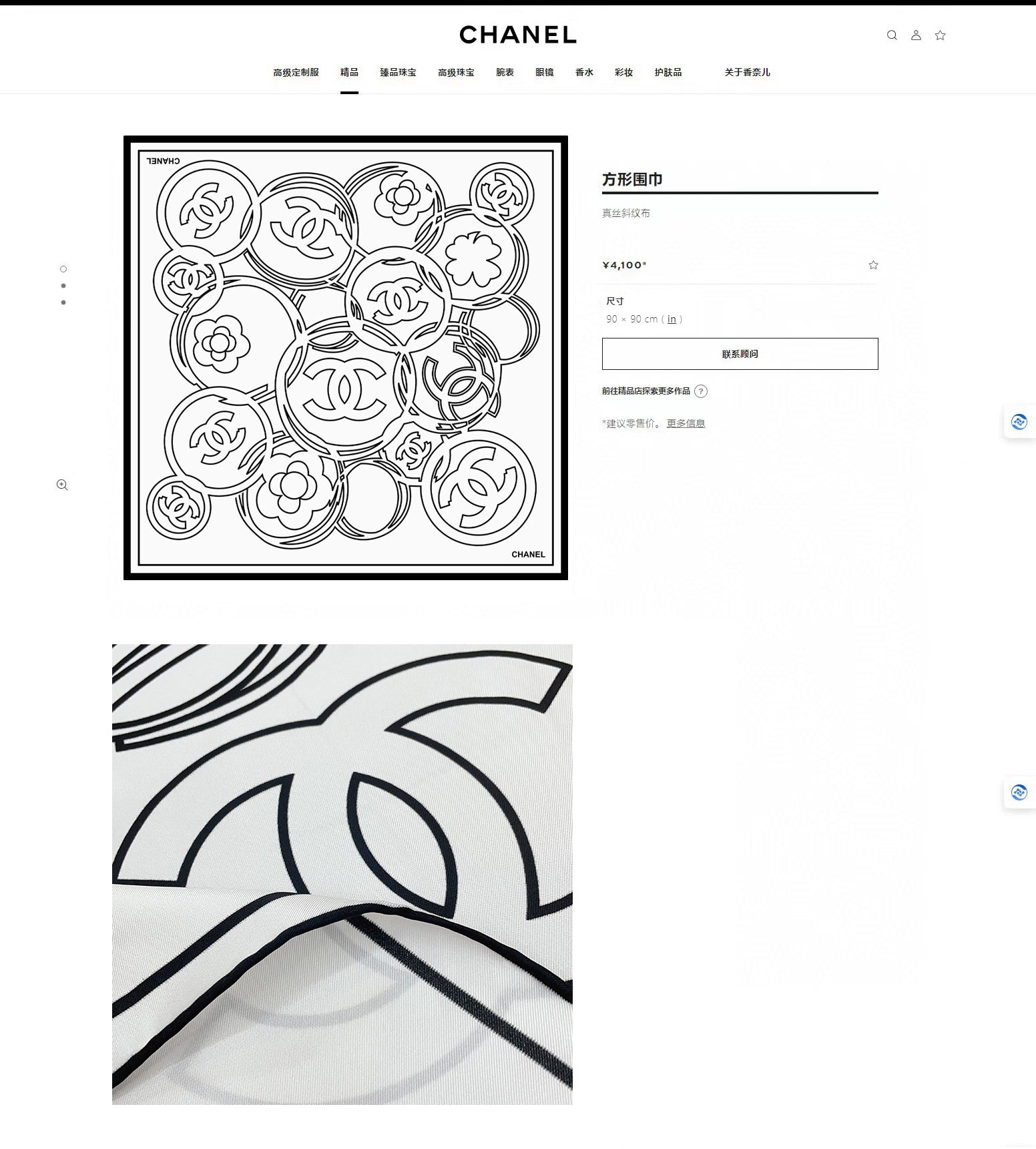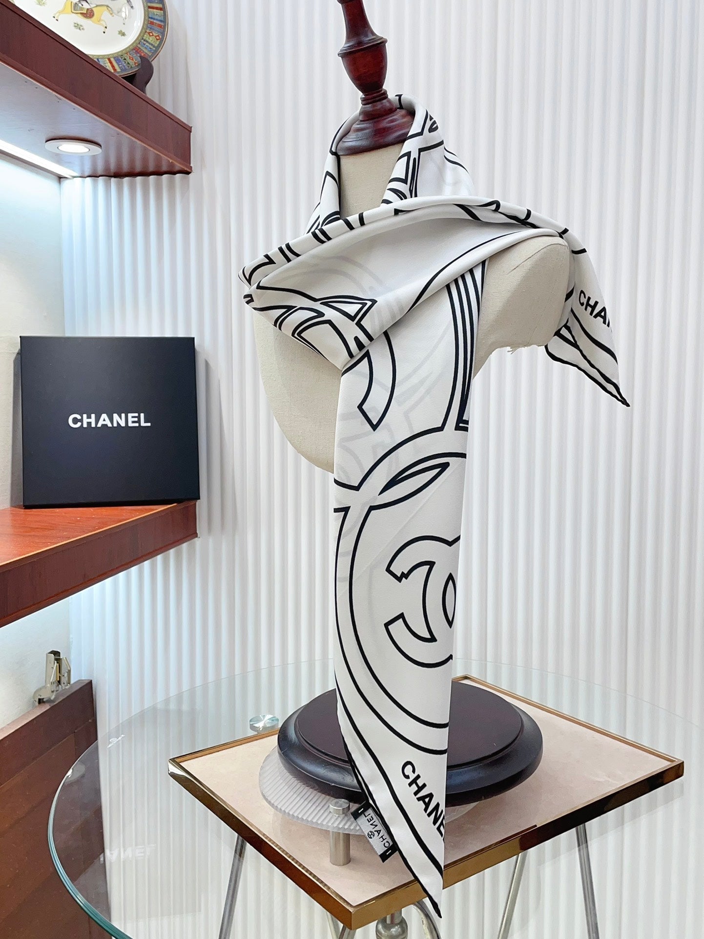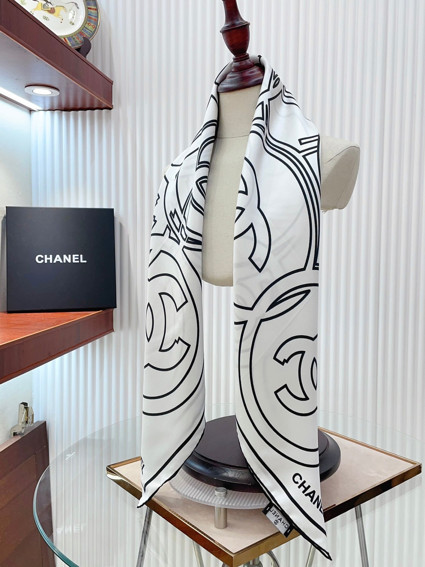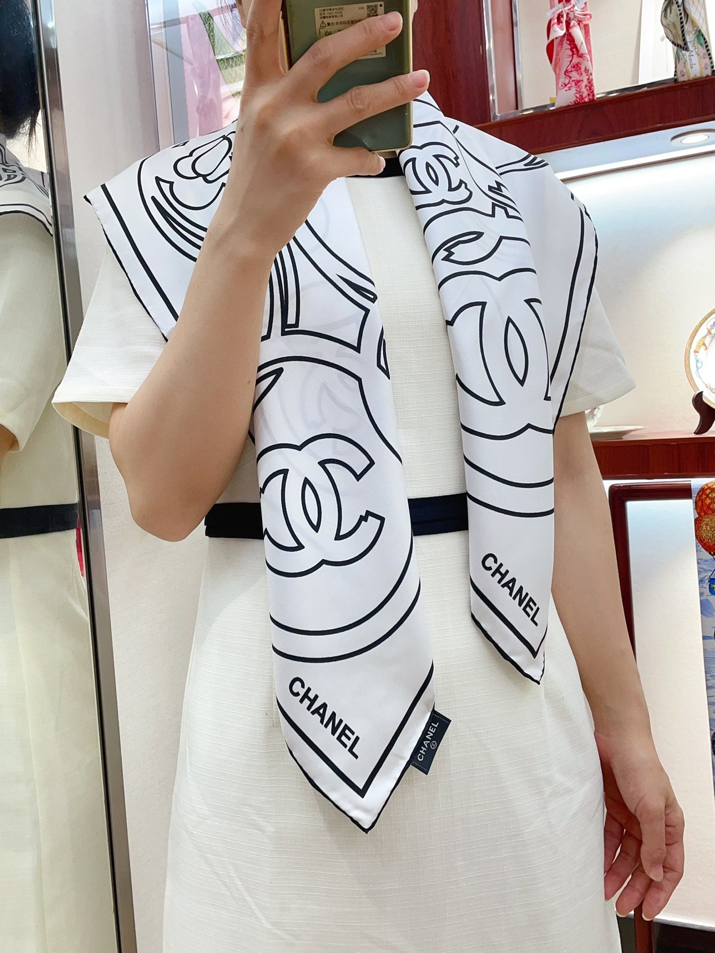 CC Square Scarf 90 CM In White Mix Black Silk Twill 187437