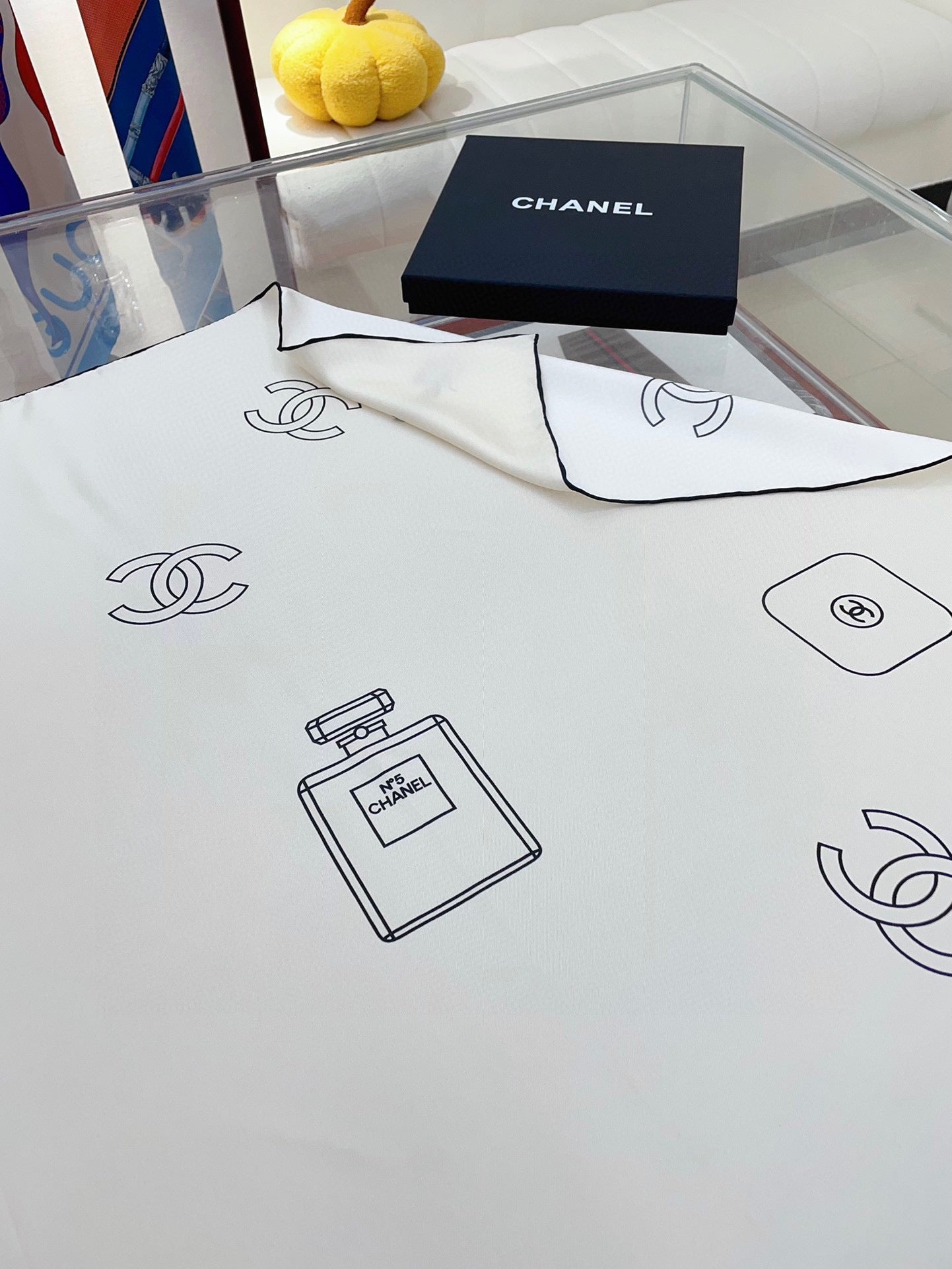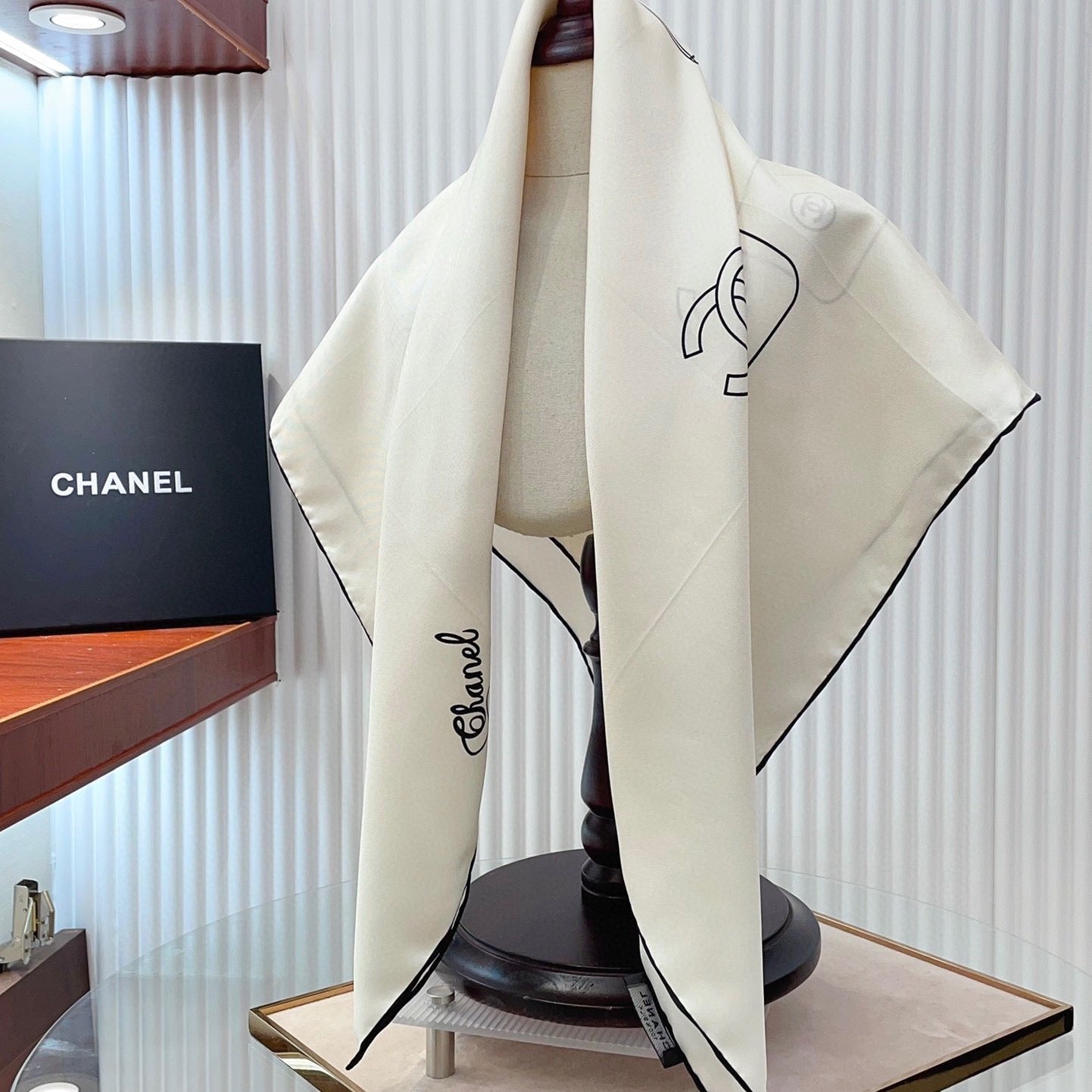 CC Square Scarf 90 CM In White Silk Twill 335845