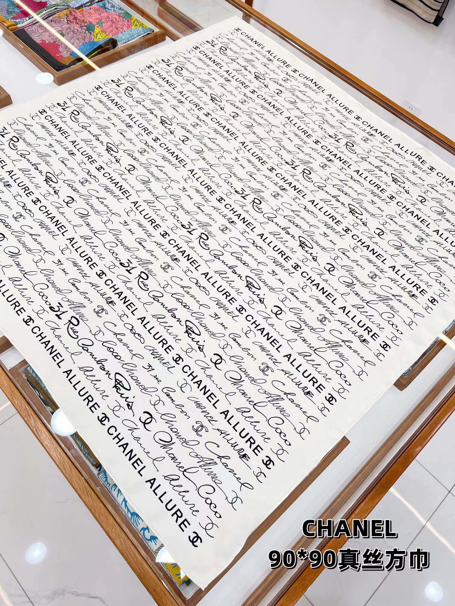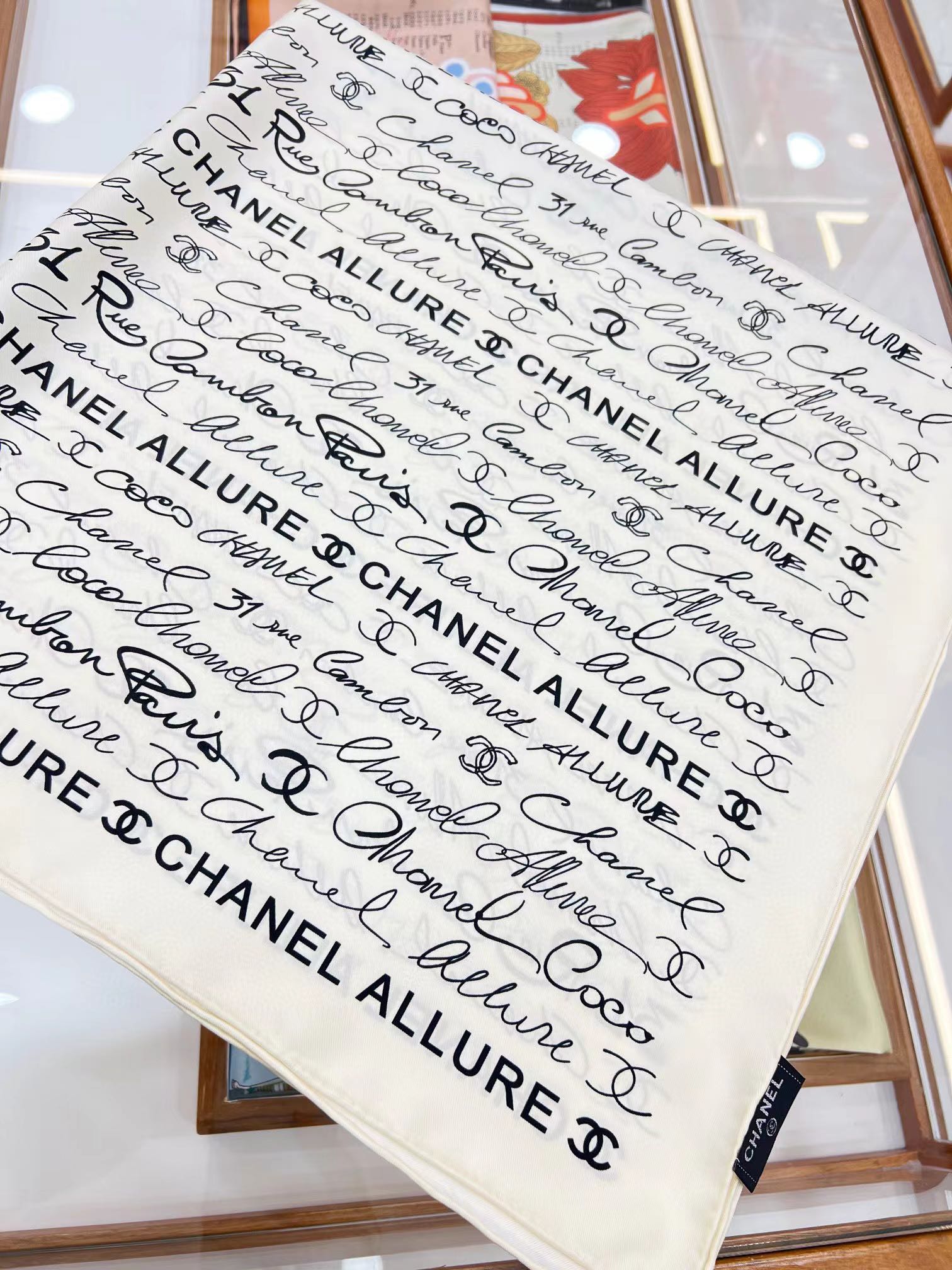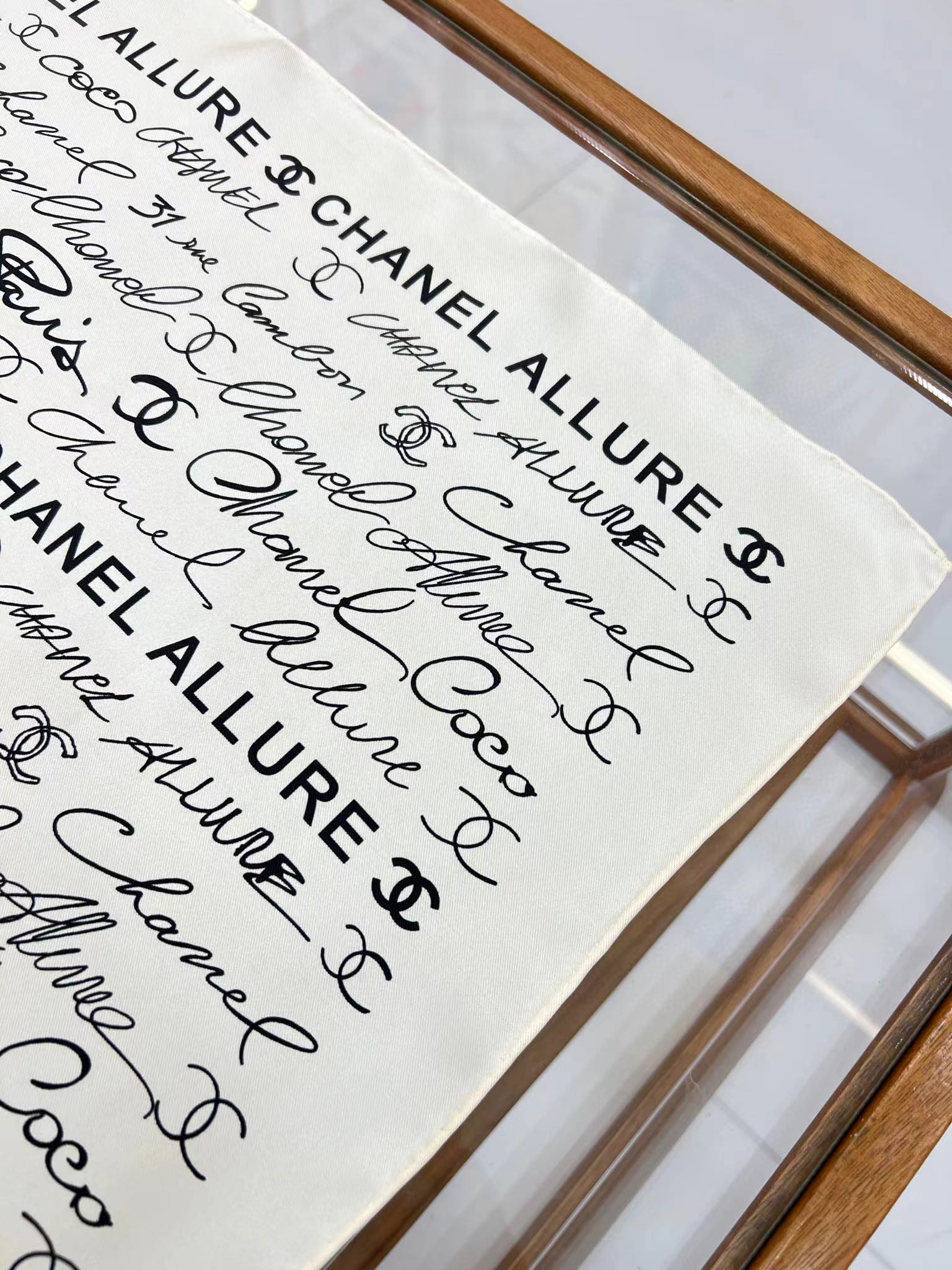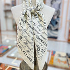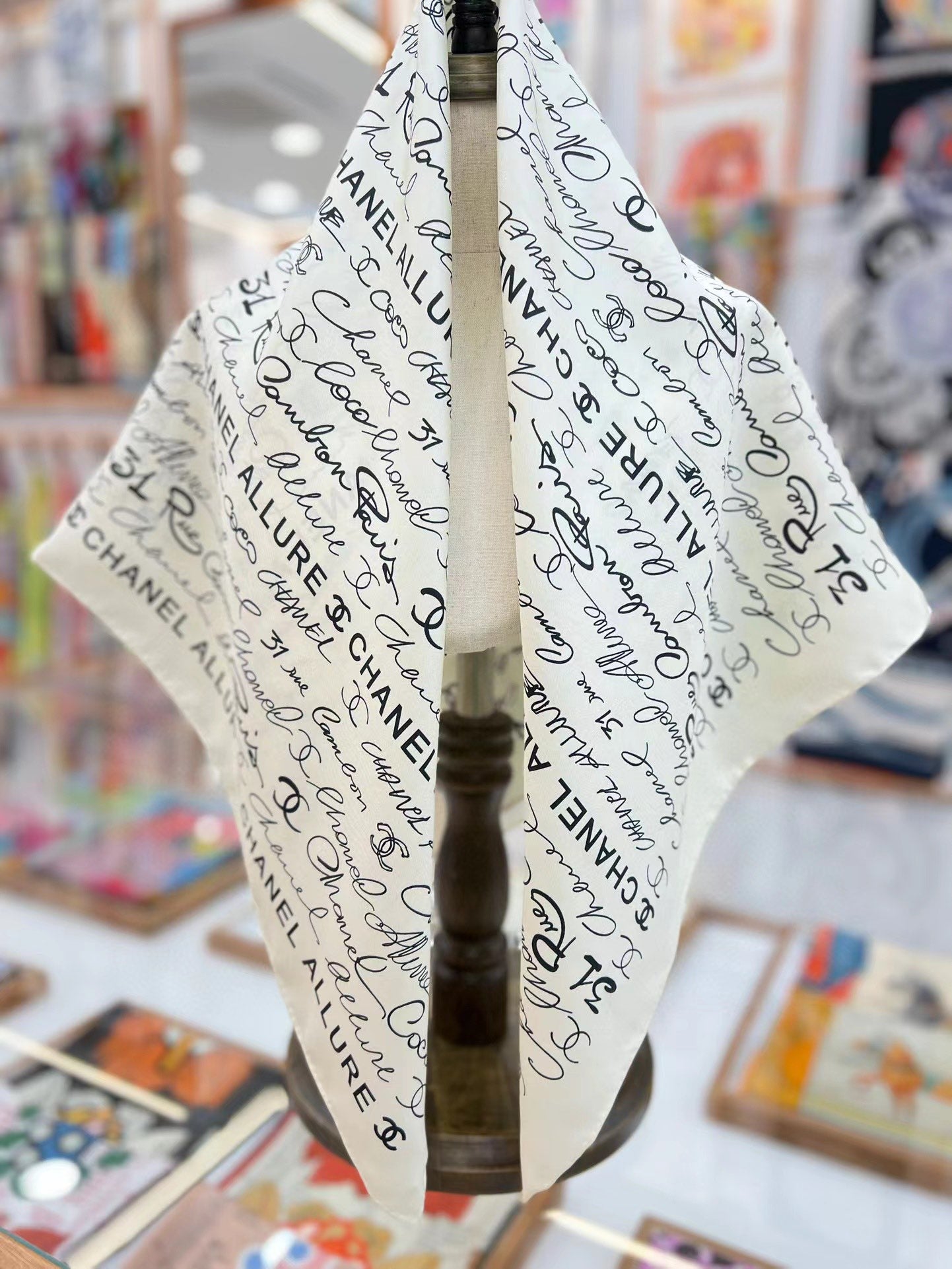 CC Square Scarf 90 CM In White With Black Text Silk 288694