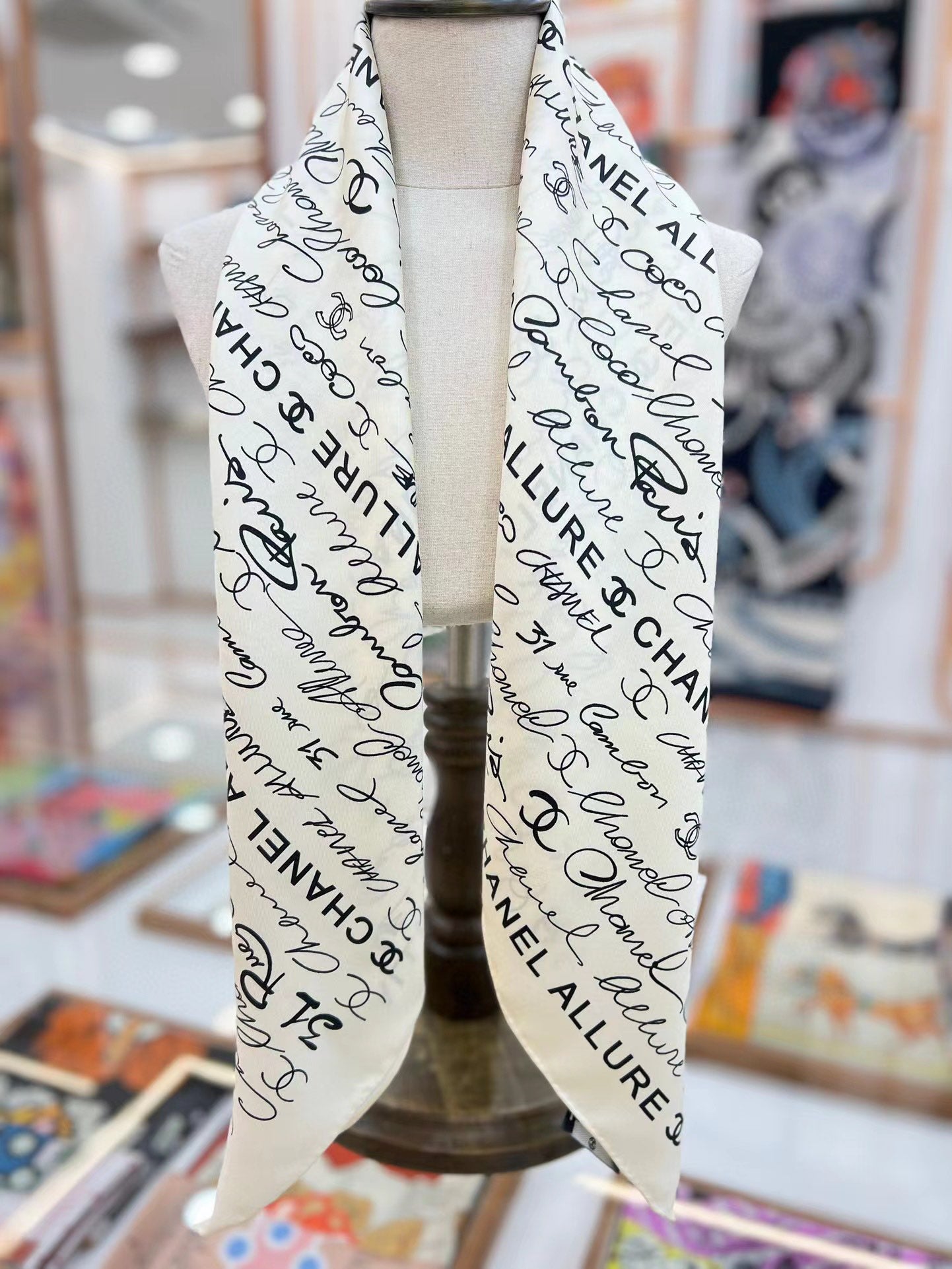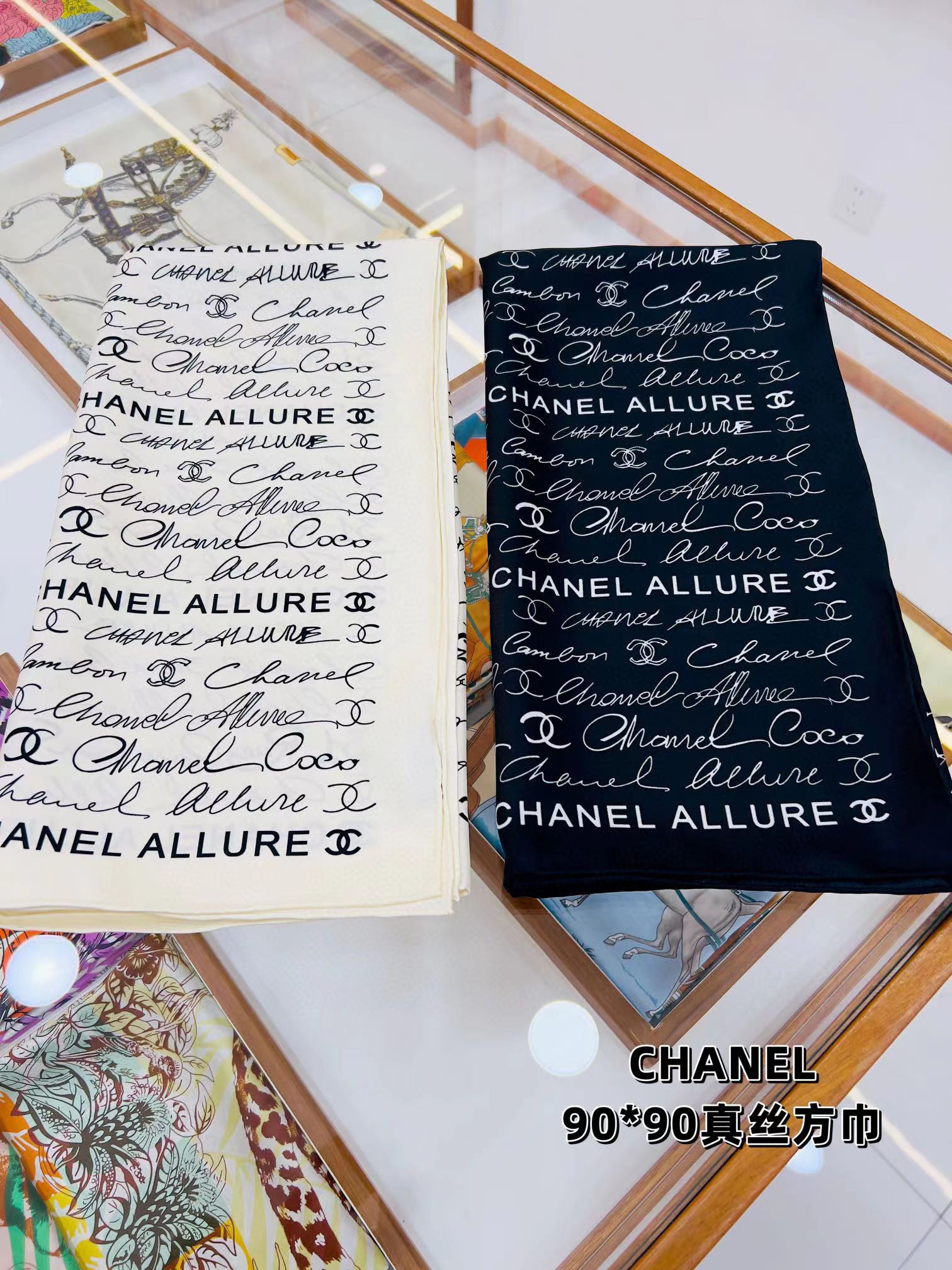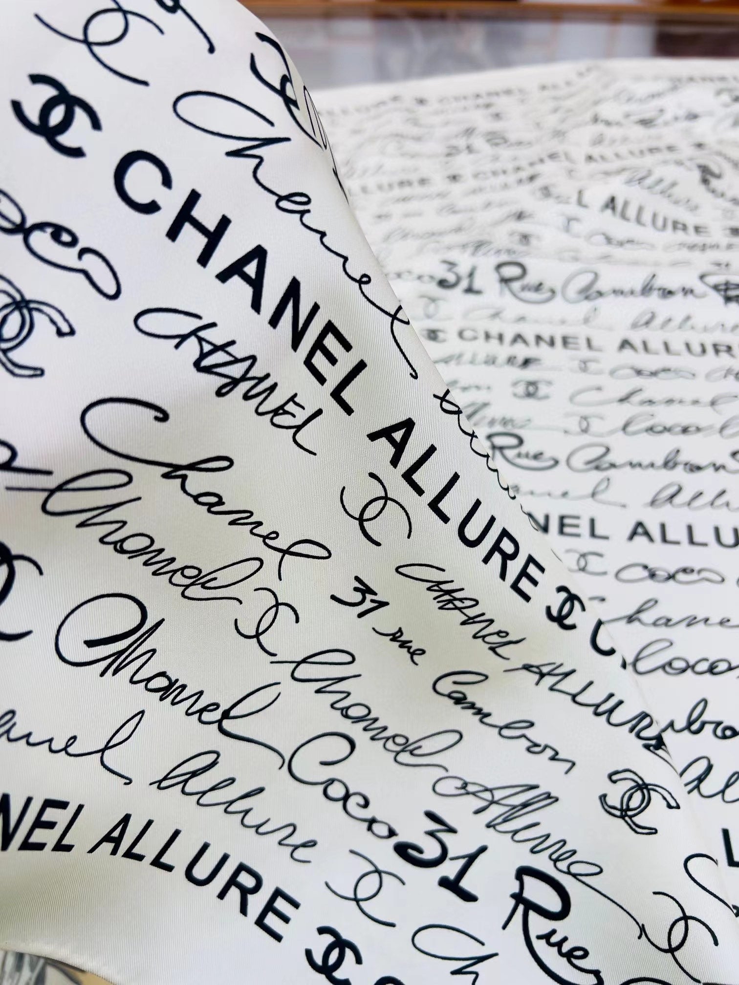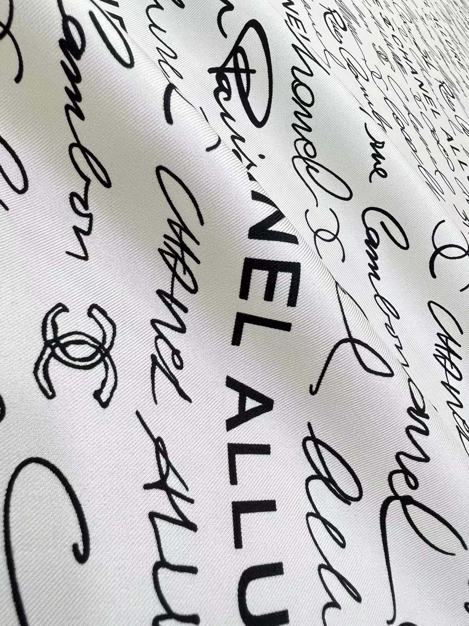 CC Square Scarf 90 CM In White With Black Text Silk 288694
